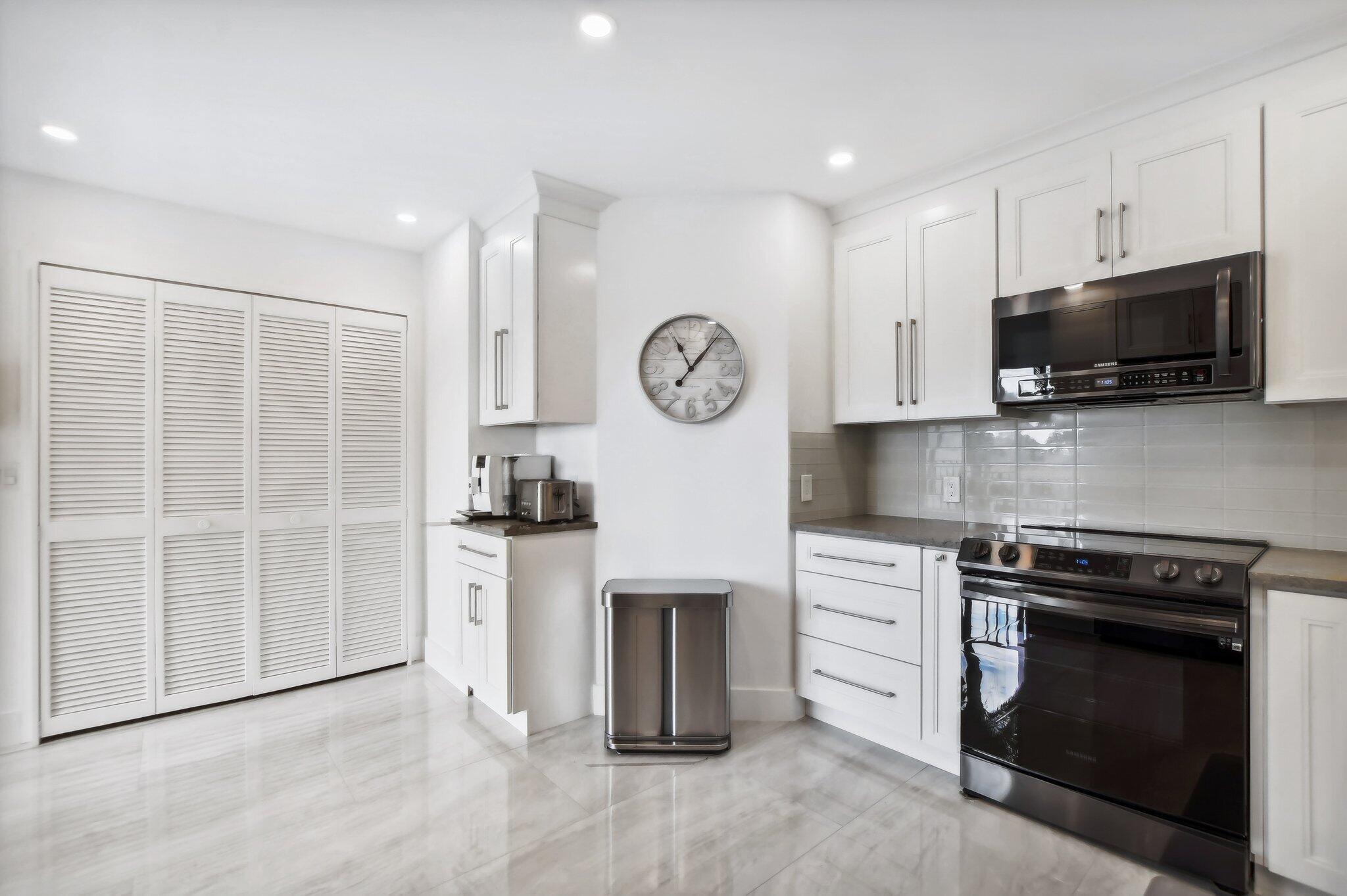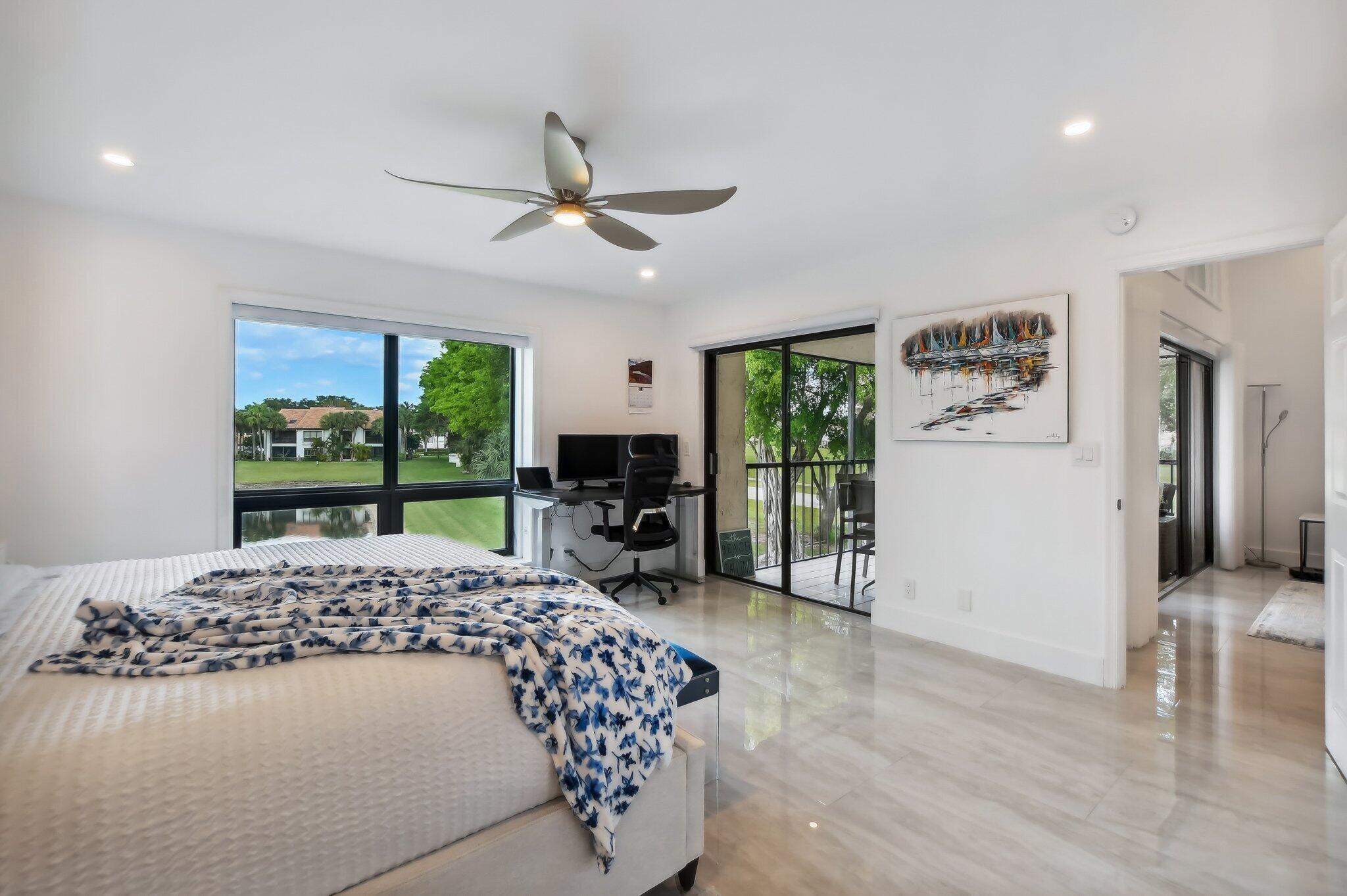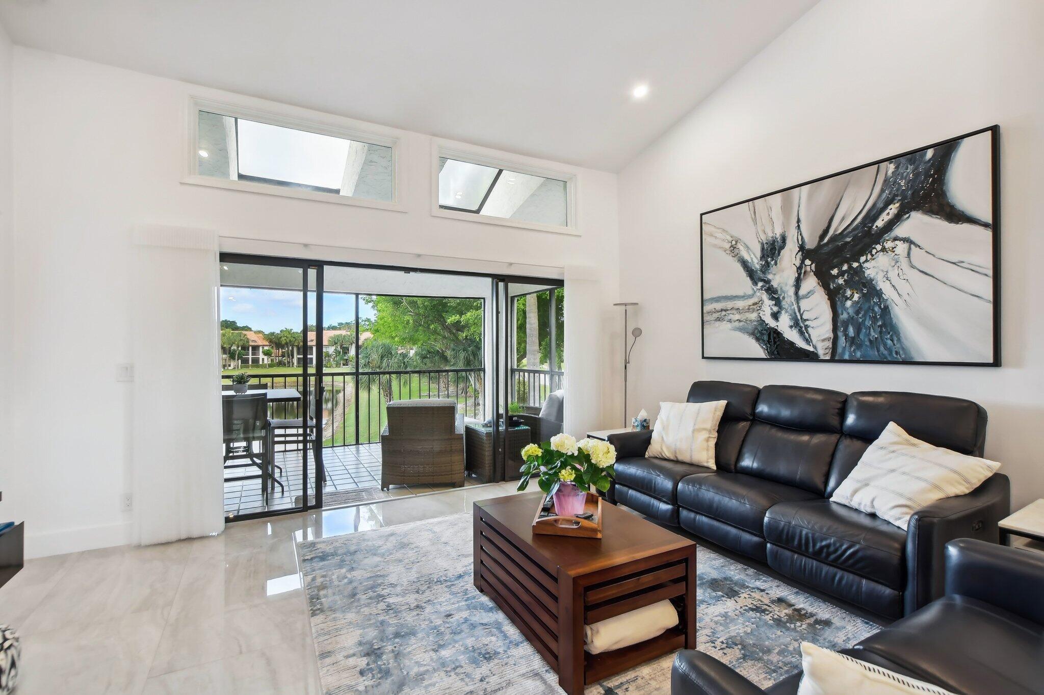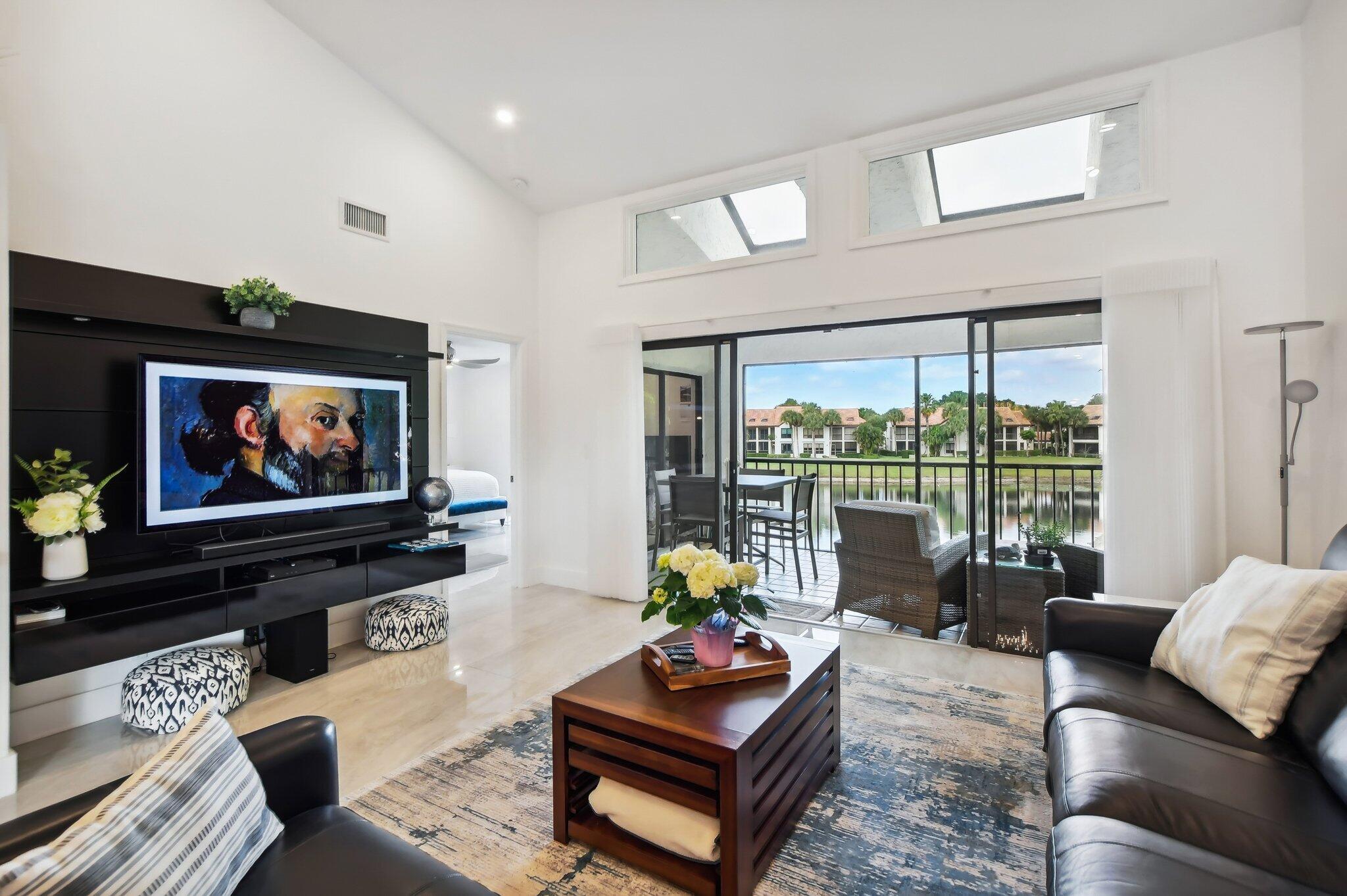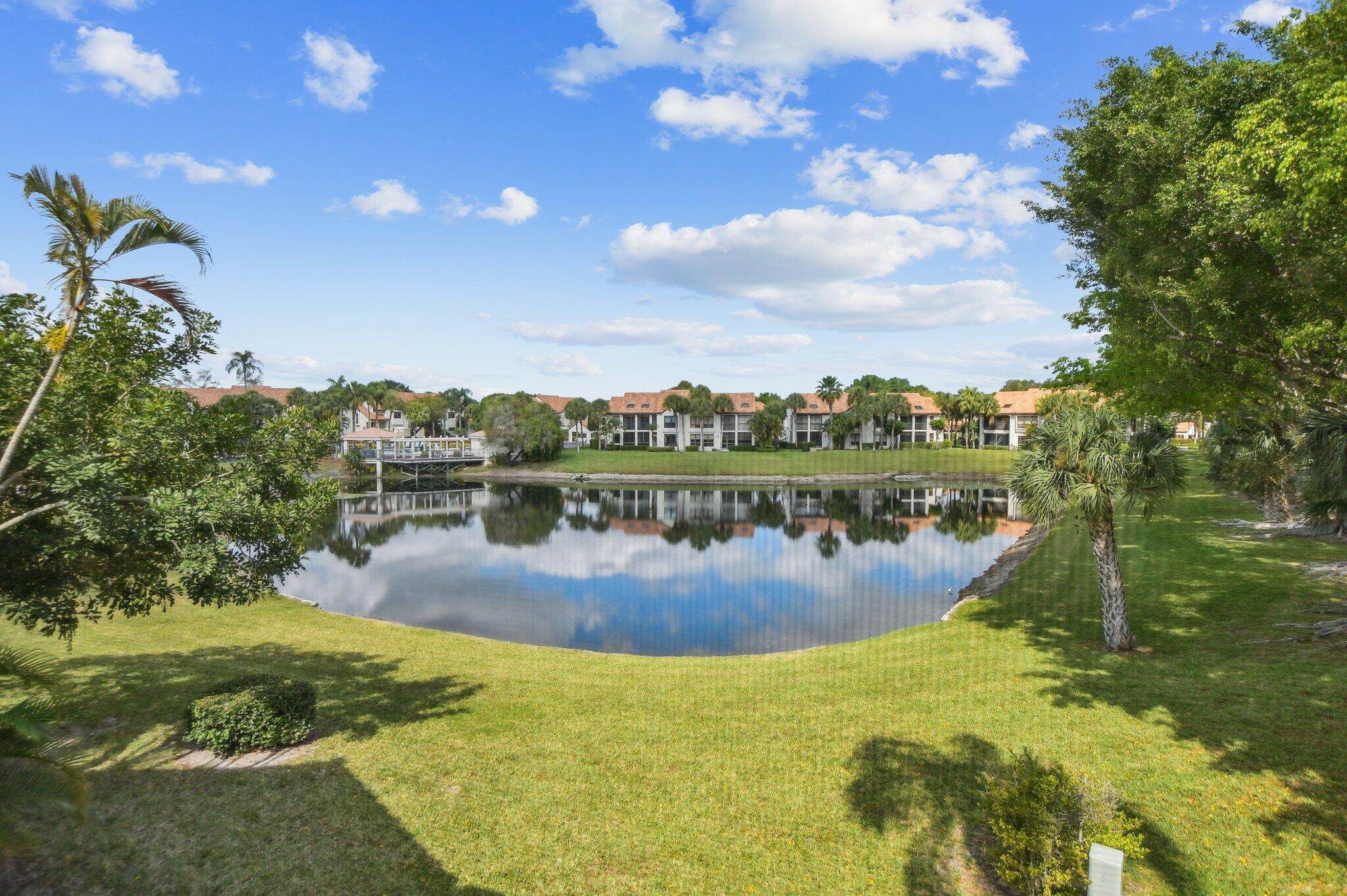 Stunning CORNER UNIT Condo located on 2nd level boasts gorgeous views of lake, golf course and community pool! This 2 Br 2Ba home features almost $200K in upgrades, some of which are: 'Praia' Porcelain gray marbling tile flooring and recessed lighting throughout, an OPEN Kitchen with 2021 Samsung appliances, custom gray granite countertops w/cascading breakfast bar & glass tile backsplash, pull out pantry drawers, white Jarlin cabinets w/soft close drawers plus a Lazy Susan corner cabinet. The Master bedroom w/Walk-in Closet, Master bathroom w/ 'UPC' primary soaking tub & dual vanities. Both bathrooms renovated w/quartz countertops, 'Ruby' Hardware, glass shower doors, Electrical panel was replaced in 2020. All renovations done in 20/21 by a general contractor with Palm Beach permits