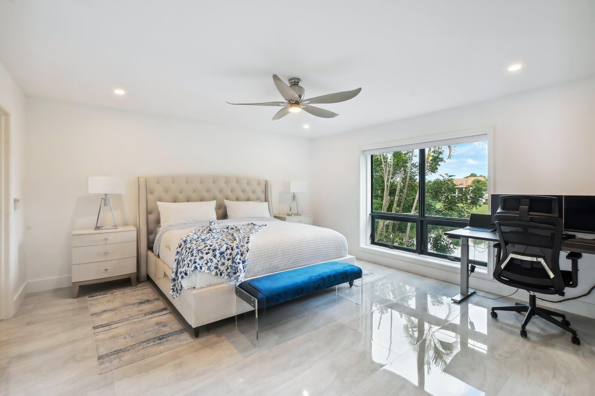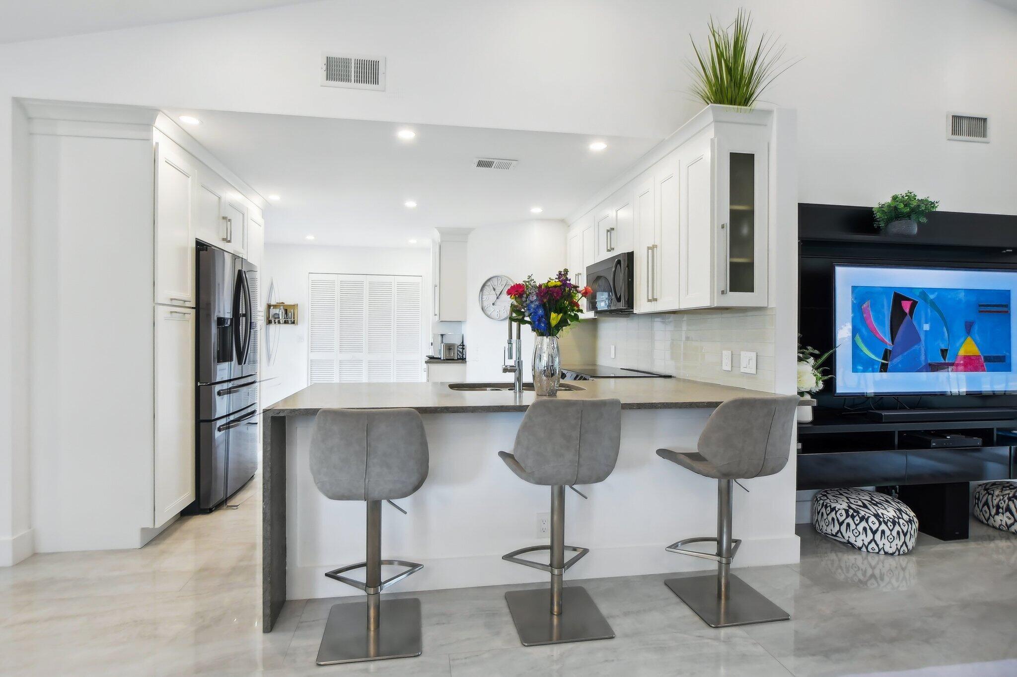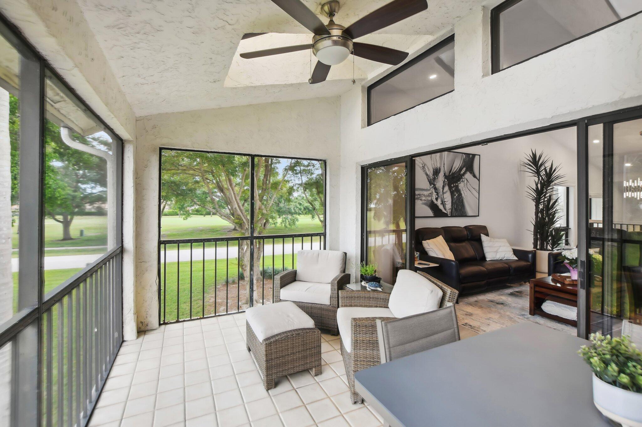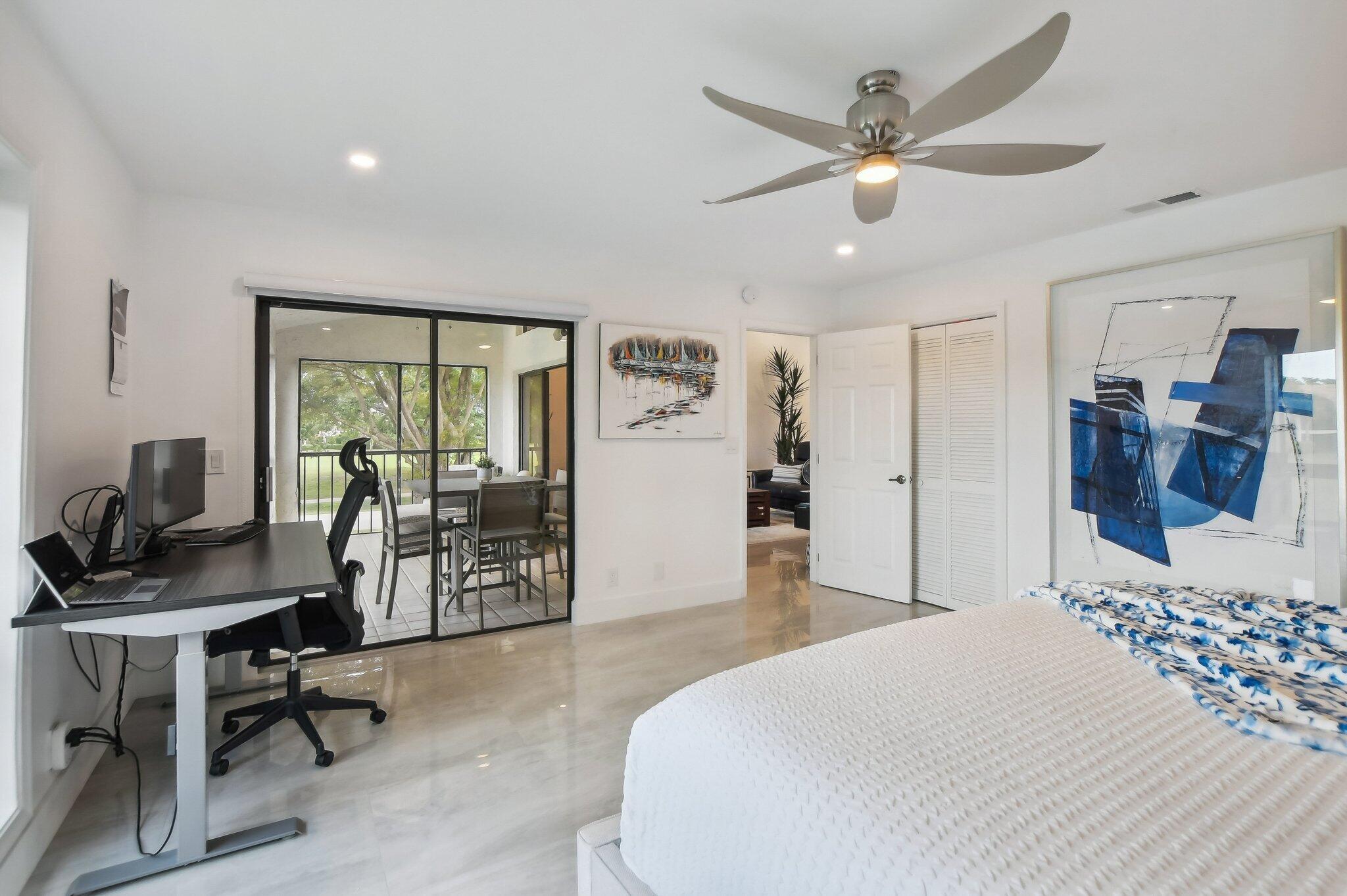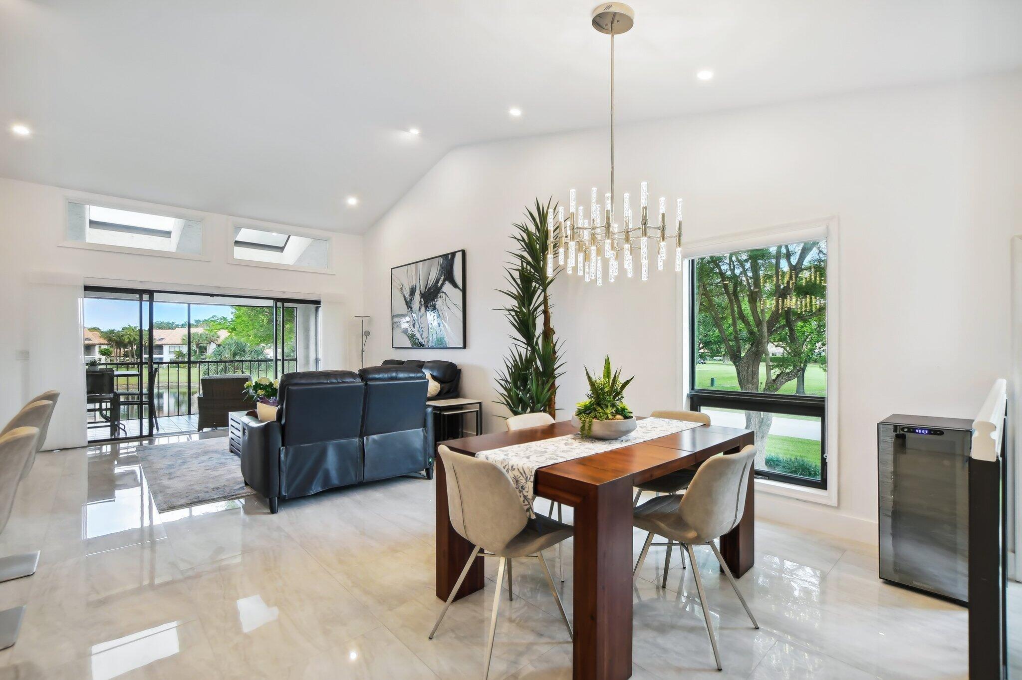 Stunning CORNER UNIT Condo located on 2nd level boasts gorgeous views of lake, golf course and community pool! This 2 Br 2Ba home features almost $200K in upgrades, some of which are: 'Praia' Porcelain gray marbling tile flooring and recessed lighting throughout, an OPEN Kitchen with 2021 Samsung appliances, custom gray granite countertops w/cascading breakfast bar & glass tile backsplash, pull out pantry drawers, white Jarlin cabinets w/soft close drawers plus a Lazy Susan corner cabinet. The Master bedroom w/Walk-in Closet, Master bathroom w/ 'UPC' primary soaking tub & dual vanities. Both bathrooms renovated w/quartz countertops, 'Ruby' Hardware, glass shower doors, Electrical panel was replaced in 2020. All renovations done in 20/21 by a general contractor with Palm Beach permits