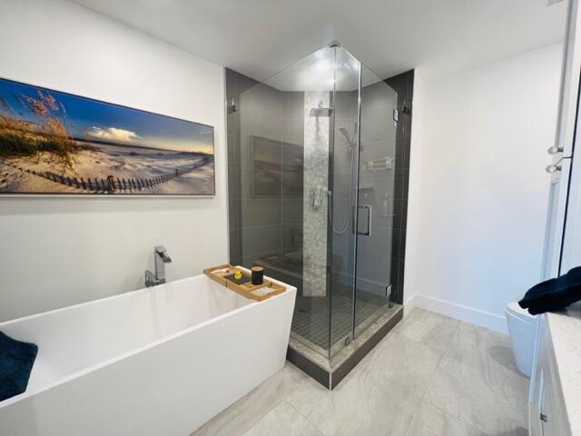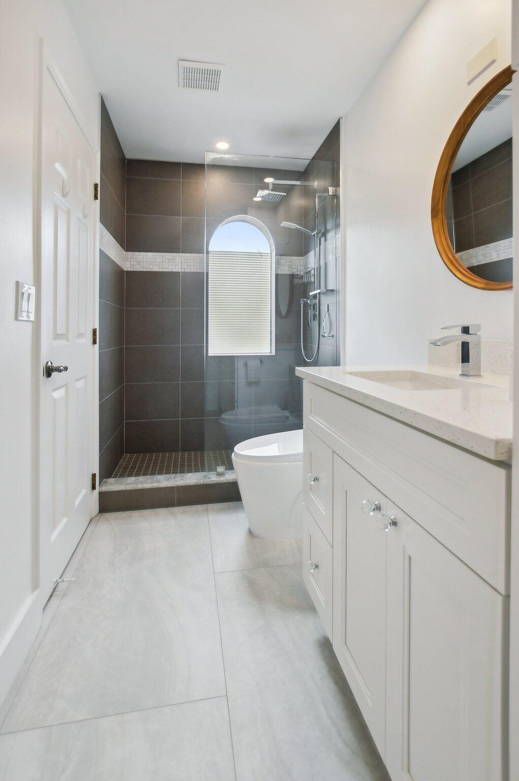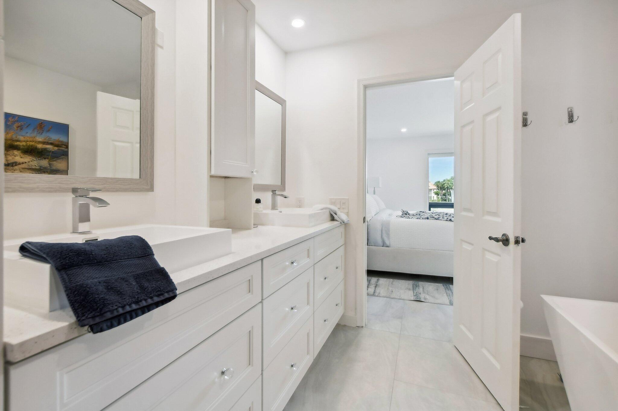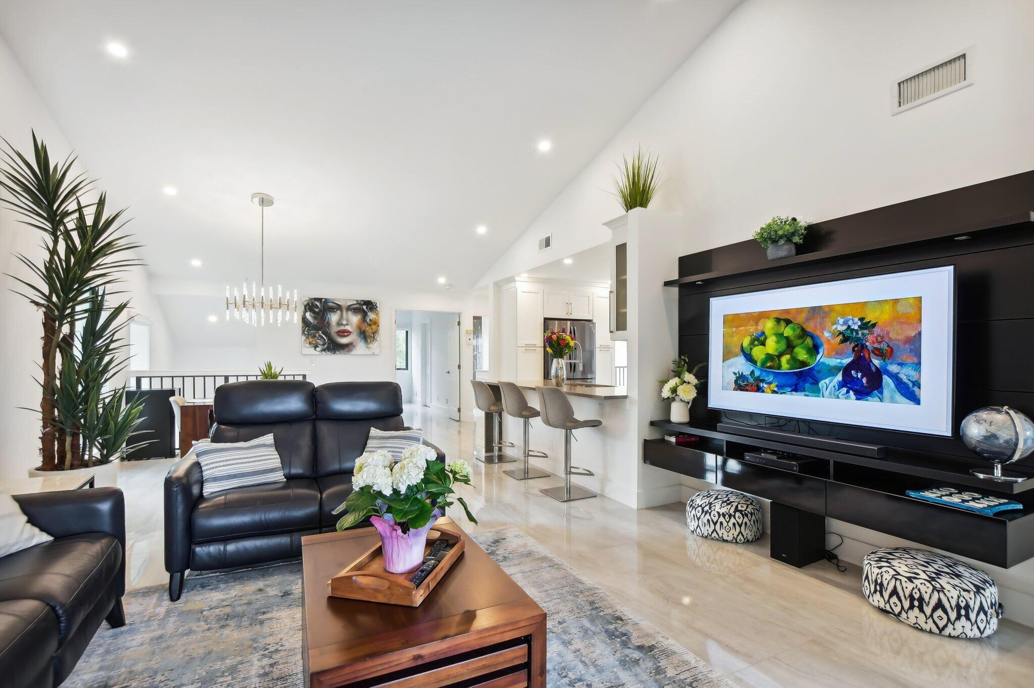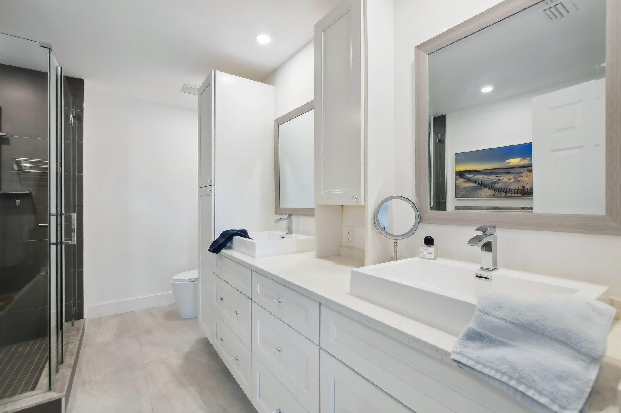 Stunning CORNER UNIT Condo located on 2nd level boasts gorgeous views of lake, golf course and community pool! This 2 Br 2Ba home features almost $200K in upgrades, some of which are: 'Praia' Porcelain gray marbling tile flooring and recessed lighting throughout, an OPEN Kitchen with 2021 Samsung appliances, custom gray granite countertops w/cascading breakfast bar & glass tile backsplash, pull out pantry drawers, white Jarlin cabinets w/soft close drawers plus a Lazy Susan corner cabinet. The Master bedroom w/Walk-in Closet, Master bathroom w/ 'UPC' primary soaking tub & dual vanities. Both bathrooms renovated w/quartz countertops, 'Ruby' Hardware, glass shower doors, Electrical panel was replaced in 2020. All renovations done in 20/21 by a general contractor with Palm Beach permits