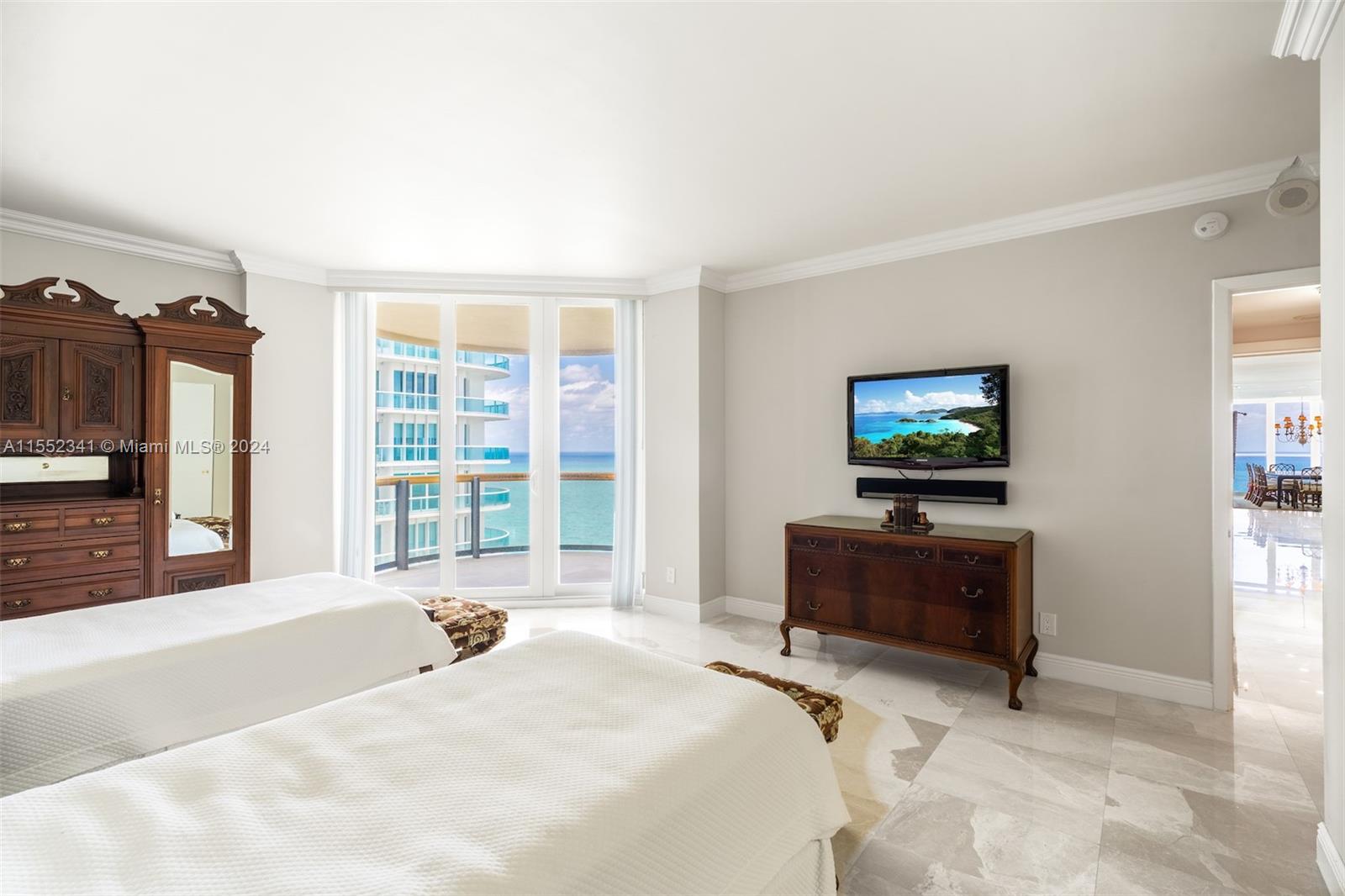 Indulge in the breathtaking beauty of luxurious living at this stunning 3 beds, 4.5-baths prestigious high-rise. W. direct access to the ocean, you can enjoy the serenity of the ocean views from the comfort of your own home. The open layout seamlessly connects the living area, kitchen, & dining space, creating a harmonious atmosphere of relaxation. The well-equipped kitchen, has top-of-the-line appliances, spacious counter space, & ample storage. The private wrap-around terrace is perfect for entertaining, while a range of amenities including tennis, a private restaurant & bar, an Olympic-sized pool, a staffed gym, spa, & Pilates room, ensure that you have the highest level of service. This waterfront oasis in Bal Harbour is the pinnacle of luxury living in a highly sought after building.