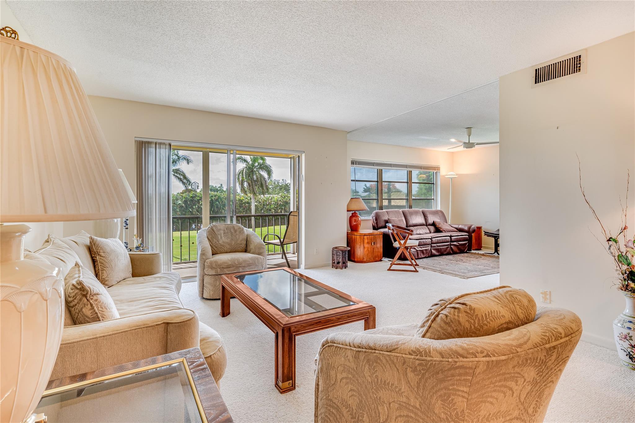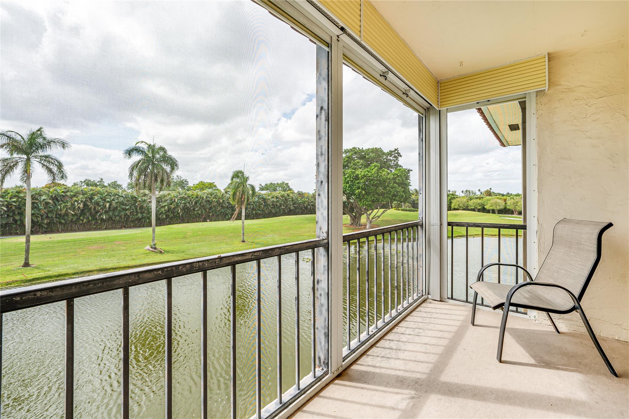 ENJOY BEAUTIFUL SUNSETS on your new balcony with expansive water and PGA 10th green and 11th fairway. BRIGHT CORNER,2BR/2BA, 1,170 SF. Washer & Dryer inside. Front door screen allows great air flow and savings on electric bills. Newer AC. Dining room features lots of extra storage. Recreation Lease PAID IN FULL! FREE golf (except cart fees) on two 18 hole courses (PGA & Par3); Amenities include Restaurant, Billiard Room, Bbq/Picnic Area, Clubhouse, Courtesy Bus, Exercise Room, Heated Pool, Library, Putting Green, Sauna, Shuffleboard, Tennis, Pickle Ball, Vehicle Wash Area, Electric Car Charging Station. Close to shopping, dining & highways. 15 min. to beach. Association says 55+ age required; EXCELLENT OPPORTUNITY! PERFECTLY PRICED!