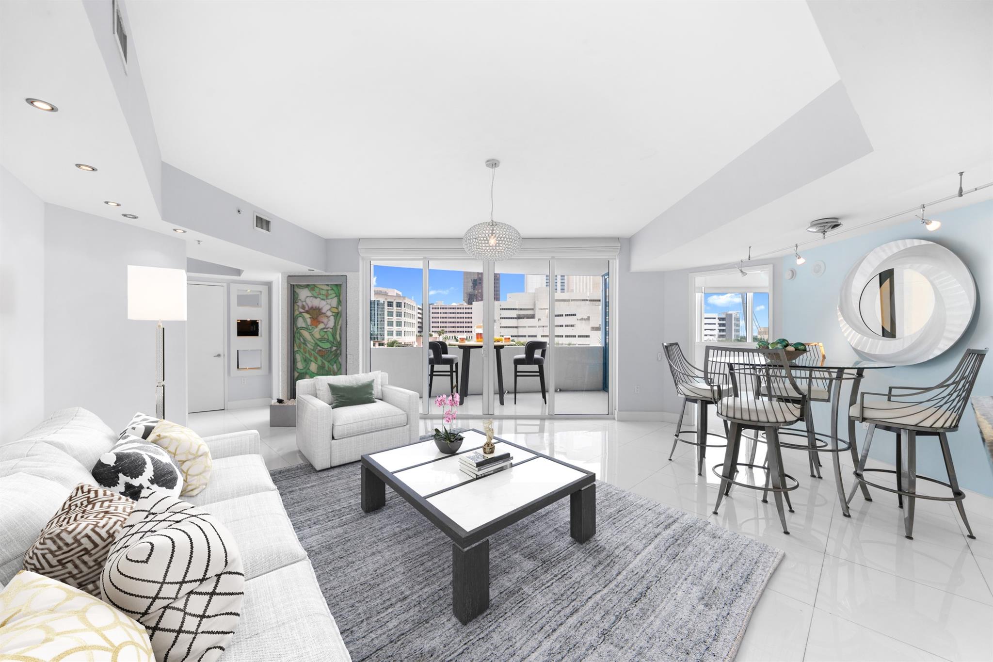 Priced to Sell! Directly on the River with an oversized waterfront terrace! 1 Bed/1.5 Bath Upgraded & in mint condition, key features include white high gloss floors throughout, motorized window treatments, floor to ceiling glass & custom closets. The spacious primary suite features a wall of windows overlooking the river, two built out closets, access to the terrace, an ensuite spa like bath with marble dual vanities, custom mirrors, deep soaking jacuzzi tub with custom stone pedestal, expanded rainfall shower & private water closet. Full size washer/dryer in the unit. The River House is a premier full service condo building in the heart of Las Olas w/ a show stopping lobby, 5 Star amenities, gourmet dining & elegant shopping right outside your front door!