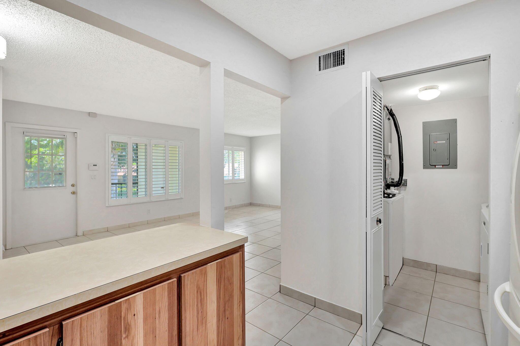 Located in the ALL AGES, gated community of Pine Ridge at Haverhill, this condo offers 2 bedrooms, 2 bathrooms, washer and dryer INSIDE the unit, no shared laundry here. The plantation shutters adorn all windows. The air conditioner is about a year old, and the water heater about 6 months old. This condo is VA approved. Very affordable HOA fee. Pine Ridge at Haverhill features a large heated pool with lake views, a walking trail around the lake, and a fenced-in playground. Other amenities include: tennis courts, a Bocce ball court, handball courts, shuffleboard, picnic tables and grills.