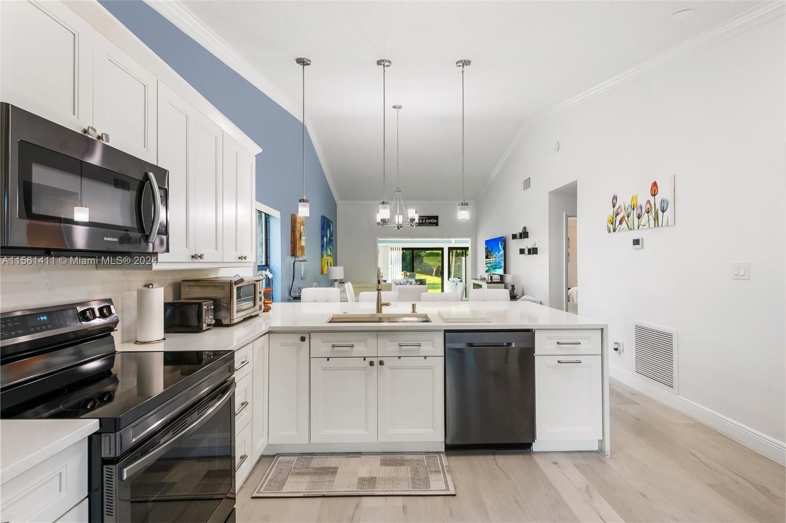 MUST SEE!!! Gorgeous Upgraded 2-Bed/2-Bath Corner Villa boasting an enclosed air-conditioned Florida room overlooking a serene lake & garden view. Enjoy a luminous renovated kitchen adorned with waterfall quartz countertops and new appliances. Brand new vinyl flooring throughout the entire space with vaulted ceilings in the living area enhancing its spacious feel. It has a nice inviting patio, ideal for BBQ gatherings, accessible through the kitchen's sliding doors. The Master Suite offers a generously sized walk-in closet and a fully renovated bathroom. Additionally, a convenient laundry room is equipped with a full-size side-by-side washer and dryer. PRICED TO SELL! Brand new impact doors/windows. New Water Heater. Air Conditioning from 2018. Roof from 2019.