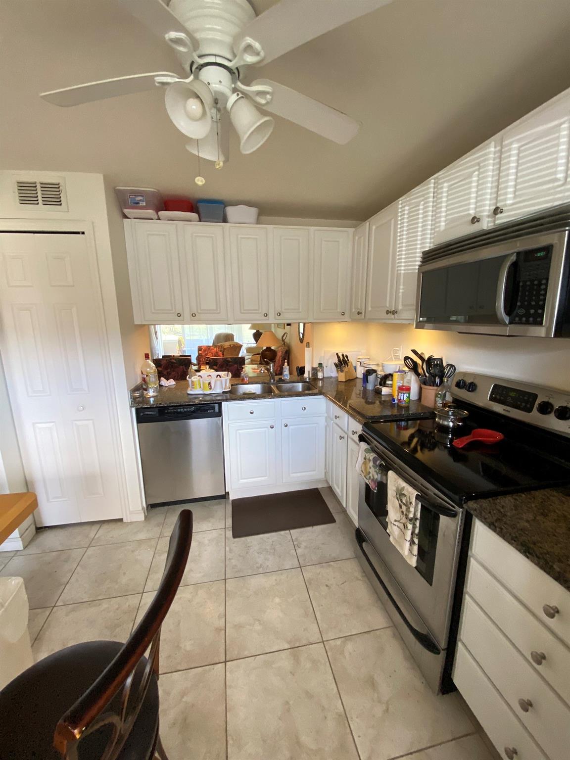 First floor condo in the Greens of Tamarac. Brand new air conditioning. Newer kitchen with granite tops. Large pantry. Both bedrooms have large walk in closets. This unit is being sold furnished with everything that is currently there. Great view of the lake from the patio. Tile/laminate flooring throughout. This is a 55+ community. There is a heated pool, shuffleboard, horseshoes, community room, and billiard room.