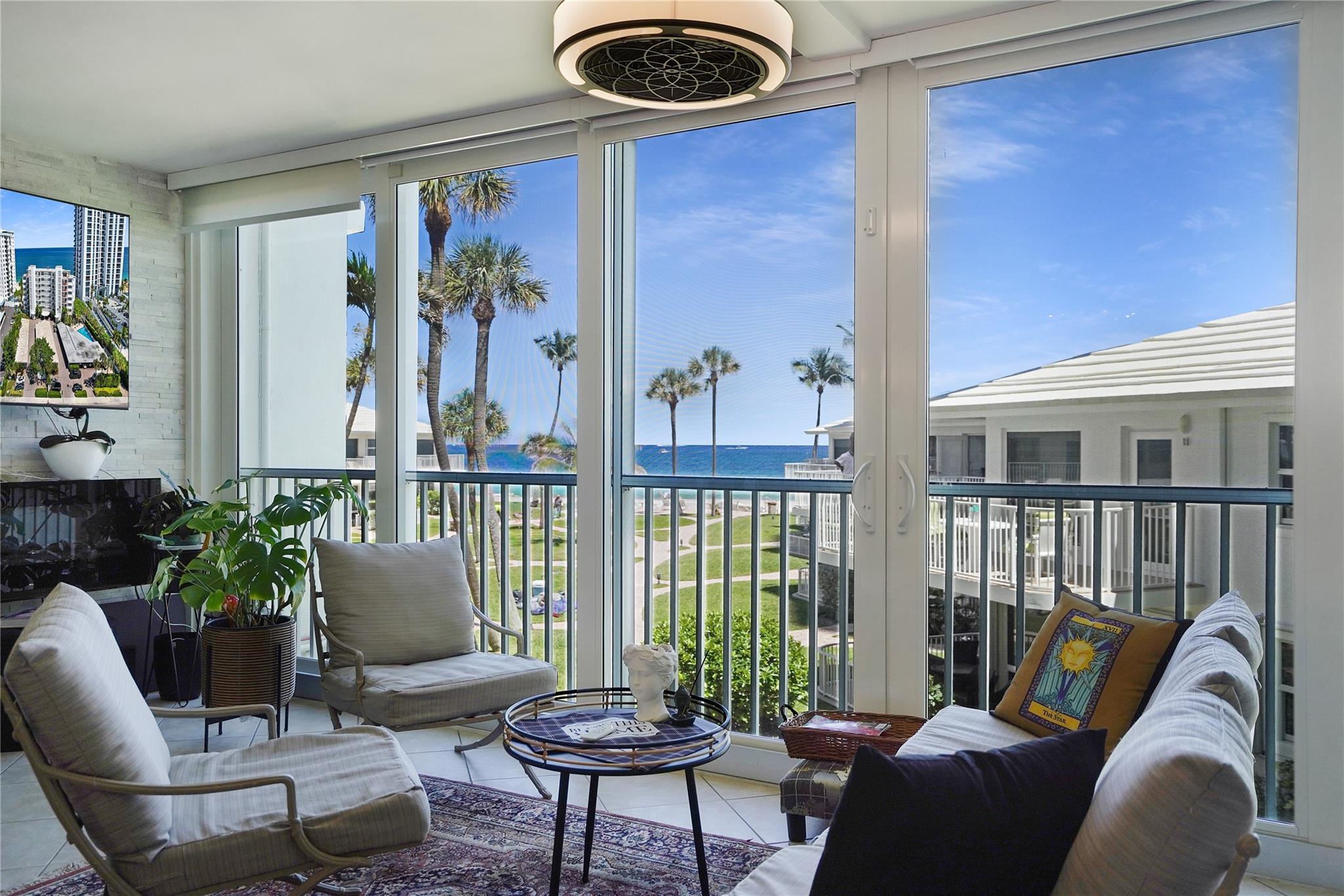 Are you tired of high rise living? Then this is the place for you. This two bed/two bath with beautiful east beach & ocean views is only steps from the sand & is situated between always lively Lauderdale By The Sea & the newly revitalized & popular Pompano beach area. This architecturally renovated apartment (done in 2021) was redesigned so that the entrance to the bath is accessible from both the hallway & the bedroom. This is the only apartment in the complex with a washer & dryer. (There is a community laundry room) Impact windows. The spacious enclosed patio can easily be used as a 3rd bedroom. Covered parking. Renting is allowed 2 times a year, minimum of 30 days; maximum of 6 months. No land lease; the Co-Op owns the land. No age restrictions. All assessments paid in full. Views!