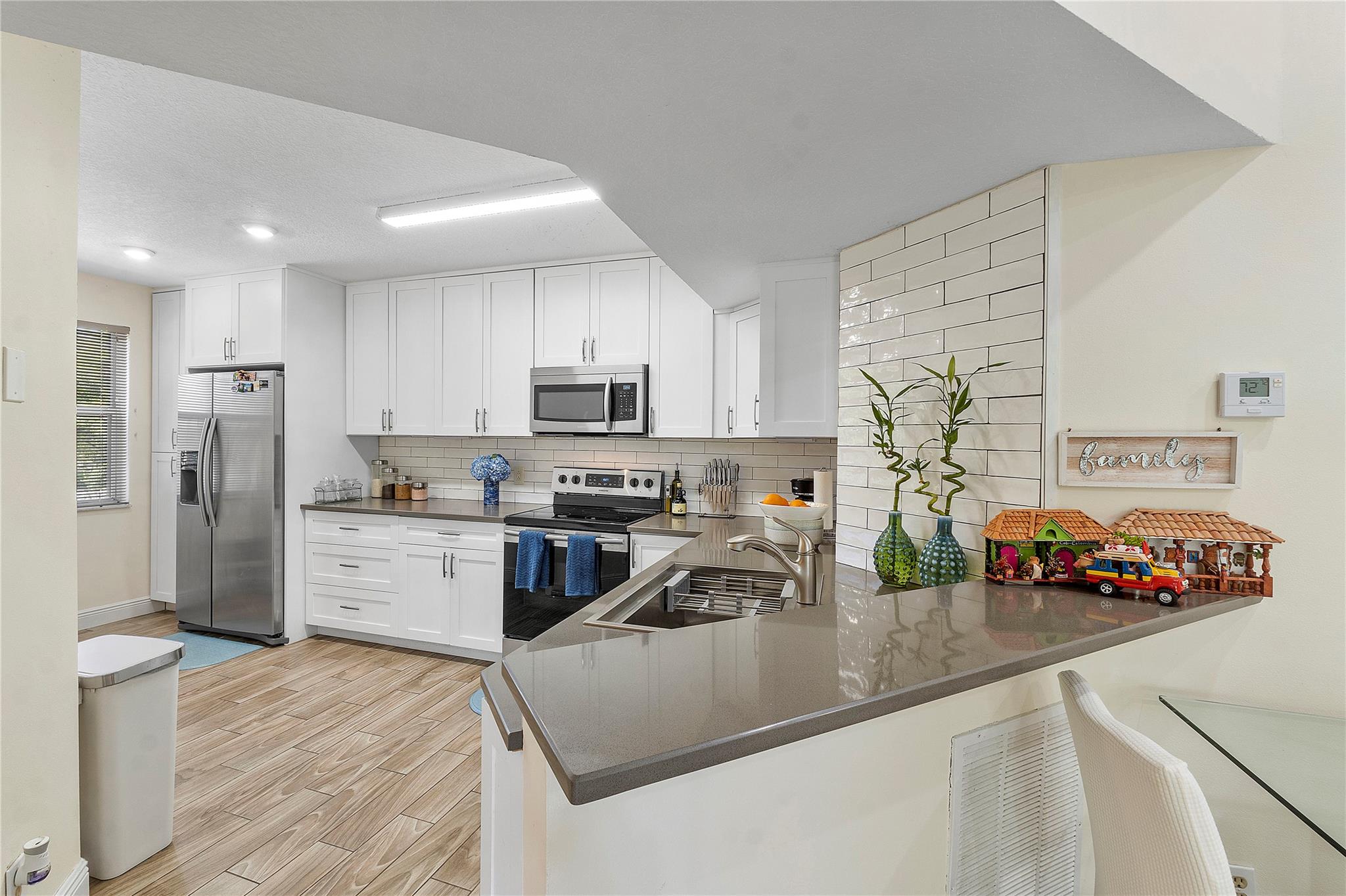Welcome HOME, this most beautiful Condo available in the highly desirable community of Edgewater. This meticulously remodeled to perfection 3rd floor bright 3/2 features a luminous interior accentuated by vaulted ceilings and newly installed recessed lighting. Say goodbye to dated popcorn ceilings and revel in the elegance of beautiful tile imitation wood flooring throughout. Updated with contemporary design trends the kitchen with new appliances (2019) is perfect for entertaining. Both bathrooms have also been remodeled. New Ac installed in 2020. Laundry room with storage space. Building has a brand new elevator right next to unit. Can be rented right away. Community amenities include: 2 pools, hot tub, tennis court, playground and fitness center. Great deal