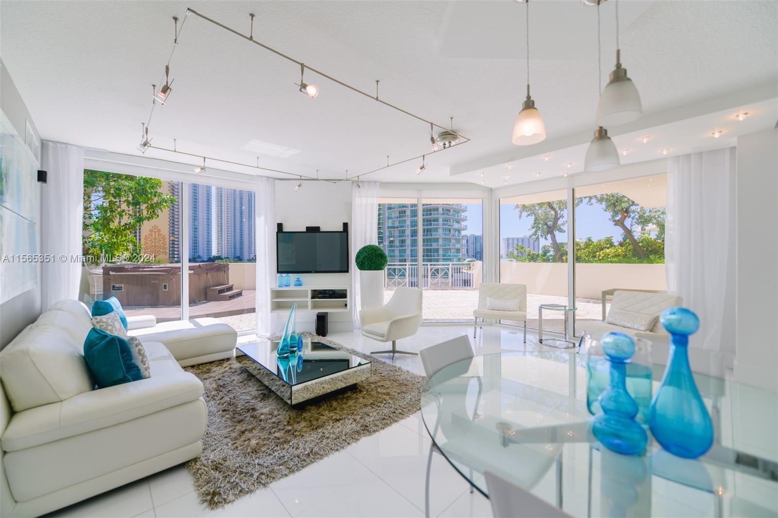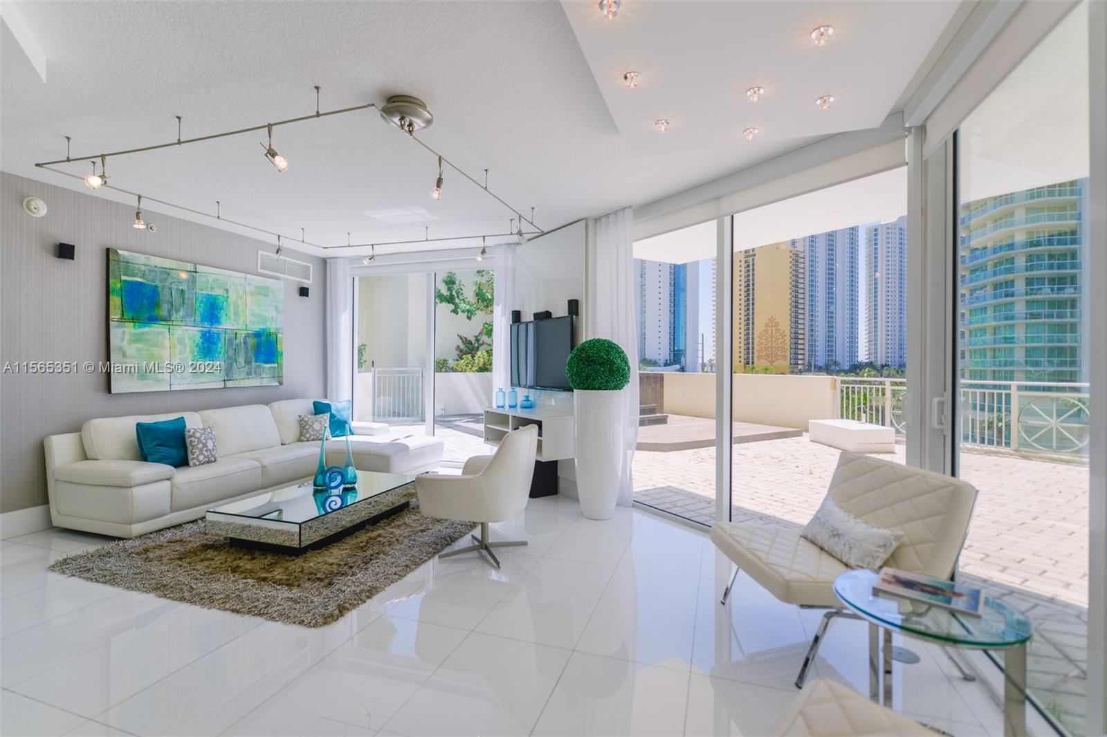 Beautiful Lanai condo in the heart of Sunny Isles. St. Tropez is a bay-front property with shops, sports classes, restaurants a full service building + common areas include pool deck and gym, walk to the beach, close to Bal Harbour Shops and to Aventura Mall. 2 parking spaces, Great unit with private 800SqFt terrace for entertaining and families.