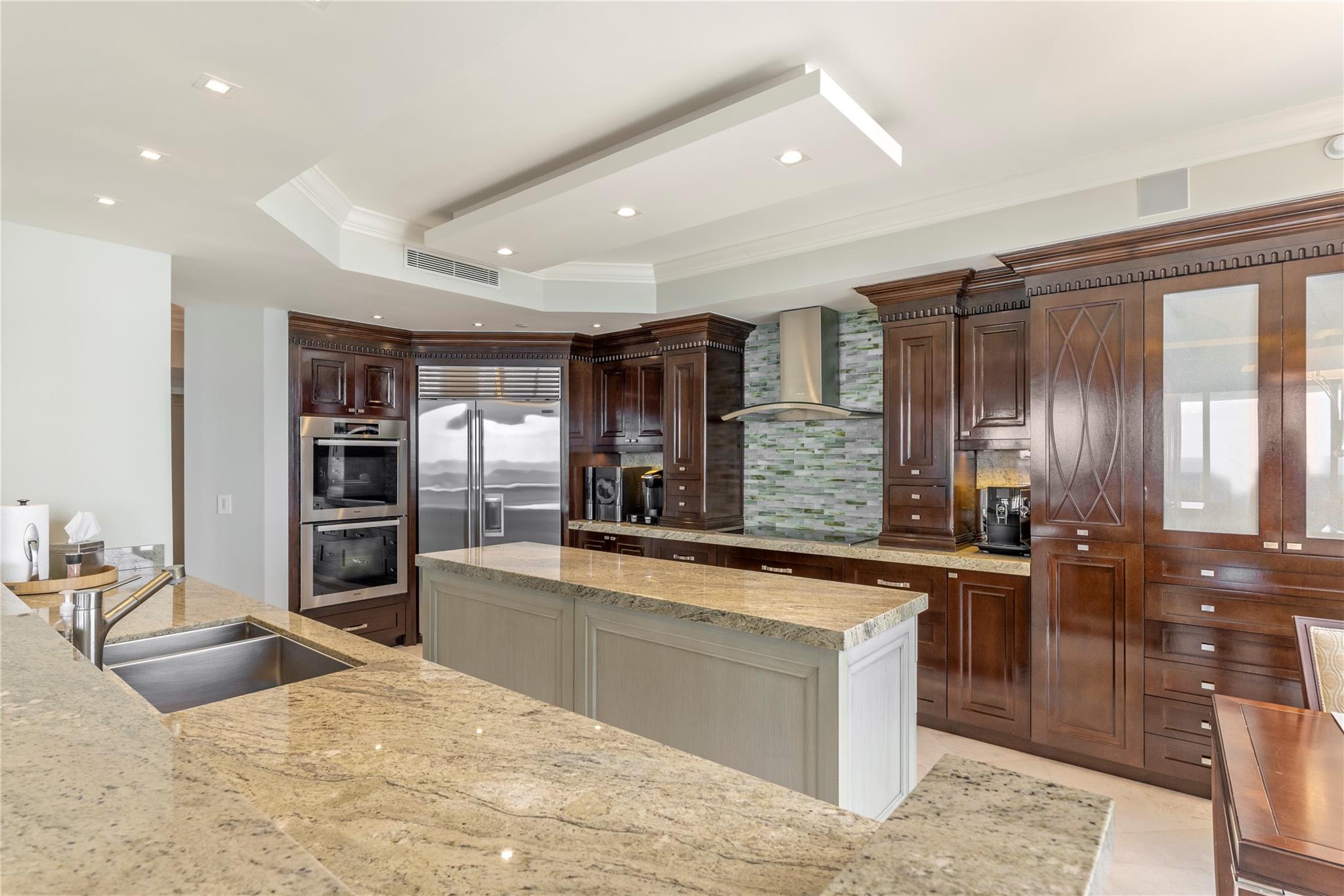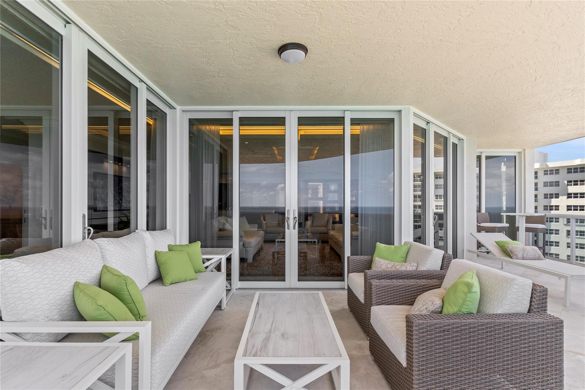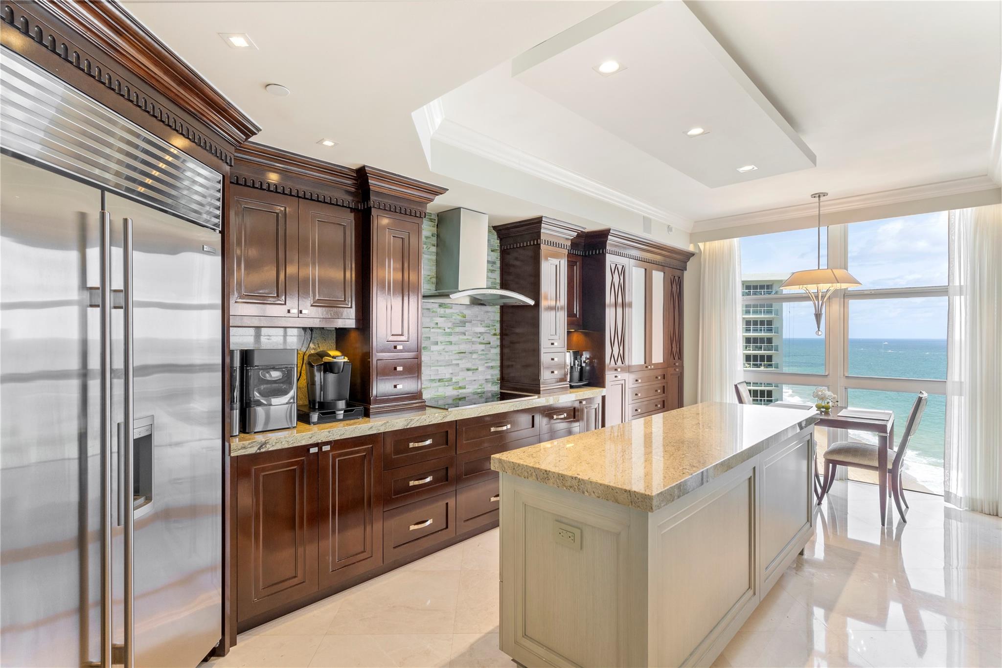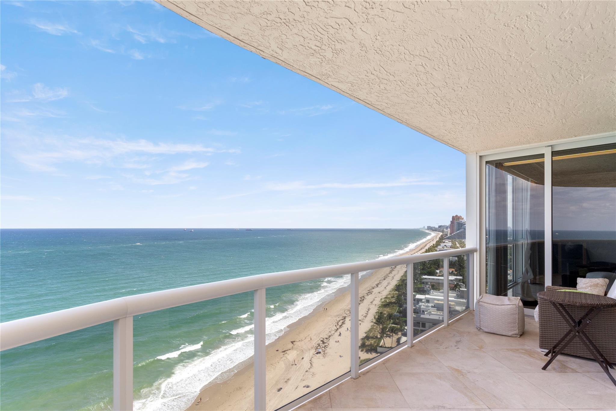 Designer model. DIRECT EAST OCEANFRONT C-O-R-N-E-R ! Available as furnished. 3 bedrooms/ 4 baths. NOTE: one guest bedroom w/ full bath is used as a den w a sleeper sofa and another guest bedroom w closet and full bath is used as an office. Primary bedroom has 2 baths. ABSOLUTELY BEAUTIFUL!!! Resort-like living with poolside restaurant, 2 pools, 2 spas, child pool, 2 tennis courts, private beach pavilion, cabanas, valet PLUS, PARK YOUR CAR YOURSELF in 2 GARAGE SPACE, concierge, TWO PETS, ANY SIZE OK, pet park, too.