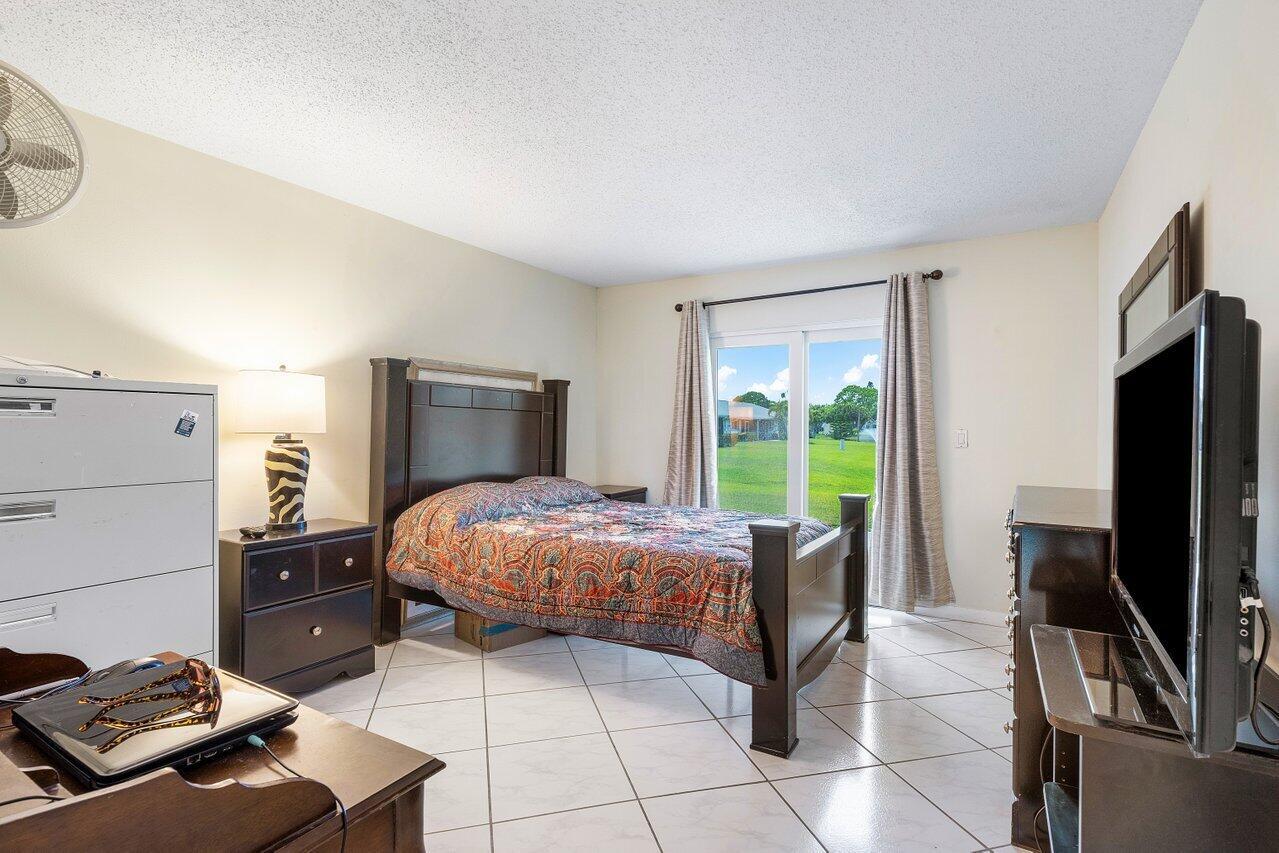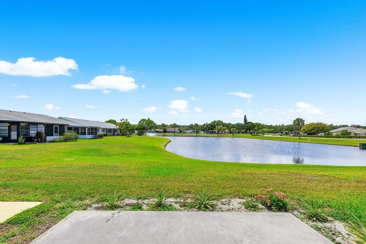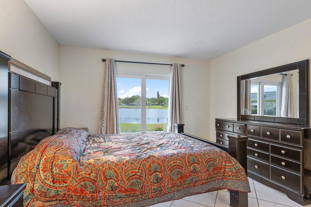 WATER FRONT! Gorgeous view unit with 2 comfortable large bedrooms. One of them offers sliding doors to the back patio and lovely lake relaxing lake views. Hurricane impact doors and windows. Covered porch at the entrance beautiful for a friendly afternoon.