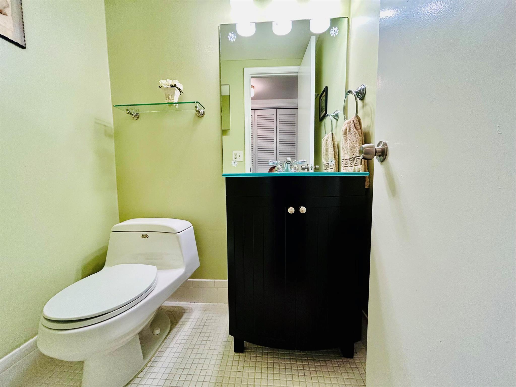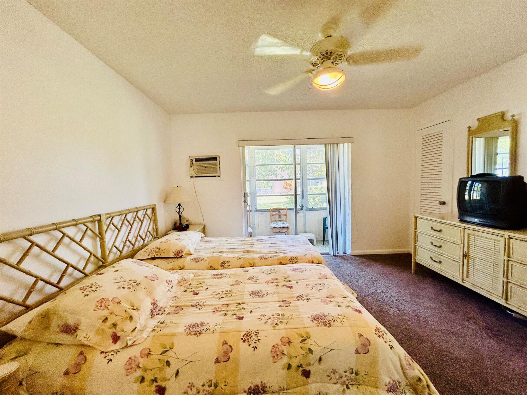 RENTABLE FROM DAY ONE. SUN FILLED FURNISHED 1 BED 1 1/2 BATH GROUND FLOOR UNIT. UPDATED KITCHEN AND BATHROOMS. FOUR MINUTE WALK TO THE CLUBHOUSE. WELL MANAGED ASSOCIATION.Roomy closets (2 walk-in), laundry room, assigned parking spot plus visitor parking available; local bus for errands/shopping both within & outside The Village; COME AND ENJOY RESORT STYLE LIVING IN THIS GATED COMMUNITY FOR ADULTS 55+. Clubhouse with theater, shows, movies, craft and card rooms, billiards, aerobics, yoga, and dance classes. GREAT LOCATION: close to shops, restaurants, PBI airport and beaches
