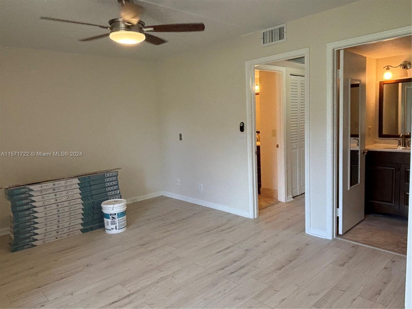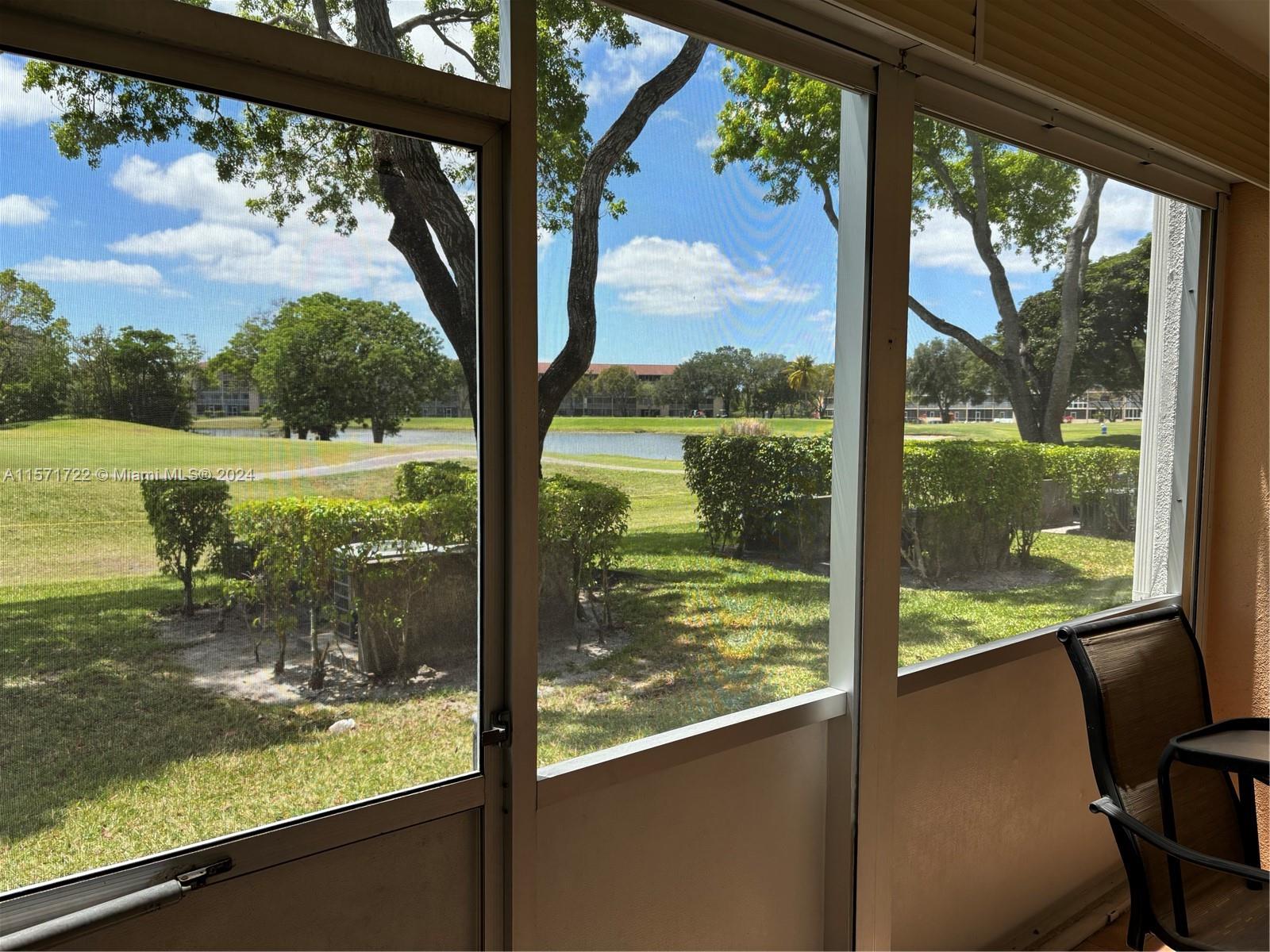Rarely available First floor unit for sale. Condo has a stunning lake and golf view. This condo is a 1 bedroom with 1 & 1/2 bath. Unit has been updated with Brand new A/C & water heater and brand-new laminate floors throughout. Kitchen has wood cabinets and granite countertops with SS appliances. Both baths have been renovated. Plus, a fresh coat of paint. HOA fees include, cable, Wifi- and hot water. Century Village is a 55+ community with many amenities, golf, pools, gyms, transportation, entertainment and much more. Laundry room only steps away. Unit is investor friendly, can lease right away. HOA requires a 650+ credit score.
