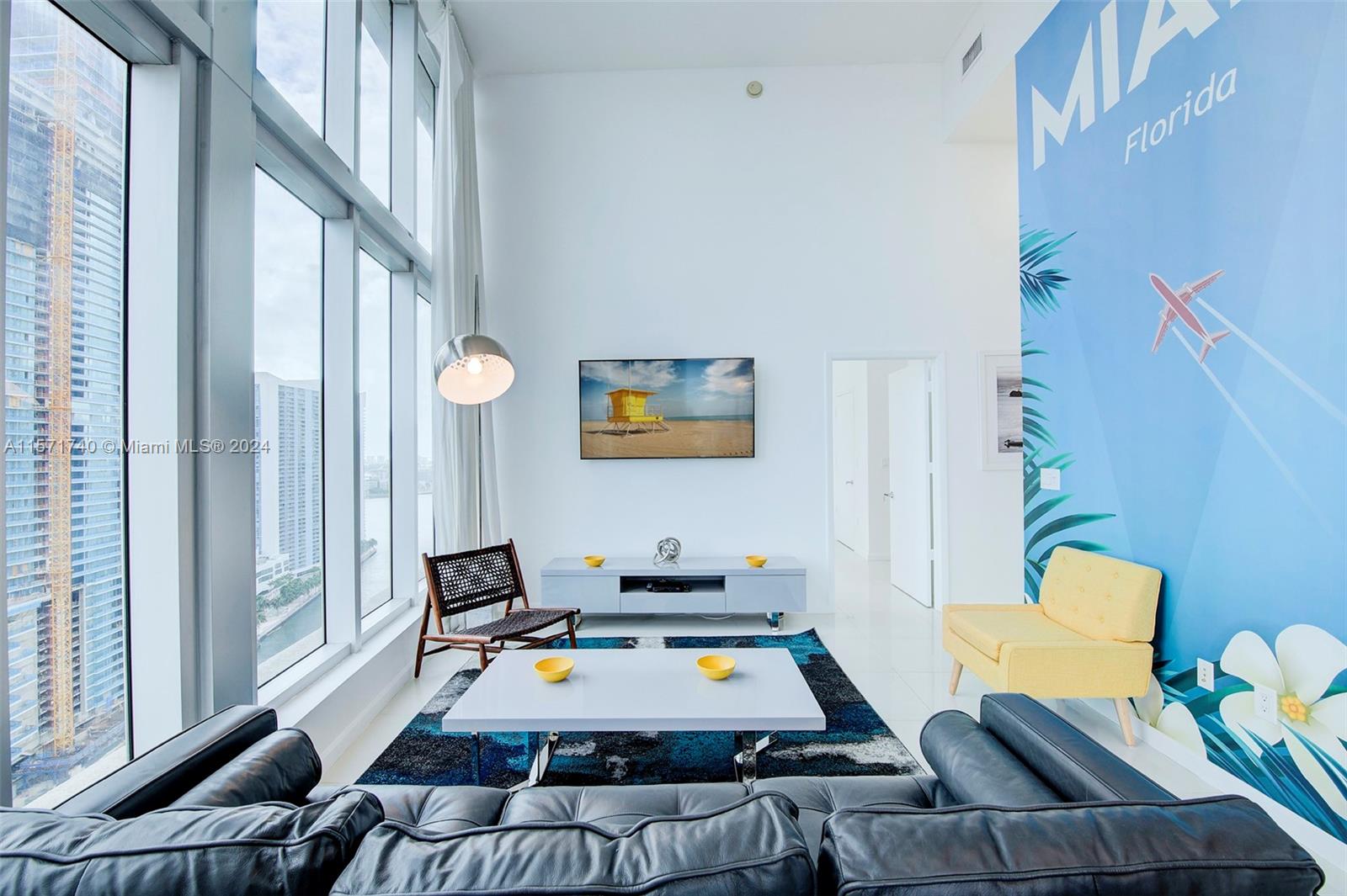 Rare 2/2 NE Corner Unit at Icon Brickell with 16ft. Double-height ceilings, Bay, and Ocean Views. Short-Term Rentals Permitted. Enjoy stunning views of Biscayne Bay, Miami River & Downtown skyline from floor-to-ceiling windows. Move-in ready. Ideal Miami vacation rental investment generating well over $100k Airbnb income. Top-notch management. Italian kitchen, Subzero Wolf Bosch appliances. Designed by Philippe Starck. World-class amenities: Heated infinity pool, movie theater, lush landscaping. Fine dining with Cipriani & LaVeinte in the building.