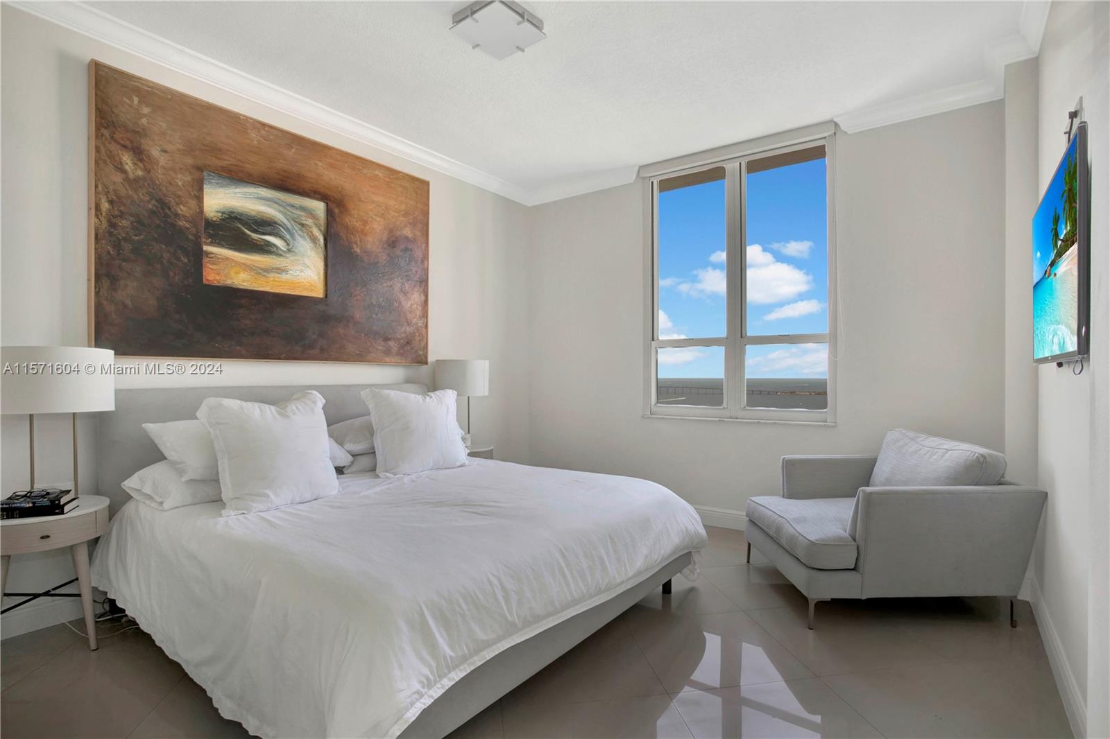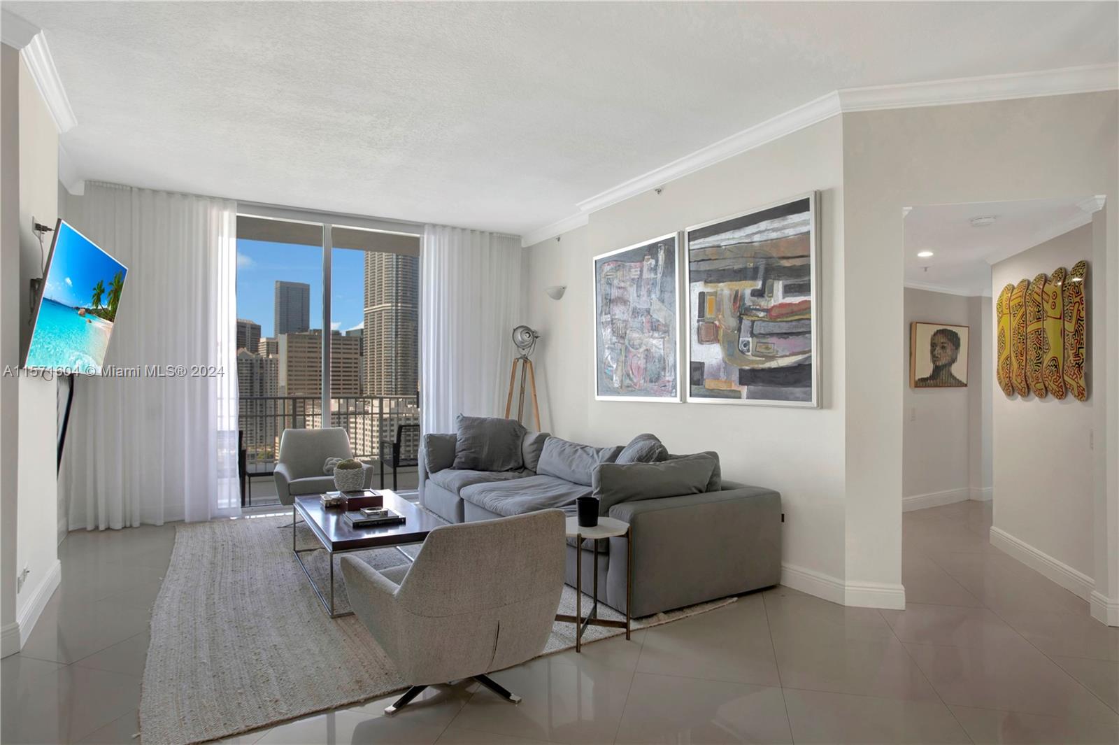 Spectacular Penthouse at Courvoisier Brickell Key. This spacious 3 bed/2.5 bath unit laid out over 1,573 SqFt offers wonderful water, bay & city views. 10-foot ceilings, porcelain flooring throughout, ample kitchen w/ granite countertop and stainless steel appliances, large walk-in closets, 2 parking spaces, 2 storage units. Great building amenities incl heated pool and jacuzzi, 2 story fitness center, racquet / squash court, billiards, media and conference room, shops & restaurants.