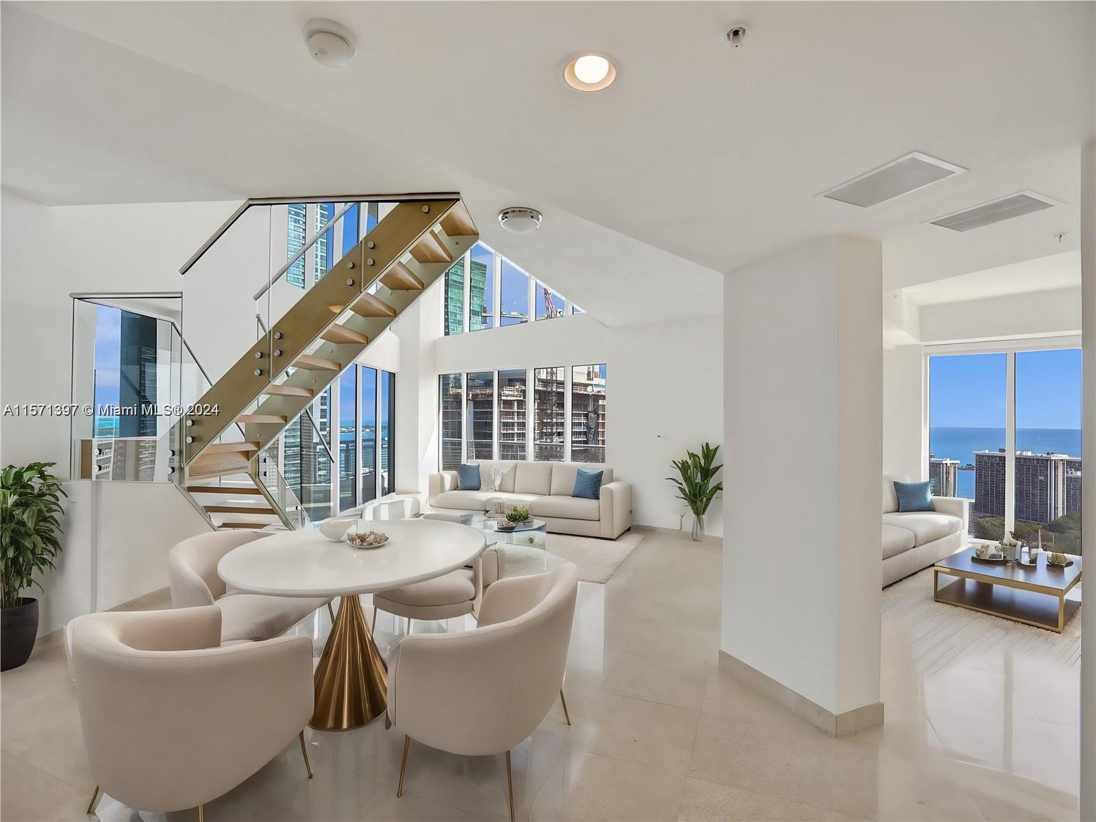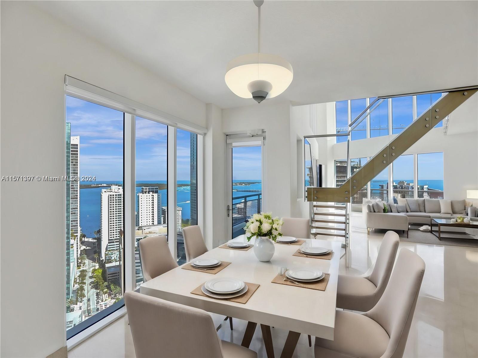 RARELY available (not since 2022) corner 00 unit in Infinity!! Floating 30 floors in the sky, 2-story duplex with jaw-dropping 20ft ceilings, 270* views of the bay, ocean, & city skyline. Floor-to-ceiling windows create an expansive ambiance rarely seen ANYWHERE in Miami. 3 balconies for you to choose to watch luscious sunrises & sunsets? The ONLY Mezzanine / Loft / Office adds 100 sft makes this the largest unit in Infinity! Ascend the floating staircase to discover 2 en-suite BRs, each with a private balcony. On the first floor, a 3rd en-suite BR awaits! First class 5-star resort-like amenities with 24-hour security, rooftop sun deck, private bar, jacuzzi, fitness center & spa. Walking distance to shopping, Brickell City Center, financial district, grocery, public transportation.