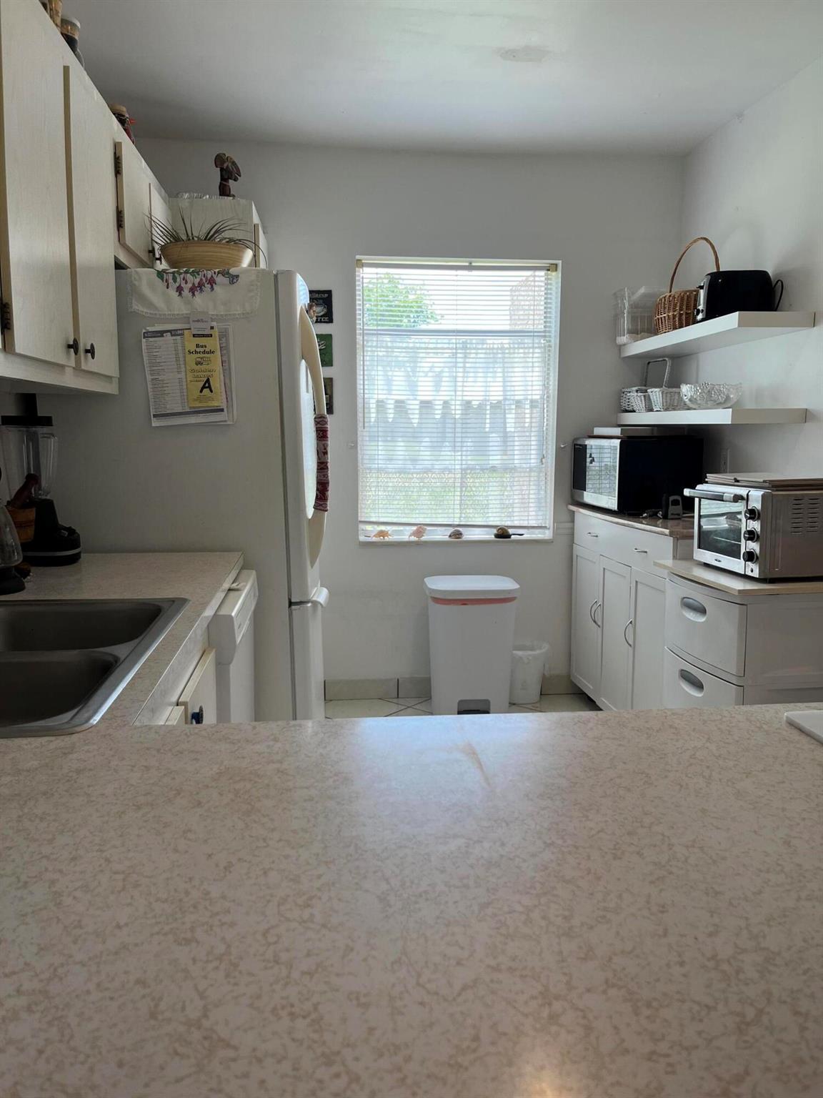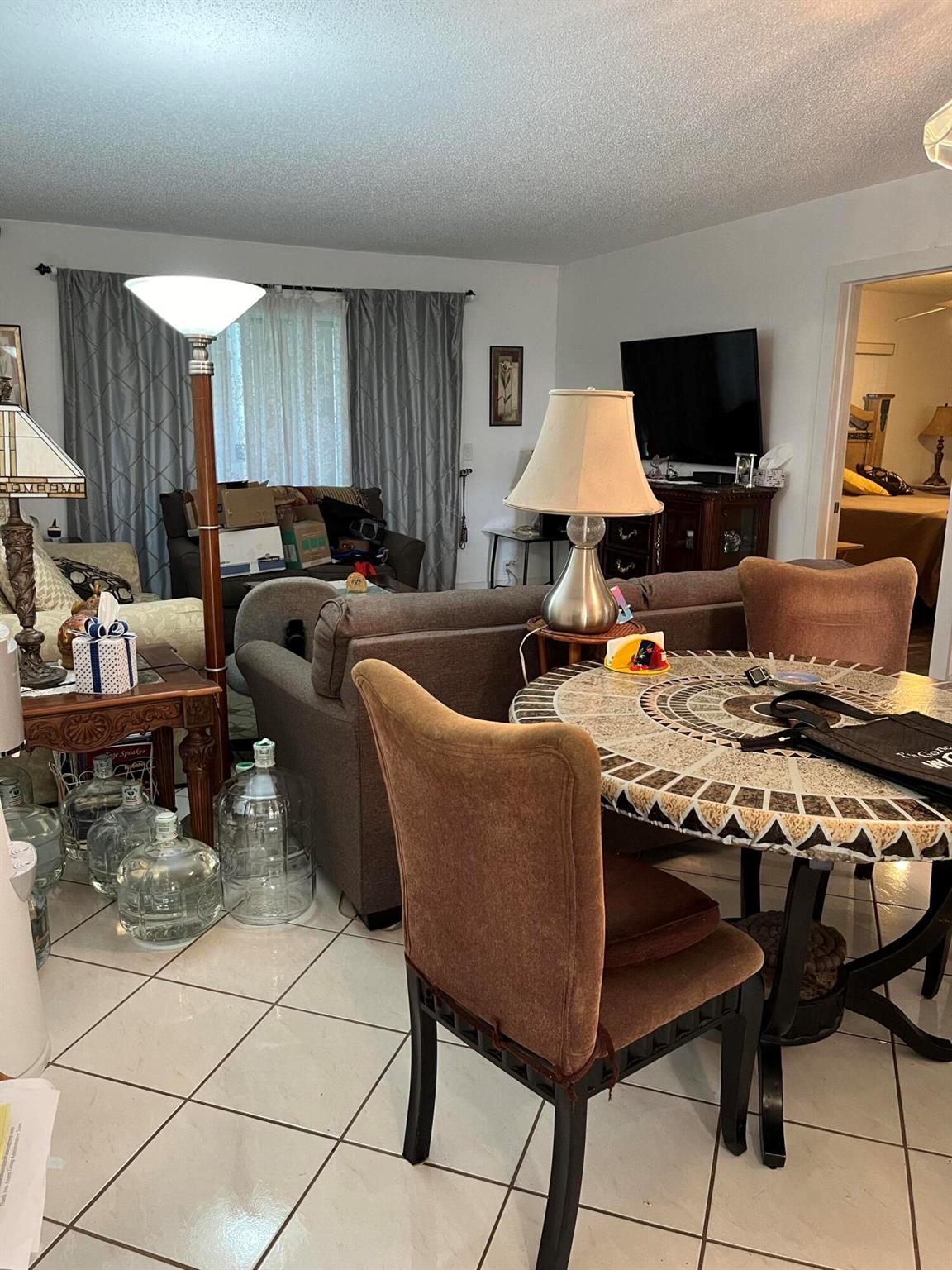 Nice and spacious first floor unit. You will find tile thru out and laminate in bedrooms. Walk-in closets in both bedrooms. Large enclosed patio surrounded in 2 sides by water. Unit is close to second gate for your convenience.Water purifier installed Nov. 18 2023 in the kitchen.All furniture, TV's and Cameras included on sale except by office desks, office chairs and personal belongings.