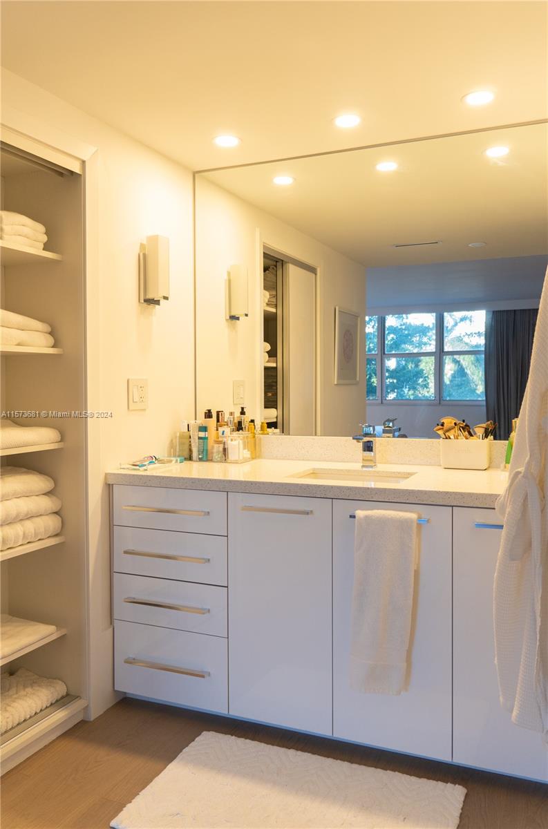 "EXTRAORDINARY" Just renovated. Large, 1,480 sq ft, 2bed/2.5baths in waterfront building. New hardwood floors throughout, upgraded bathrooms, freshly painted, new appliances. Both bedrooms have en-suite baths and walk in closets, plus additional half bath in foyer. Inside unit laundry hookup. Well maintained building has been renovated, new docks, new salt water pool, new balconies. Garage parking. Unit has extra storage room in garage. Pet friendly to 20lbs. Bldg has waterfront pool, gym, doorman, sauna, party rooms, kayak launch, community dock, potential to rent dock space. Can't rent the first year. Great neighborhood with K-8 "A+" public school, parks, restaurants & more. Walk to Bal Harbour Shops, houses of worship, beach.