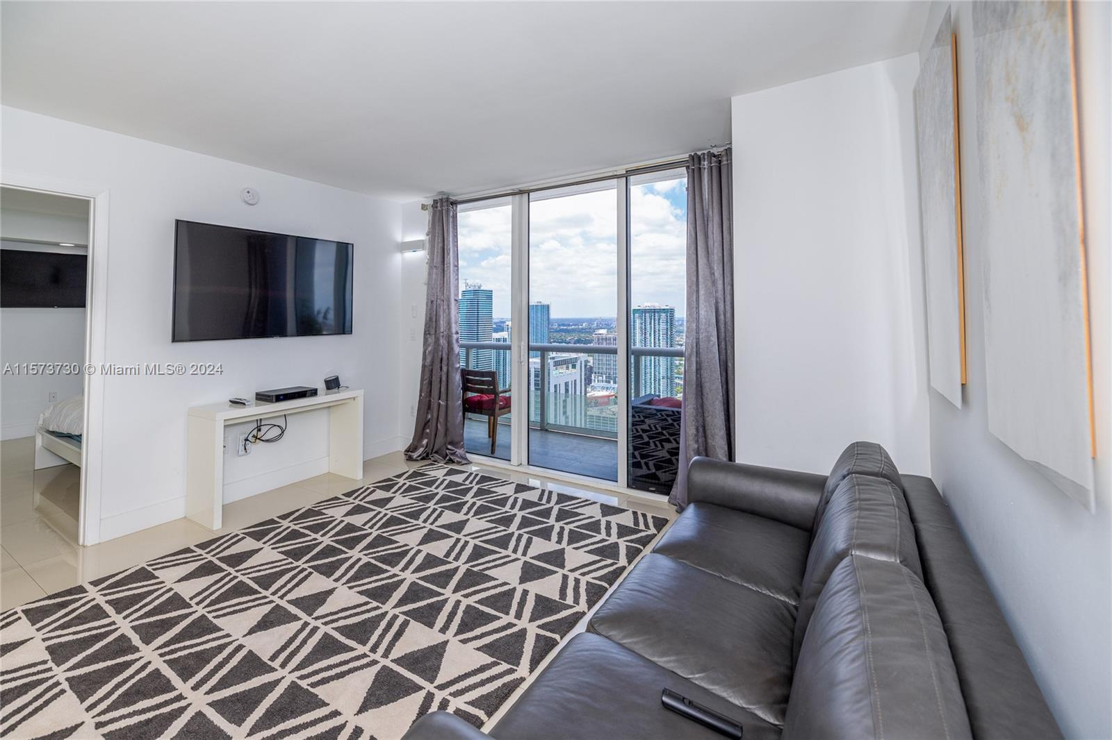 1 Bed 1 Bath + Den Penthouse Condo with Unobstructed Breathtaking City Views. Floor to Ceiling Impact Windows/Sliders. Open Balcony. Larger White Porcelain Tiles in Living Areas & Bedroom; Grey Wood Like Tiles in Bathroom & Open Glass Balcony. Kitchen Aid Stainless Steel Appliances, Dellacasa Italian Style Teak Cabinetry, Granite Counters. Full-Service Building, Resort Style Amenities: Infinity Pool, Cabanas, Day Beds, BBQ, Sauna, Steam Room, Spa, Yoga/Pilates Room, Fitness Center, 24hr Concierge & Security. 1 Assigned Parking Space, 24hr Valet Parking. Ideal Downtown Location. Metro Mover, Performing Arts Center, Bayfront Park, Kaseya .
