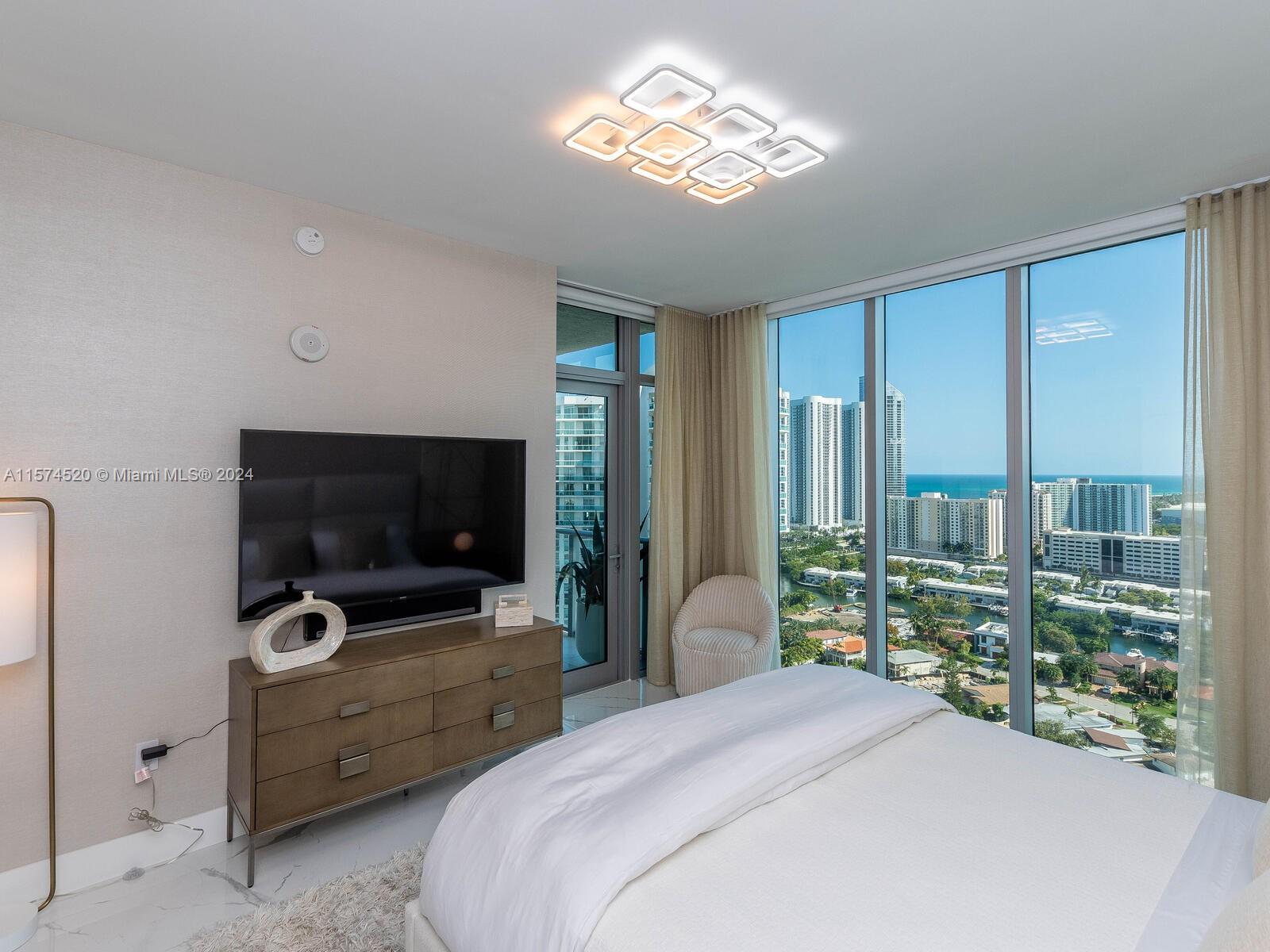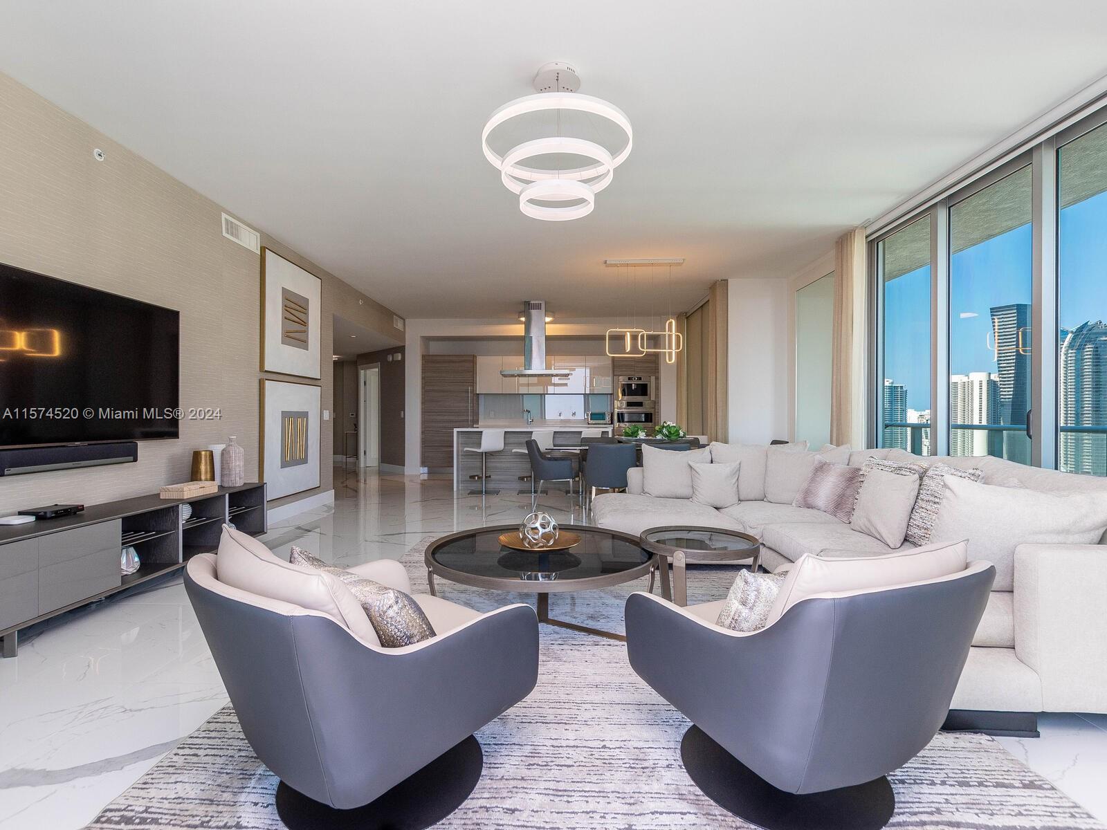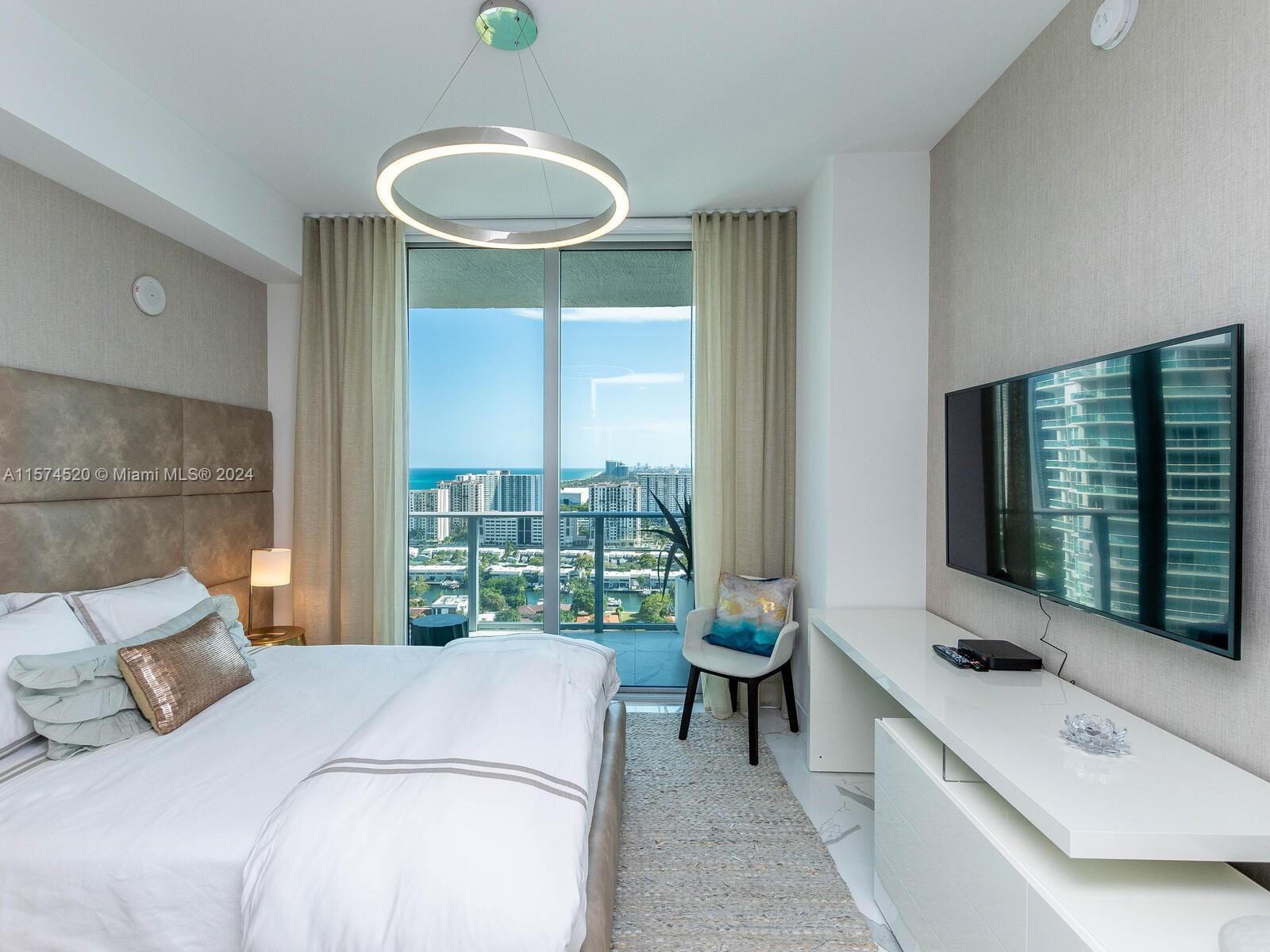 Fantastic furnished unit in Sunny Isles, close to the beach, with 5 stars amenities. Tastefully upgraded 3 bed/3.5 bath, corner unit, high floor and high ceilings, wrap around terrace with stunning panoramic views of Intracoastal, Miami skyline & Ocean. Designed by Steven G with finest furniture and beautiful decor and lots of upgrades. Open floor plan, floor to ceiling Impact glass windows & doors. Gourmet kitchen, quartz Countertops, induction stove, Italian cabinetry, Bosh & Subzero appliances, Italian closest and doors, electric blinds, beautiful porcelain floors. Luxurious amenities:24/7 front desk & Valet, 4 pools, Gym, Spa, Kids Club & Playground, Cinema, Games room, Bistro, Party room. Near the beach, Aventura Mall & Bal Harbor Mall. Awesome Schools.