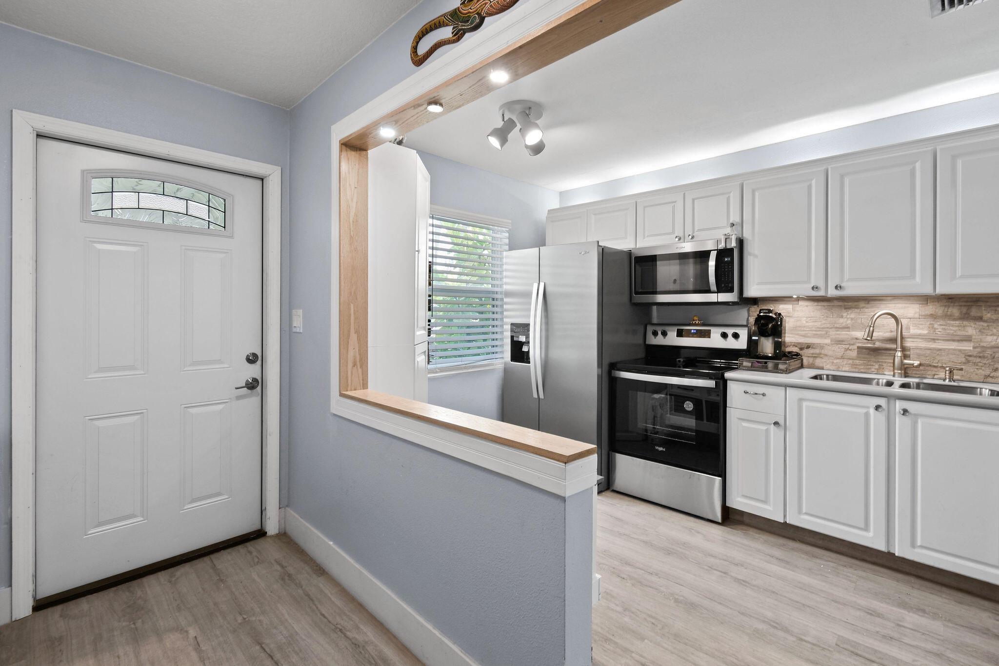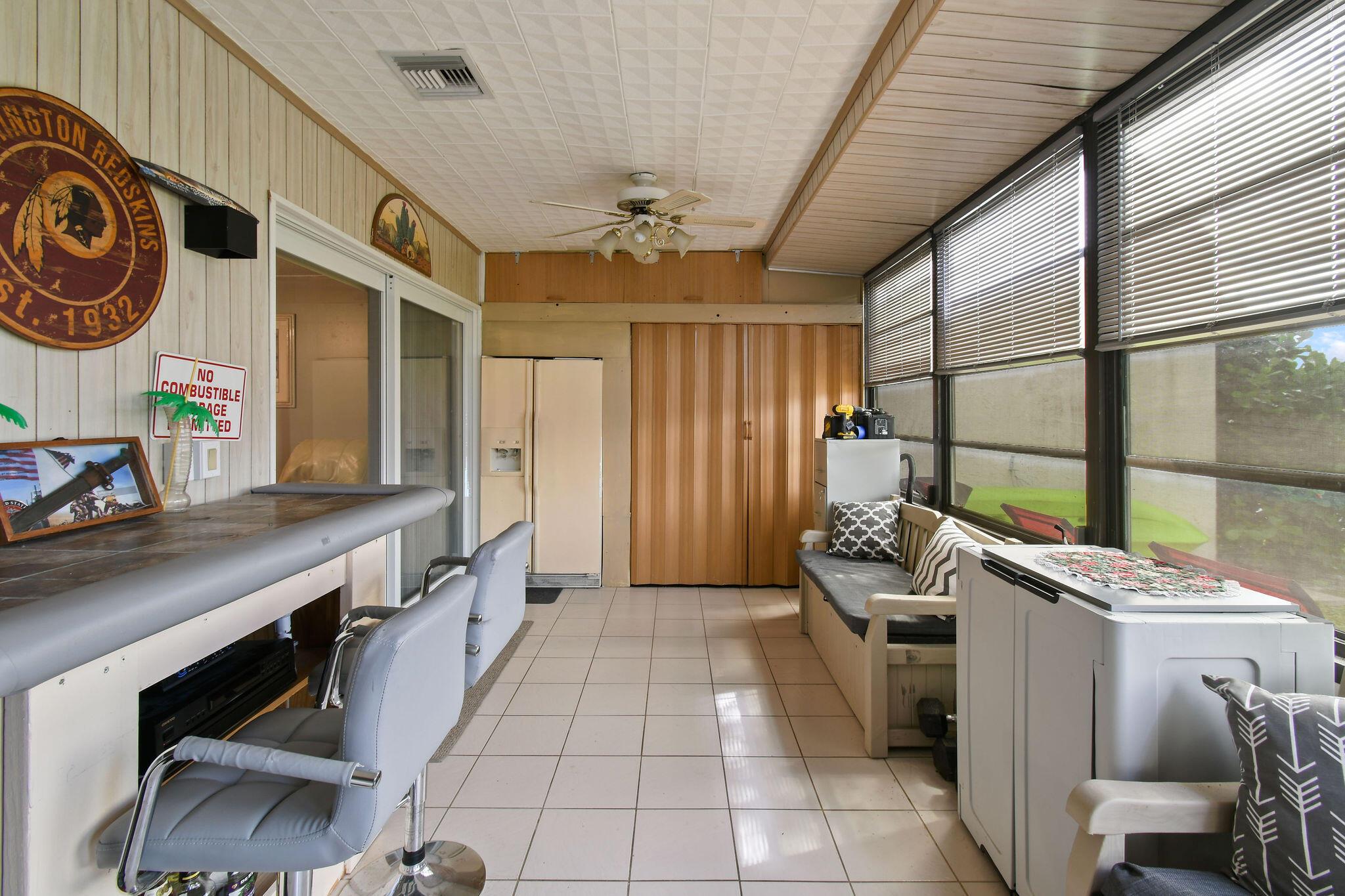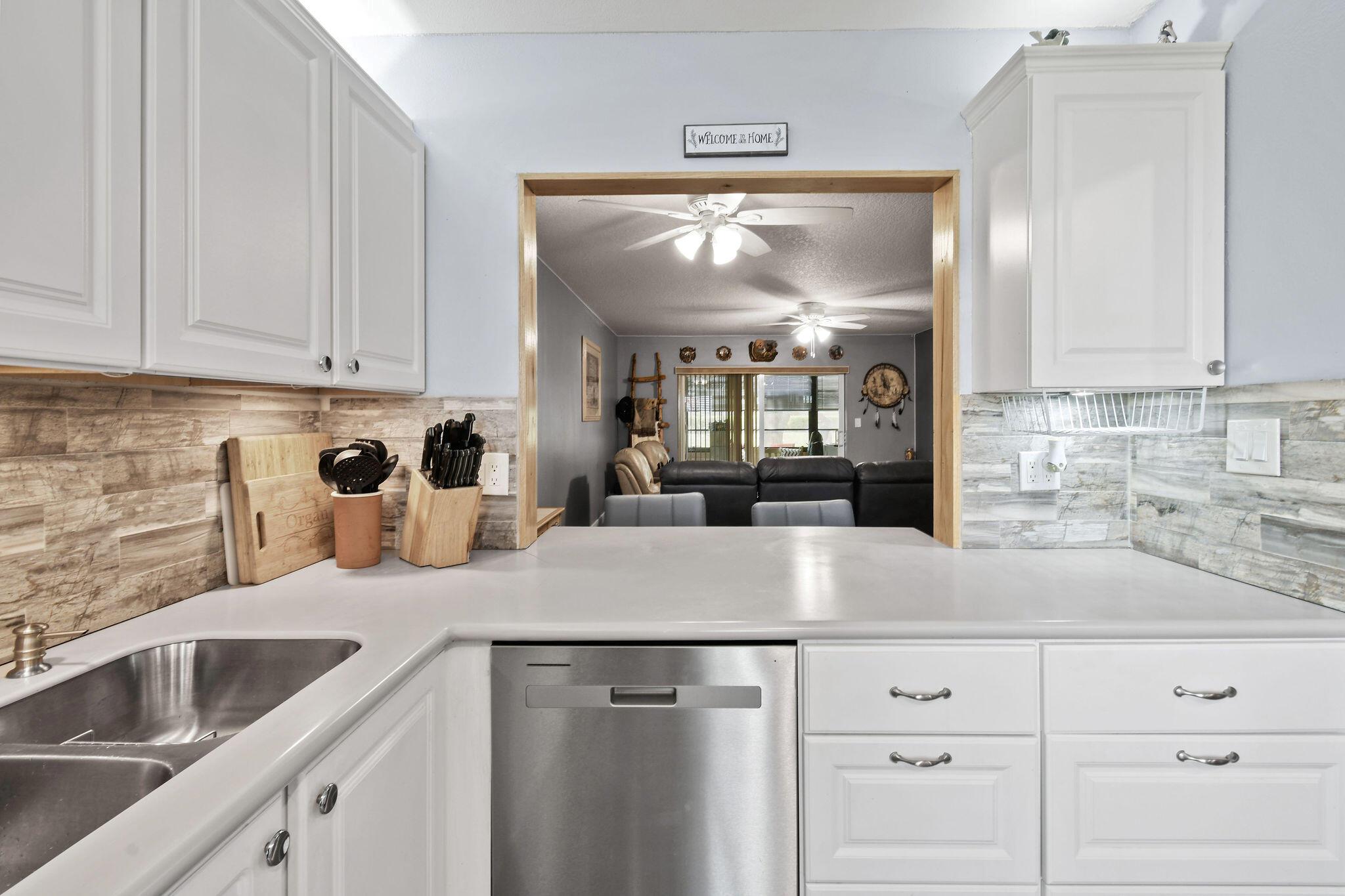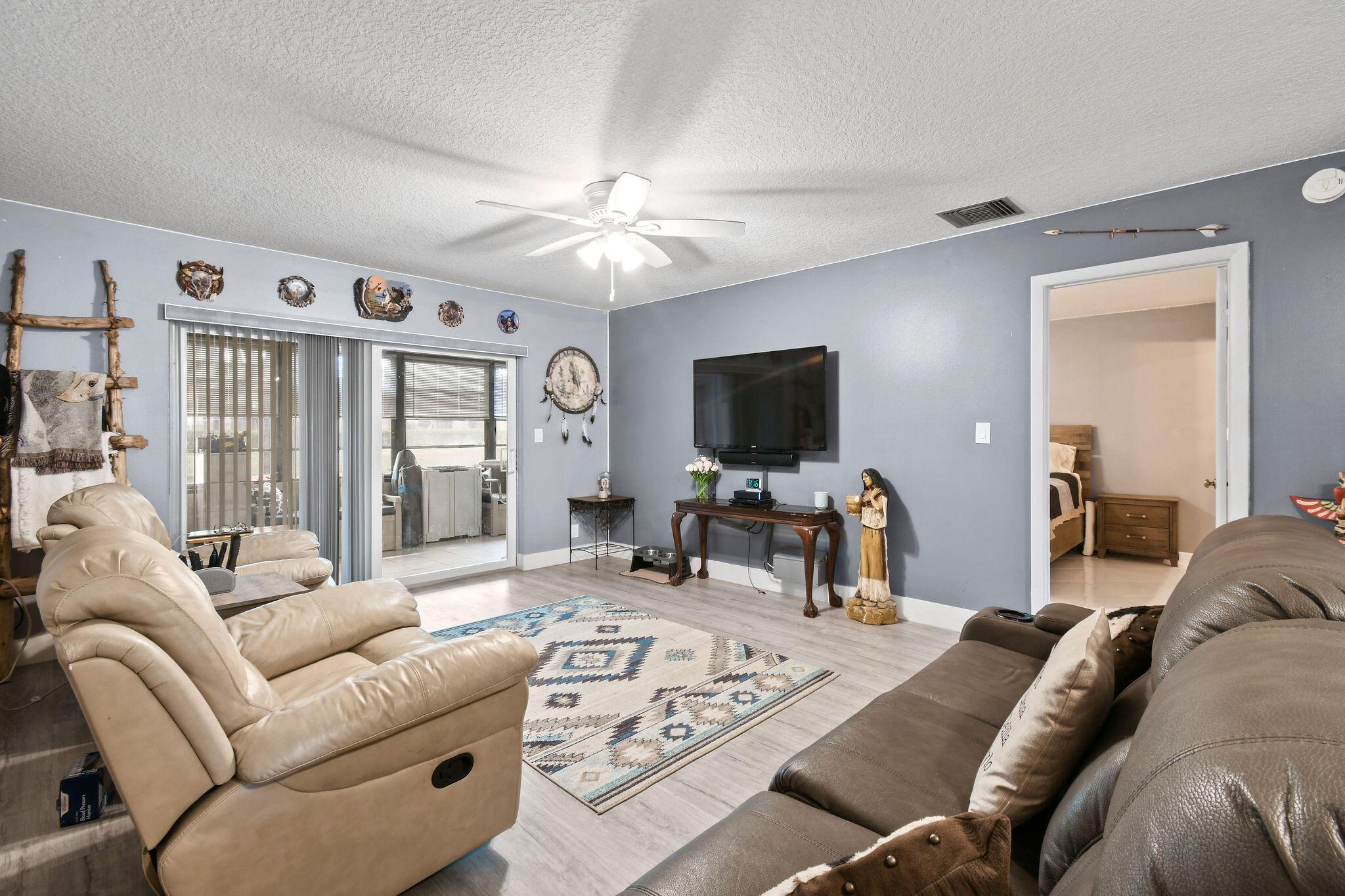 Updated move-in ready Villa. 2024 new A/C, tankless Water Heater, new appliances. 2023 remodeled bathrooms. 2022 IMPACT windows and front door, knockdown ceiling (no popcorn), vinyl plant floors, California closets and 2021 additional insulation added in the attic. Extra large 23'x10' Patio is enclosed with A/C vent, extra storage closet and additional 2nd refrigerator. Lake Rebecca also has a Satellite pool for Lk Reb residents to use. Monthly maint includes water, Xfinity Cable, Wi-Fi Internet, bldg insur, 24/7 guard gated & a social director scheduling shows, trips & social events. Clubhs with Pool, hot tub, tennis, Pickleball, billiards, Cafe and so much more. Come Discover all the amenities Golden Lakes has to offer.