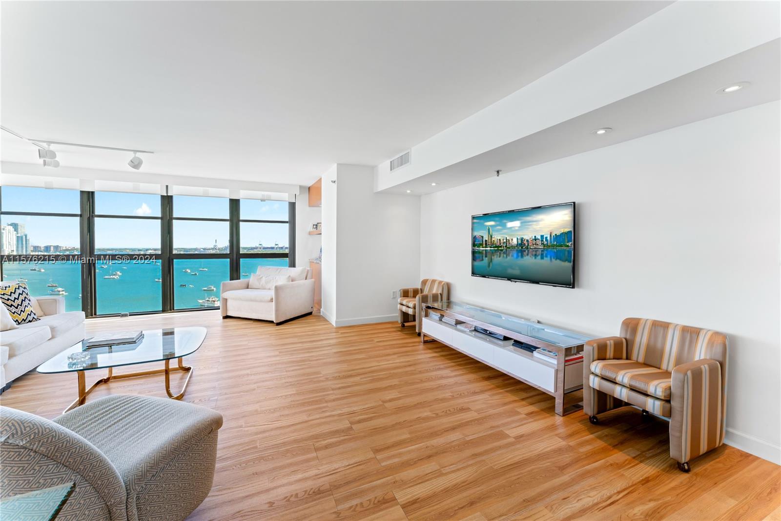 Rare opportunity for this luxury stunning SW exposure high floor corner two bedroom with magnificent panoramic Biscayne Bay views. Beautifully updated with modern finishes, vibrant wood floors, modern kitchen and spa baths. Each bedroom has an en-suite bath with a half bath for guests in the spacious foyer and a half bathroom for guests. 9 Island has been upgraded, remodeled and now takes its place among the finest offerings. High level amenities, including a resort style pool, modern gym, conference room & kids room.