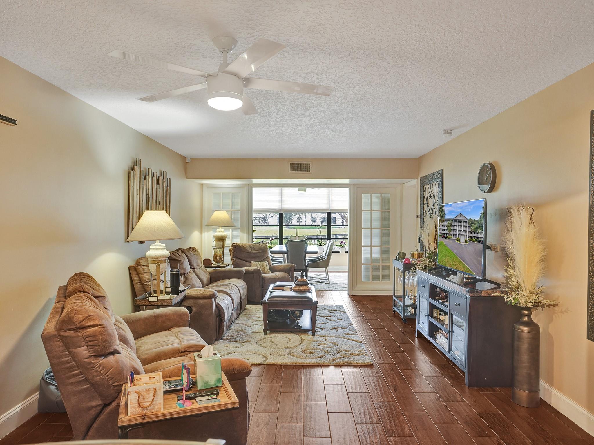 1ST FLOOR CONVENIENCE* STEPS TO PARKING SPOT*SUPERB WATER & GOLF VIEWS* UPDATED & UPGRADED SPACIOUS 2 BEDROOM 2 BATH*LARGEST 2 BEDROOM IN PIRCC * INTERIOR STORAGE AND LAUNDRY ROOMS* EXQUISITE KITCHEN WITH STAINLESS STEEL APPLIANCES* STONE COUNTERTOPS* RANGE HOOD VENTED OUTSIDE* PULL OUT LAZY SUSAN* DEEP DRAWERS CABINETS* TILE FLOORING THROUGHOUT* FRENCH DOORS FOR REAR DINING ROOM*LOCATED WITHIN PINE ISLAND RIDGE* A PRIVATE COUNTRY CLUB COMMUNITY * AMENITIES INCLUDE GOLF*TENNIS*PICKLEBALL*BOCCE BALL* GYM* SAUNA* POOL* SPORTS BAR*DINING ROOM*ALL AGES WELCOME*CONDO SAYS NO PETS,PICKUP TRUCKS, MOTORCYCLES, COMMERCIAL VEHICLES* EMOTIONAL SUPPORT & SERVICE ANIMALS ARE ACCEPTED WITH PROPER DOCS. PETS*ESA PERMITTED* VIABLE FINANCING IS 70/20/10 OR 75 LTV*MAINTENANCE PaID QUARTERLY @$1930