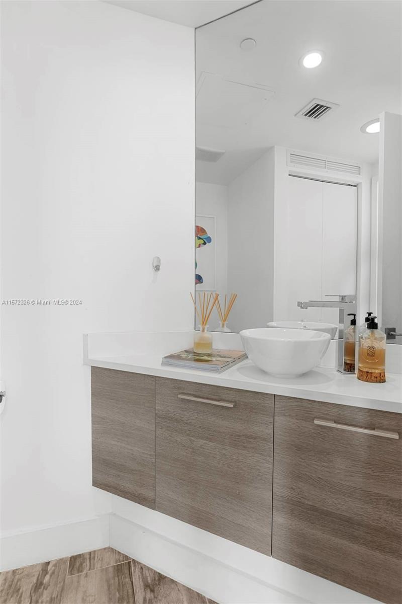 This 1-bedroom, 1.5-bathroom unit boasts floor-to-ceiling glass windows, 9-foot ceilings, and renovated kitchen cabinetry. Enjoy the luxury of a private foyer and the convenience of moving in immediately to this well-maintained space. Situated in the esteemed Paraiso Bay building, residents can indulge in resort-like amenities, including tennis courts, a lavish health spa with a sauna and steam room, a resort-style pool, fitness center, cinema, wine cellar, party room, and a pedestrian-friendly street. With 24-hour security, front desk service, and valet parking, convenience and safety are paramount.