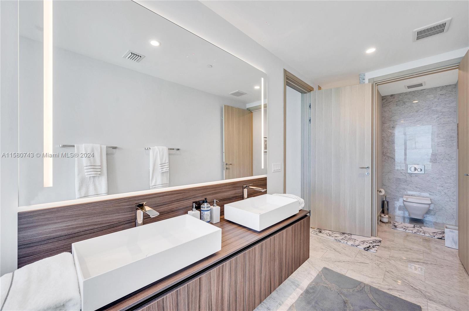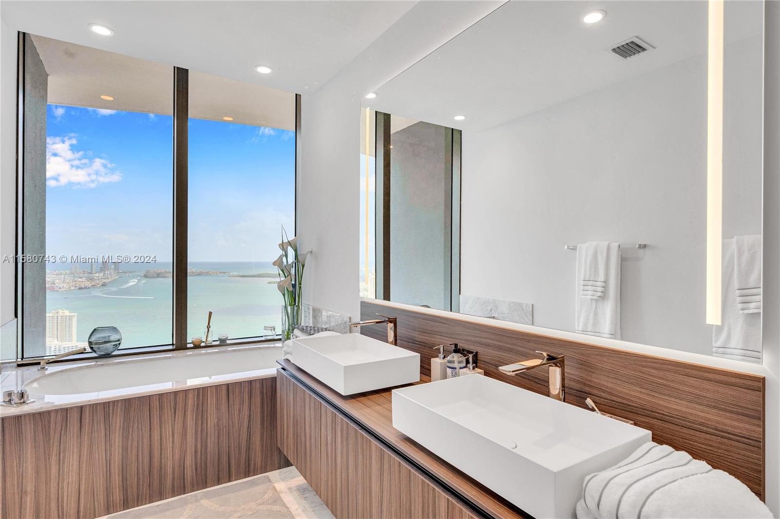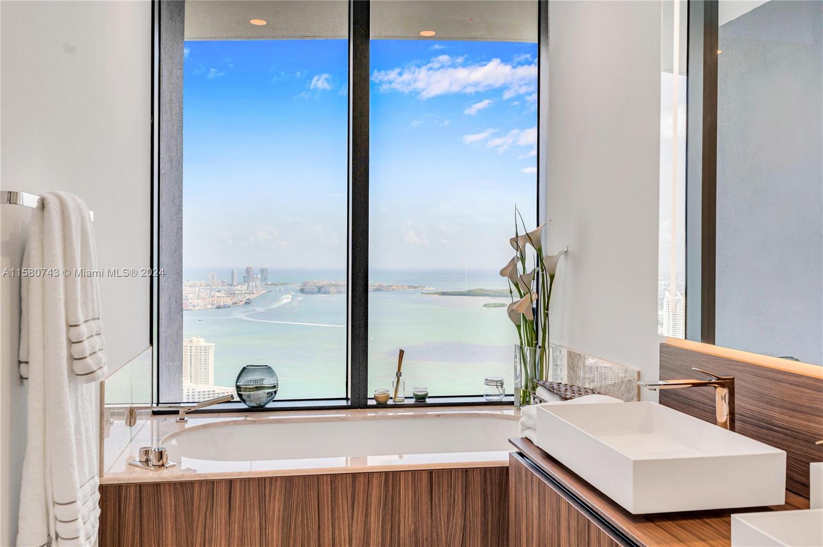 Check out this must-see opportunity! Experience breathtaking views of Miami from the 60th floor in this stunning fully furnished unit. With 3 bedrooms and 2 full baths plus a guest bath, this space offers both luxury and comfort. The kitchen boasts top-of-the-line Miele appliances and a spacious cooking island. enhanced insulation for soundproofing between units, ensuring tranquility amidst the vibrant city. This exclusive residence offers an array of amenities, including a rooftop pool and spa on the 64th floor, complete with steam rooms, saunas, and locker facilities. Stay active in the 6,300-square-foot gym, ea lap pool and children's pool on the 18th floor, a movie theater, billiards room, and electric car charging stations for eco-conscious residents.