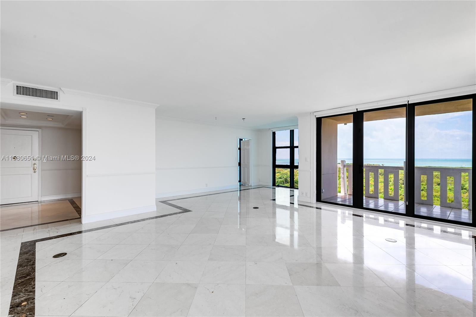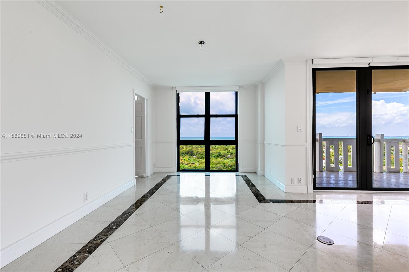 Breathtaking panoramic views from this sought-after 2 Bedroom 2 Bath + Den corner unit. Enjoy unobstructed views of Biscayne Bay, State Park, and the ocean, along with enchanting sunsets, without exposure to neighbors. The unit boasts a generous layout, featuring an eat-in kitchen, spacious master bedroom, and Den. The unit is surrounded by floor-to-ceiling impact windows. Located in the enclave of Key Biscayne, Towers of Key Biscayne offers resort-style amenities including 2 pools, beach access, 2 tennis courts, beachfront BBQ, gourmet restaurant, fitness center, sauna, steam room, beauty salon, billards, teens' and children's playroom. Convenient EV charging and 24-hour security. Enjoy the convenience of 2 assigned parking spaces. Easy to show