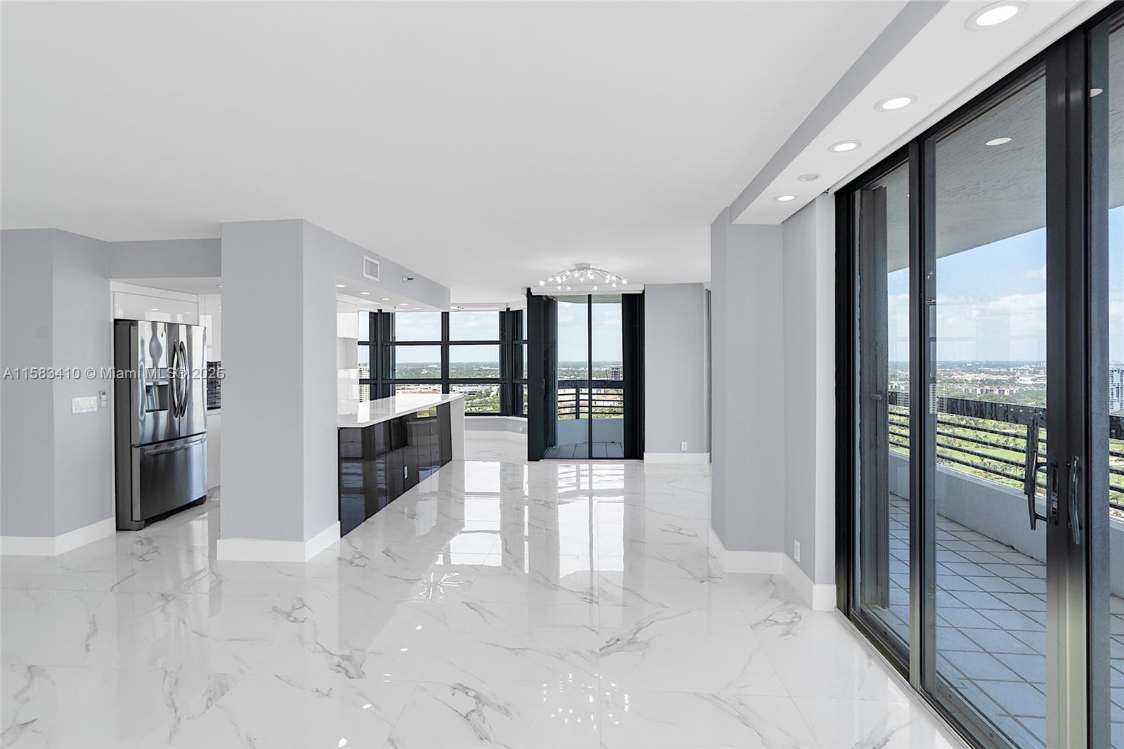 ONE OF A KIND. Completely remodeled 2 beds plus den and 2 full bathrooms.Enjoy the most beautiful and spectacular panoramic views of the ocean,Turnberry Golf course,skyline from this spacious apartment in the prestigious Mystic Pointe.Apartment features an exquisite open kitchen with new stainless steel appliances and wine-cooler. Unit features exquisite bathrooms, separate new washer and dryer in the unit. Entire home has tile throughout. Split floor with extensive wrap-around balcony with breathtaking views and shutter.Full building amenities including: Fitness center, heated pool,library,7 clay tennis courts,2 pickle ball courts,1 basketball court and dog park,mini market, beauty salon and restaurant. Mystic Pointe is a desirable and all-inclusive 24 hours gated community.
