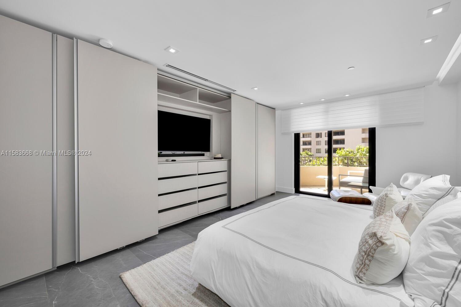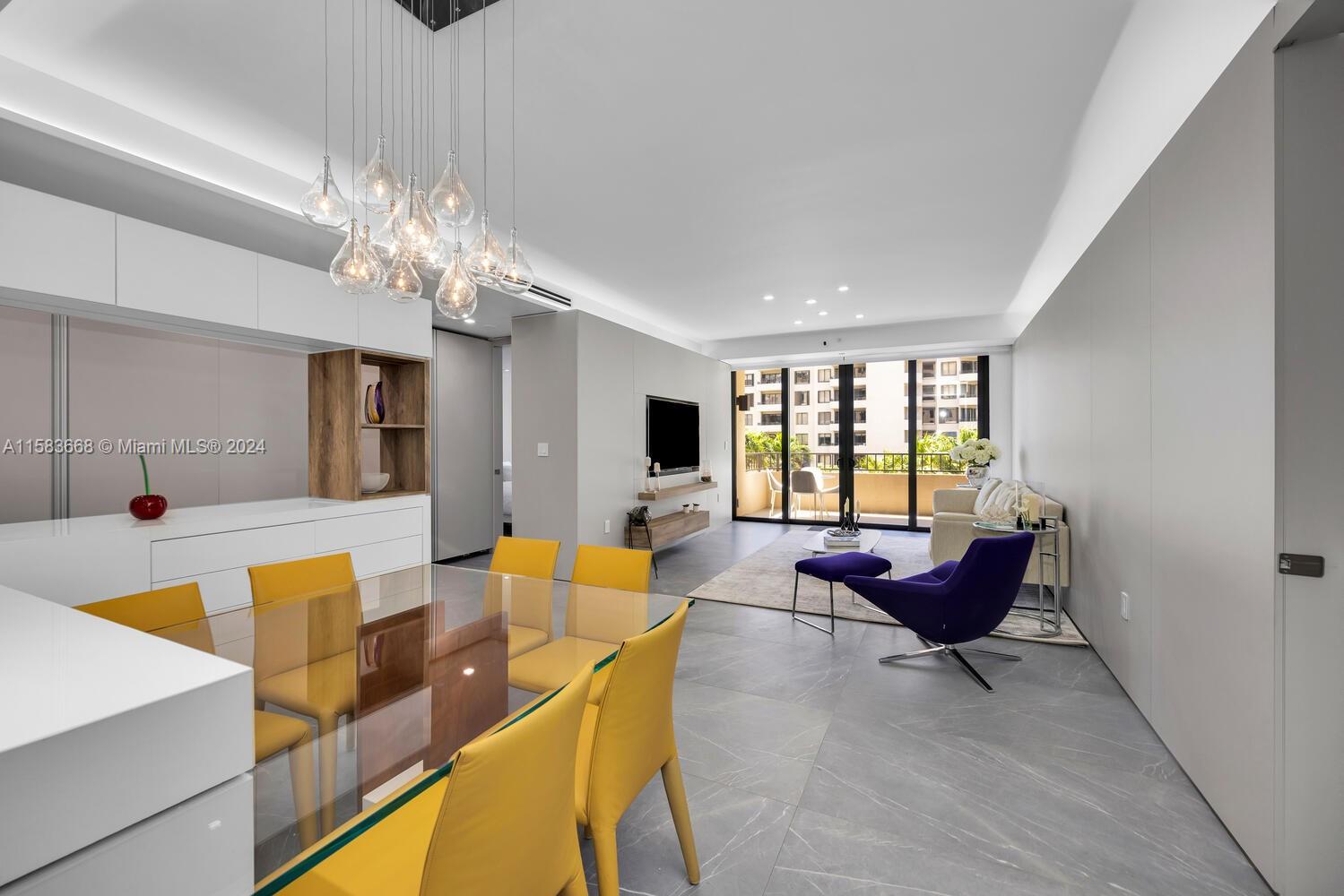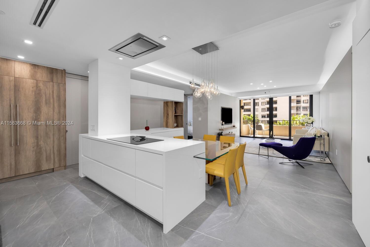 Unparalleled, impressive & completely renovated 2/2.5 unit. 1560 SF. Ingenious use of space like no other unit. Split bedroom plan. Large laundry/pantry/office. HIGH IMPACT WINDOWS & DOORS. Unique and sleek interior design features raised ceilings, custom sliding door system throughout w/internal auto lighting, MiaCucina designed kitchen w/Wolf, SubZero and Asko appliances. 48 bottle Wolf wine cooler. Linear A/C diffusers. Porcelain flooring provides a seamless transition to the extended balcony. Be the first to preview this spectacular unit! 2 covered parking spaces.