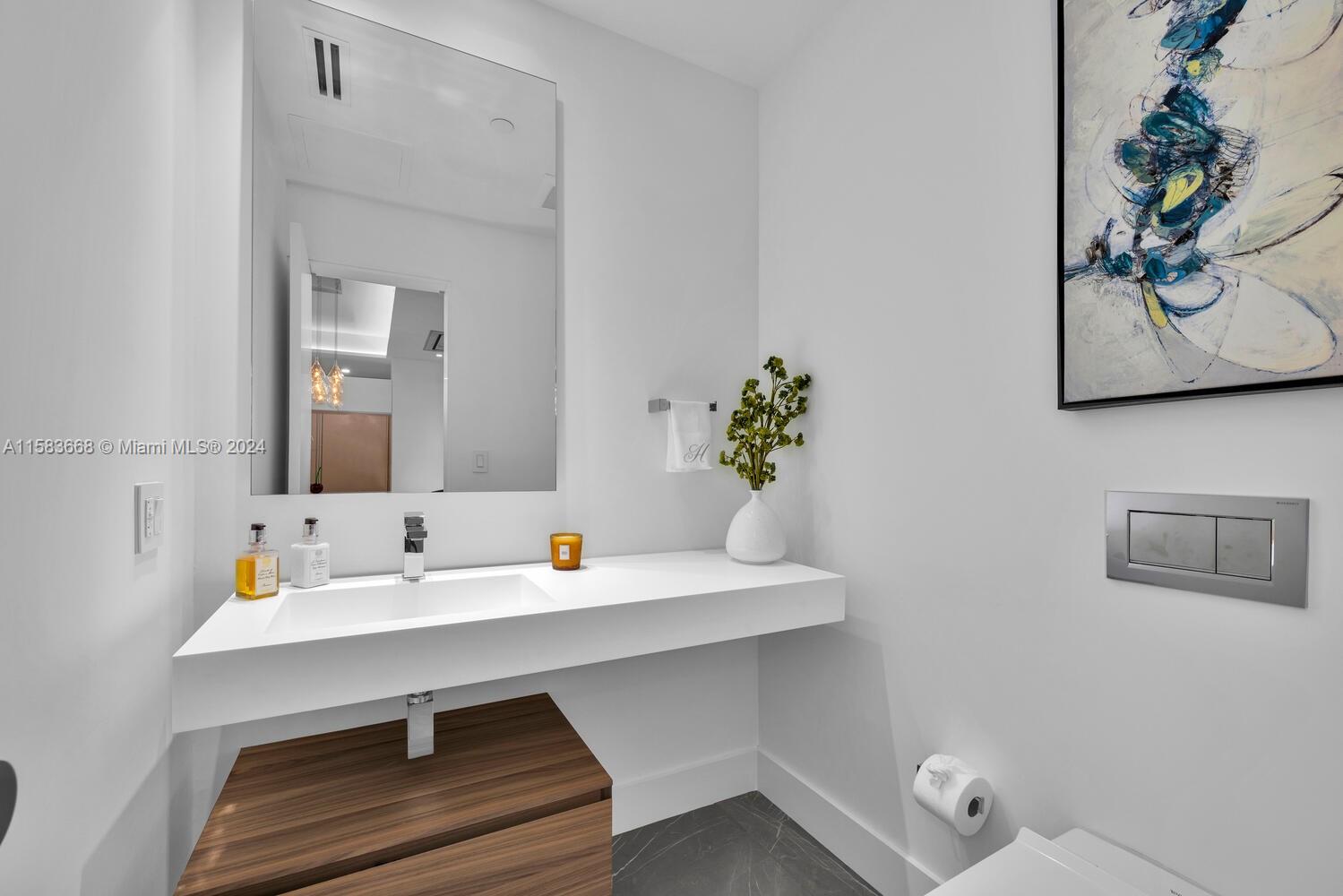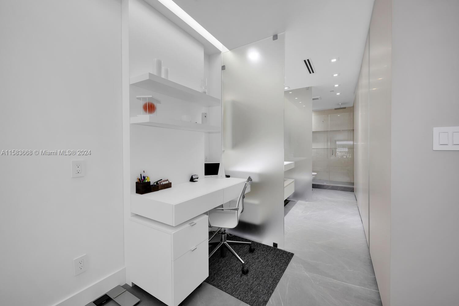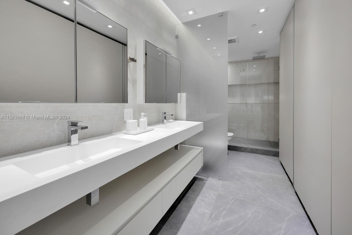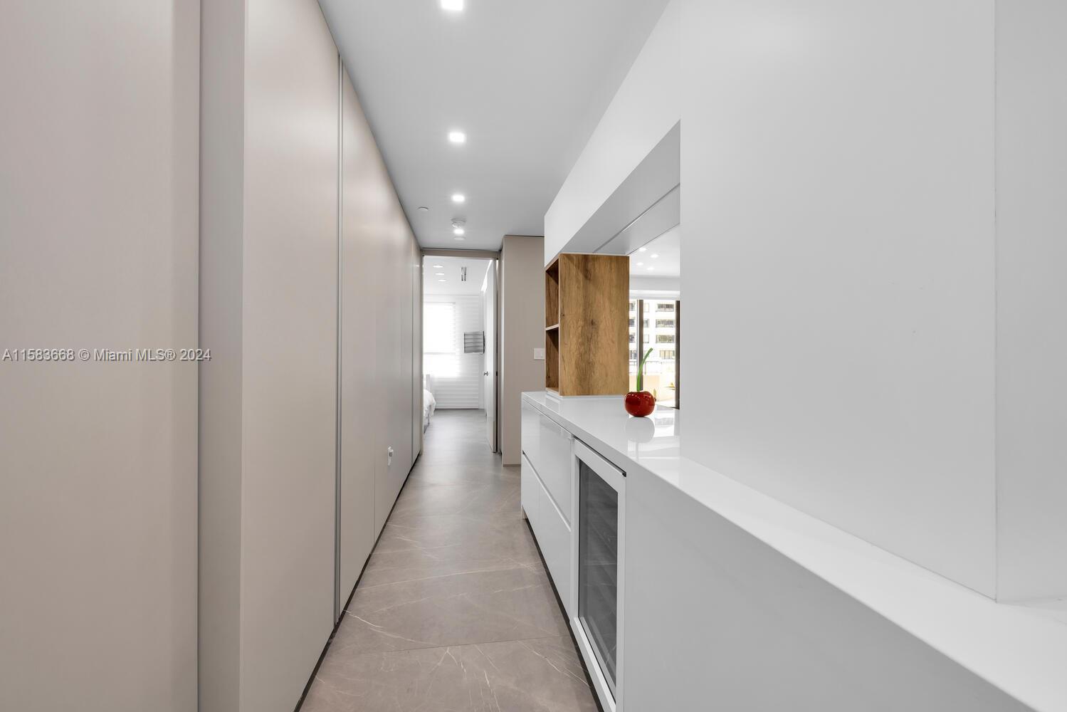Unparalleled, impressive & completely renovated 2/2.5 unit. 1560 SF. Ingenious use of space like no other unit. Split bedroom plan. Large laundry/pantry/office. HIGH IMPACT WINDOWS & DOORS. Unique and sleek interior design features raised ceilings, custom sliding door system throughout w/internal auto lighting, MiaCucina designed kitchen w/Wolf, SubZero and Asko appliances. 48 bottle Wolf wine cooler. Linear A/C diffusers. Porcelain flooring provides a seamless transition to the extended balcony. Be the first to preview this spectacular unit! 2 covered parking spaces.