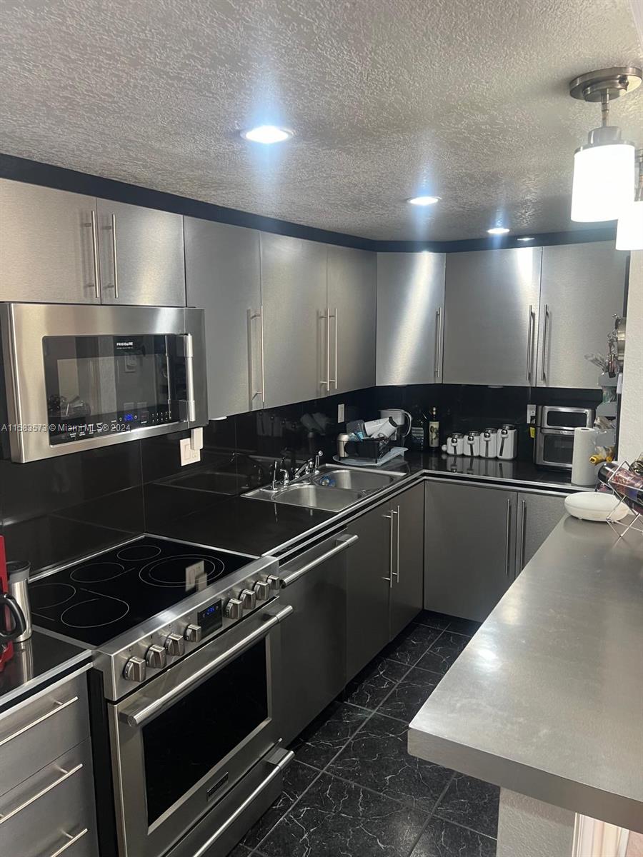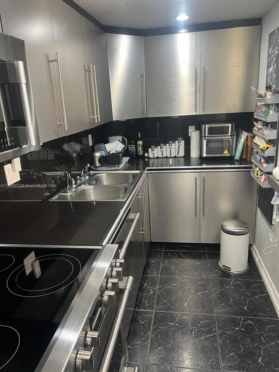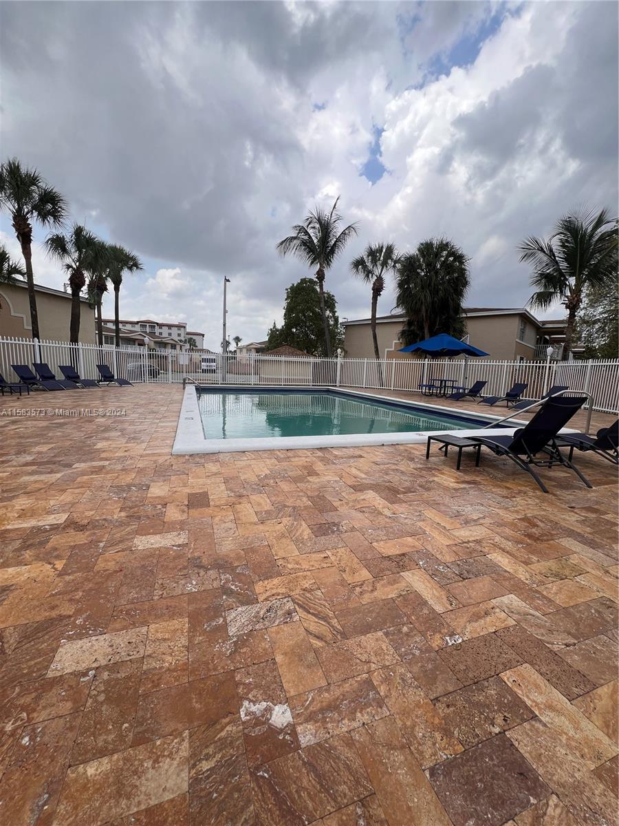 Doral Gardens. The unit features Ceramic title floors, crown moldings, modern colored walls, open floor plan, Kitchen with recessed lighting, pantry, granite counter tops & stains steel appliances, spacious bedrooms & remodeled bathrooms with shower & vessel sink, Large fenced patio with lots of privacy. This is a gated community with guard, gate with card/ fob access for residents, community pool & 24 hours security patrol. Great location, near downtown Doral, Dolphin Mall, International Mall and Airport. Just a short walk to Doral City Place. Easy to highways, shopping and ranked A Doral Schools take advantage of this fantastic opportunity ! Come, Show & Sell !!