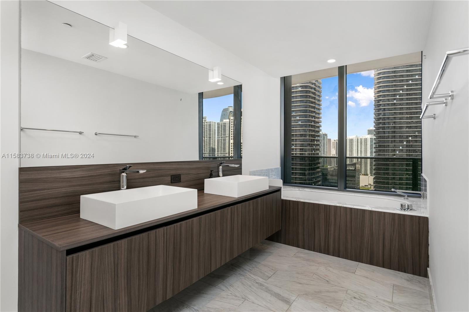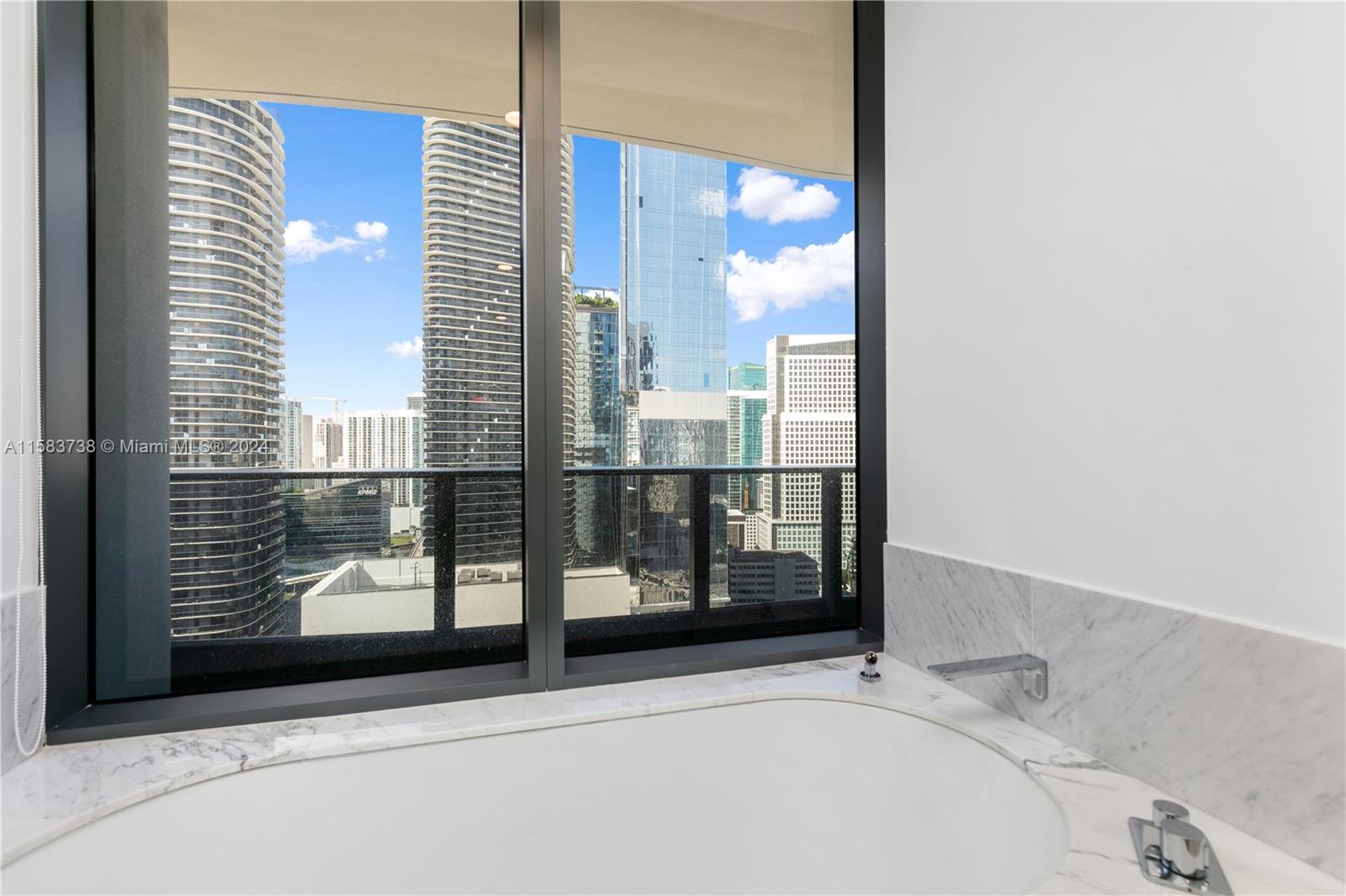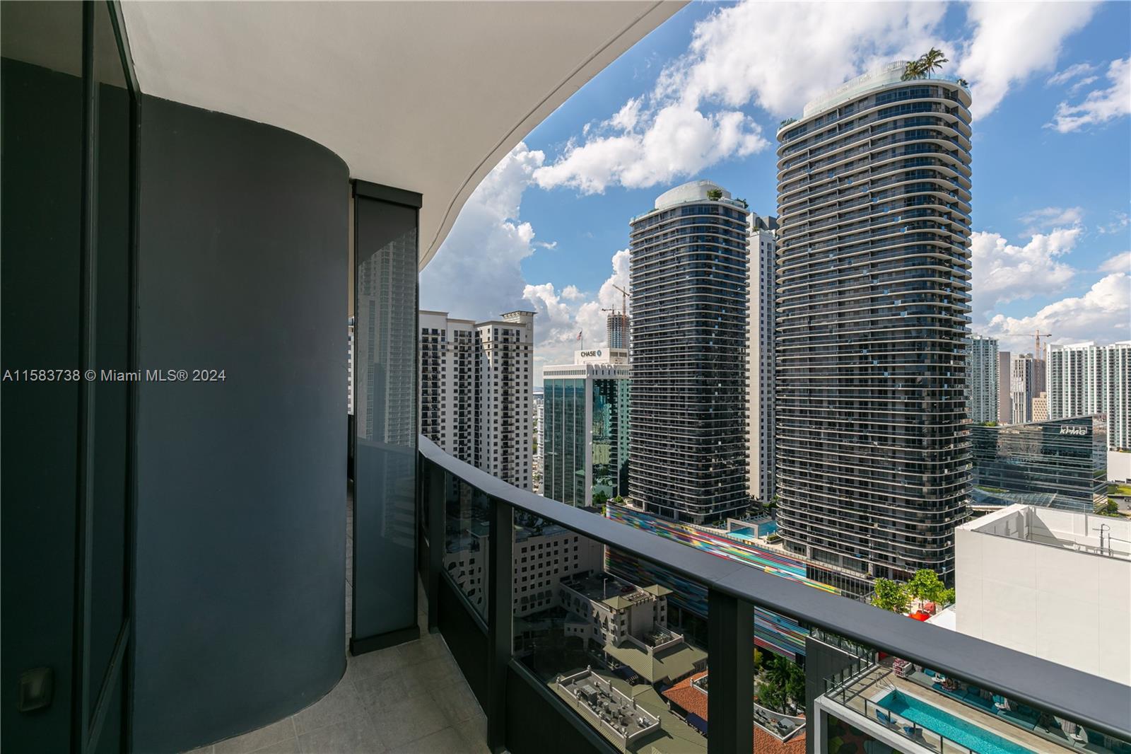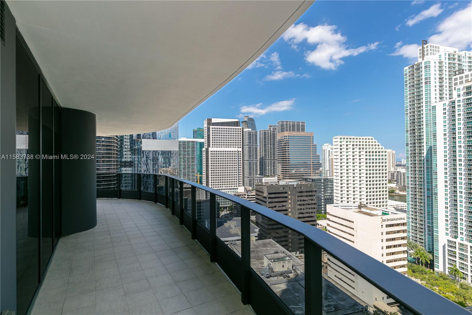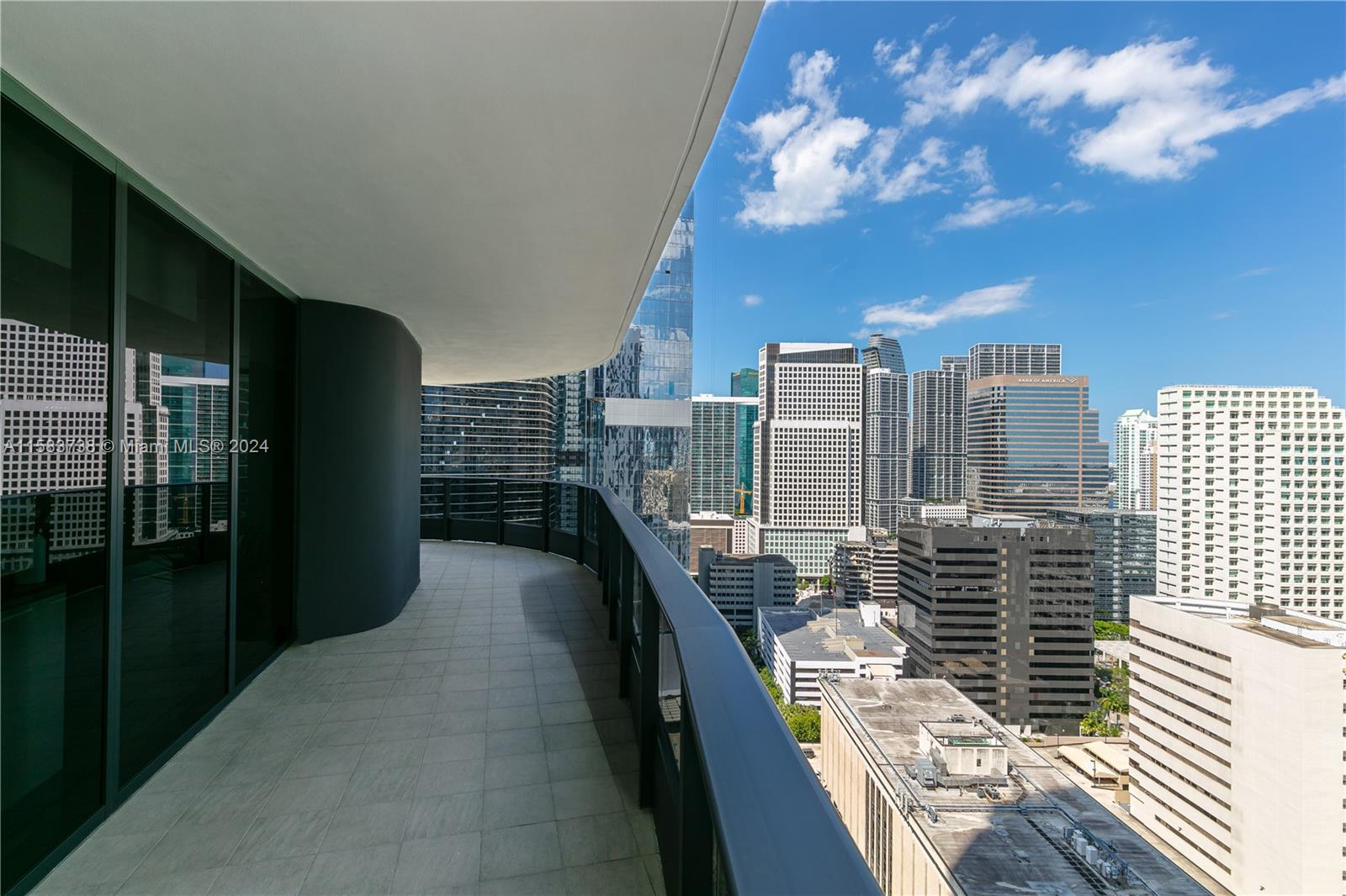 Experience unparalleled vistas in this corner unit at Brickell Flatiron. This 2-bed, 2.5-bath unit with a den offers luxury via Miele appliances, Italian doors, and glass showers. The 9-foot ceilings add spaciousness, complemented by a wraparound terrace. Enjoy the 64th-floor Sky Pool, fitness center, and spa. Located in vibrant Brickell, you're steps from fine dining and shopping, with easy access to Miami Airport.