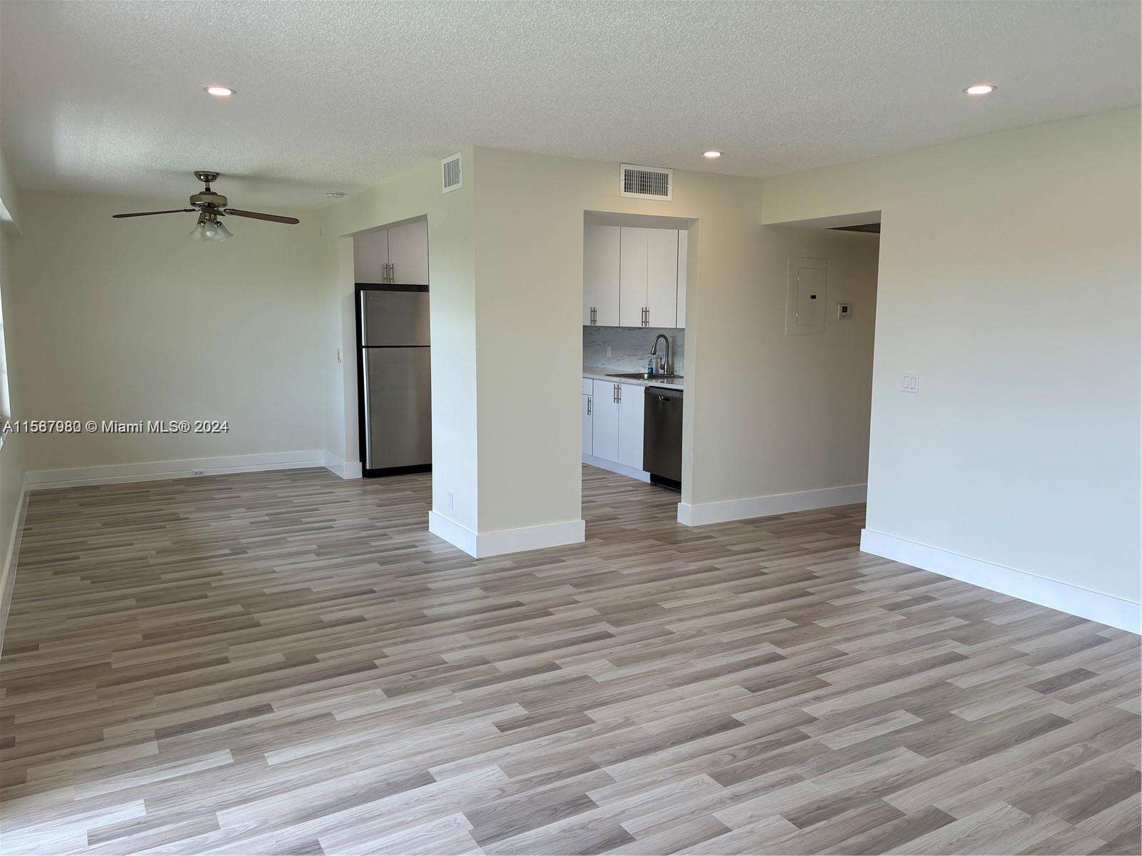 **Seller motivated**Beautifully renovated condo centrally located in Pembroke Pines. This 1/1 open concept with almost 1000 sq ft and extended balcony features brand new bathroom and brand-new kitchen with SS appliances. New laminate flooring has just been installed throughout. Condo has tons of natural light and gorgeous views of the golf course and lake. This 4th floor unit is only steps from the elevator and washer & dryer area. Also comes with individual storage room. The condo allows for 2 occupants, one must be 55+ years old second person 18+. One assigned parking space plus additional guest parking available. The community offers many amenities, gyms, pools, tennis, movie theatre, golf, transportation and much more. HOA fees also include water, cable and wi-fi.
