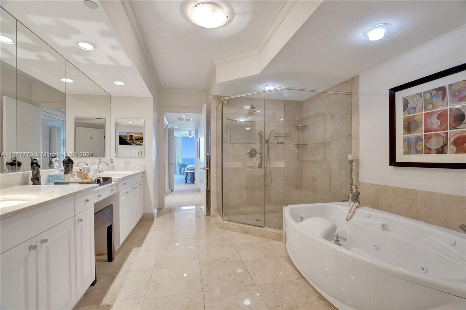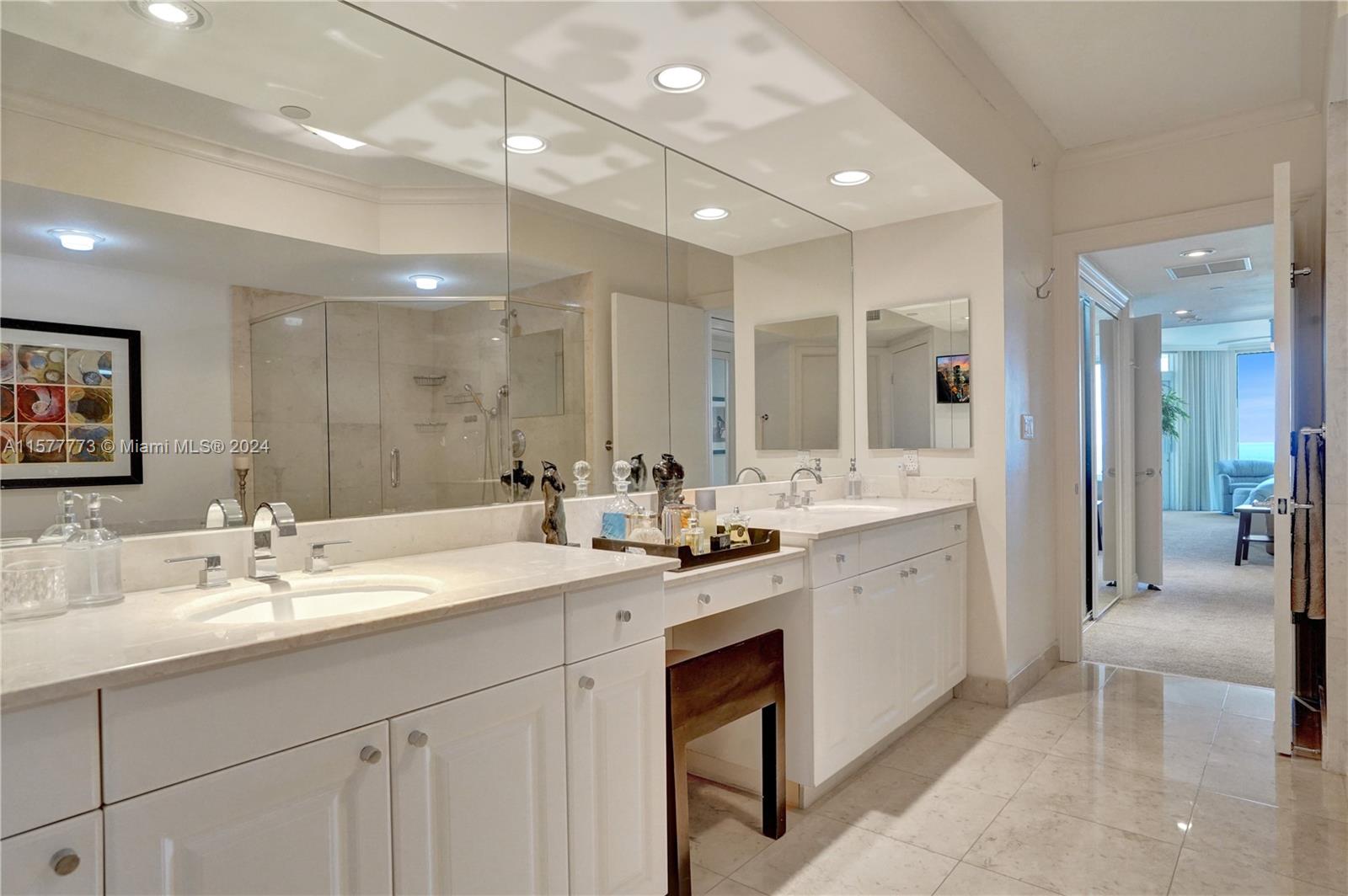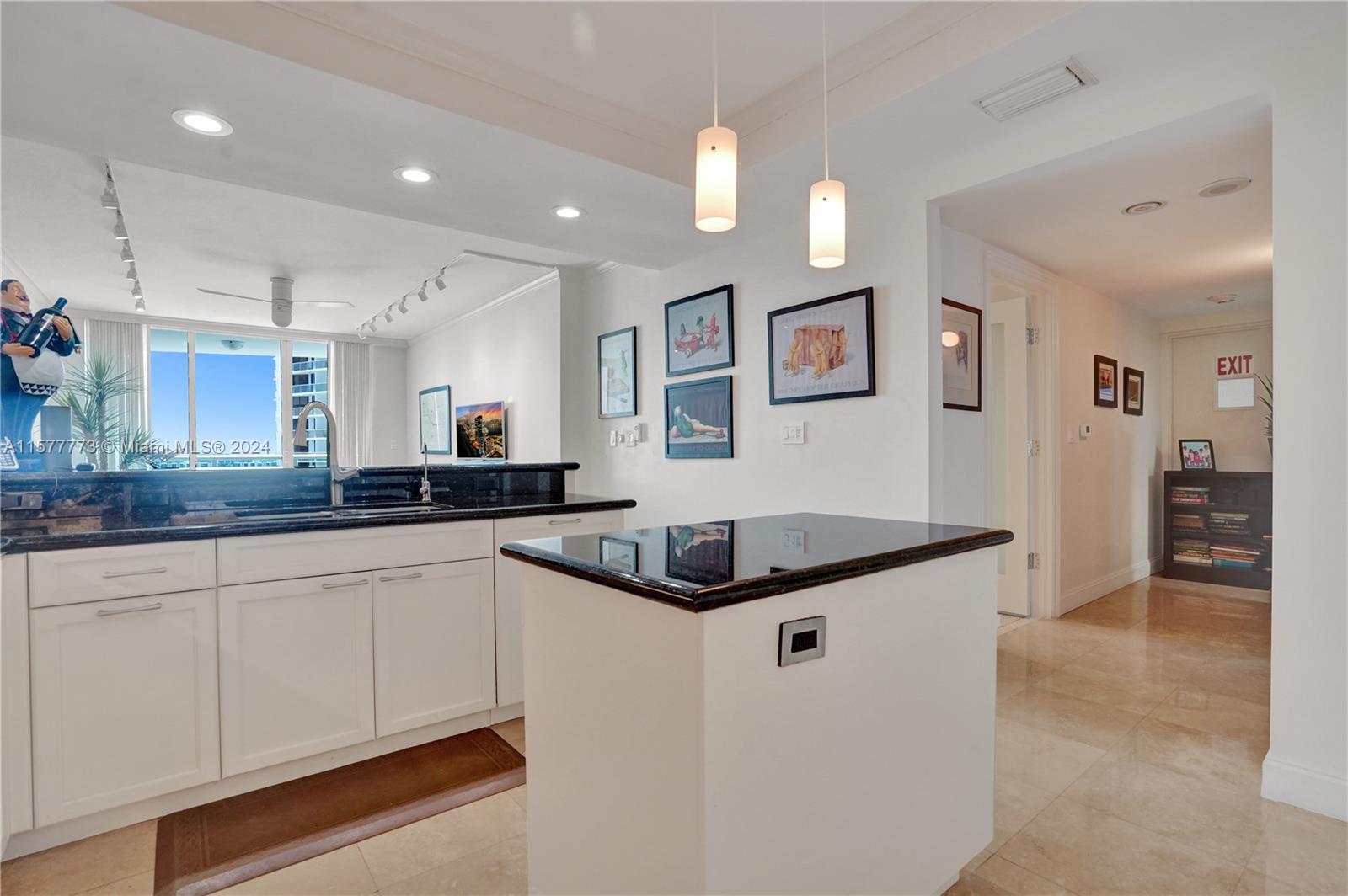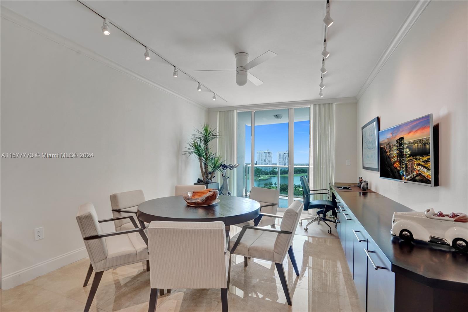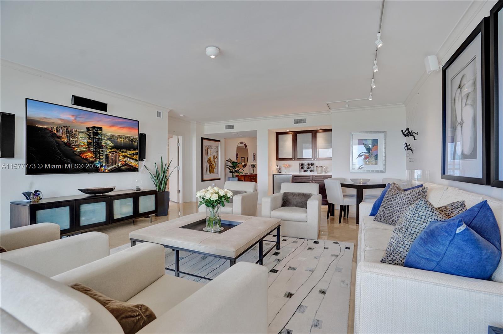 Elegant, bright and light filled, this magnificent unit has direct unobstructed ocean views from the east and Turnberry golf course from the west balconies. Used only as a second home. Two bedrooms plus den, 2 bedroom plus den, third bedroom or office, 3 full baths. Marble floors. Huge walk-in closets. Large laundry room. Private elevator. Infinity pool, movie theatre, BBQ area, tennis courts, on site restaurant that delivers, Internet cafe, kids’ room. Hamptons South is in the heart of Aventura, just minutes to the beach, 3.5-mile walking and biking trail, restaurants, shopping, major highways and excellent schools!