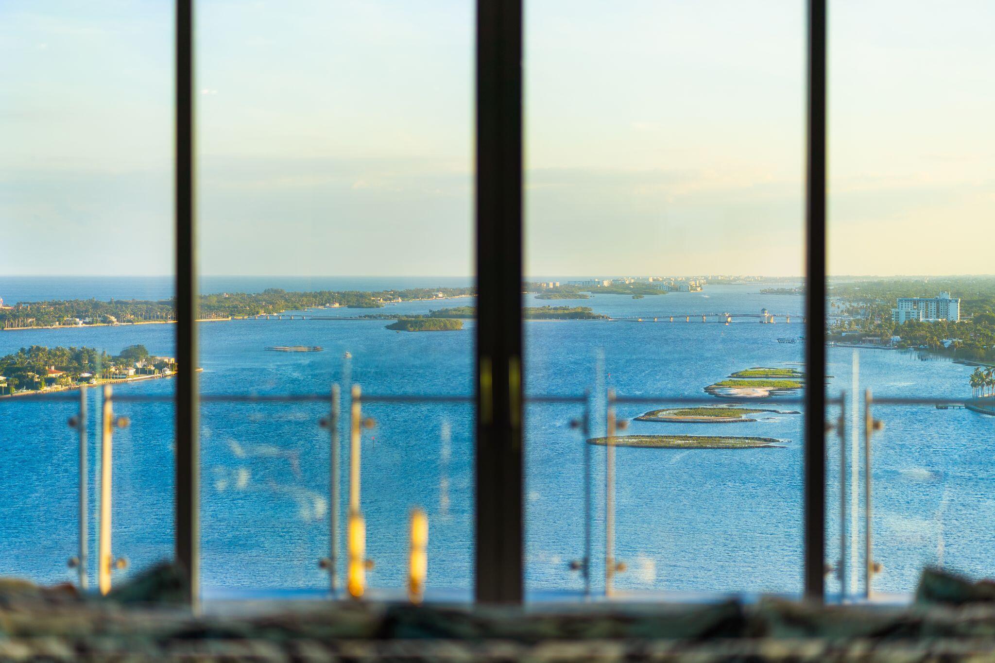 There is luxury and then there is unit 2203 at the Bristol. The attention to detail is unmatched- from the interior-designer owner's custom floor plan to elegant wallcoverings, top quality light fixtures and honed Italian marble floors. Even the closets are leather-lined beauties from Ornare. From your 22fl perch, Palm Beach island lies at your feet, with long views of the rolling Atlantic, the Intracoastal stretching away to the south and Kodachrome-ready sunsets to the west. With 7,100 of indoor and outdoor sqft wrapping around the entire south end of the building, the layout features a primary suite with his/her baths and closets and a sitting room/office. A spectacular fitness center, lap pool, his and hers spas and a concierge are just some of the Bristol's over-the-top amenities
