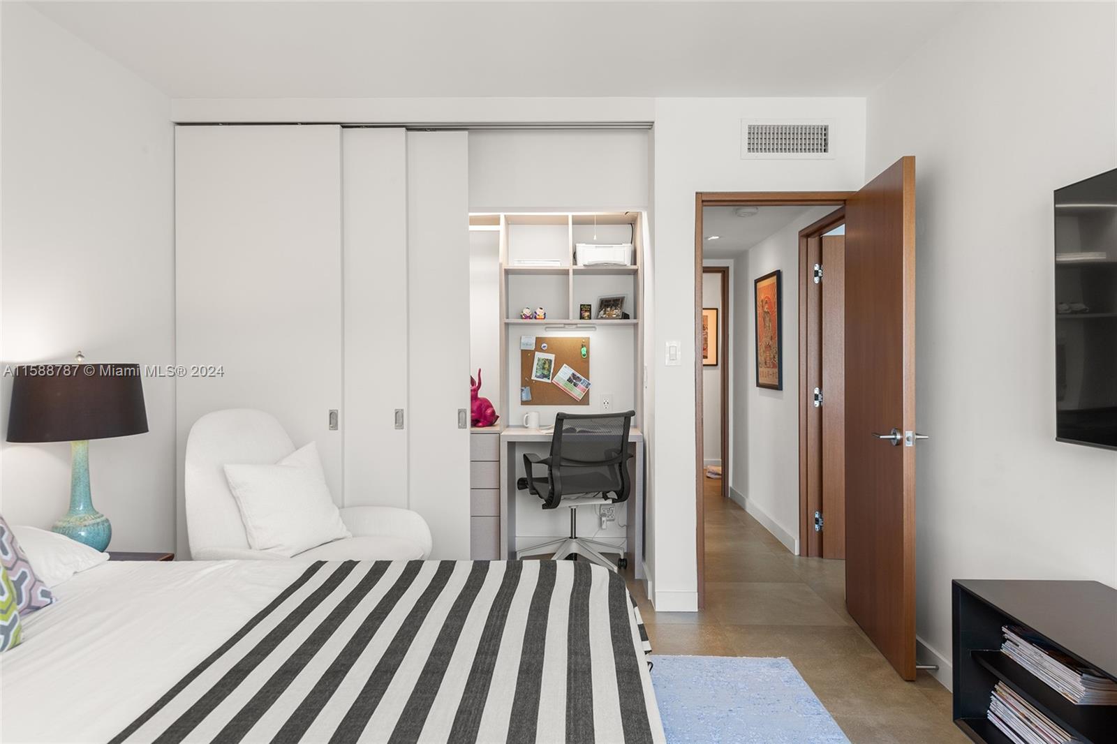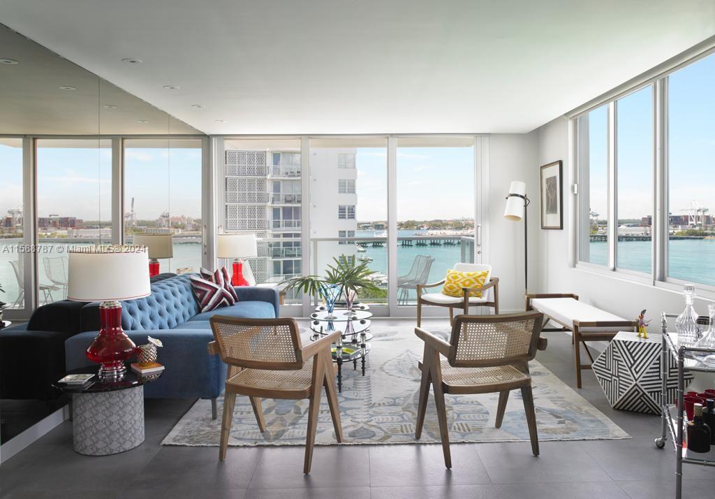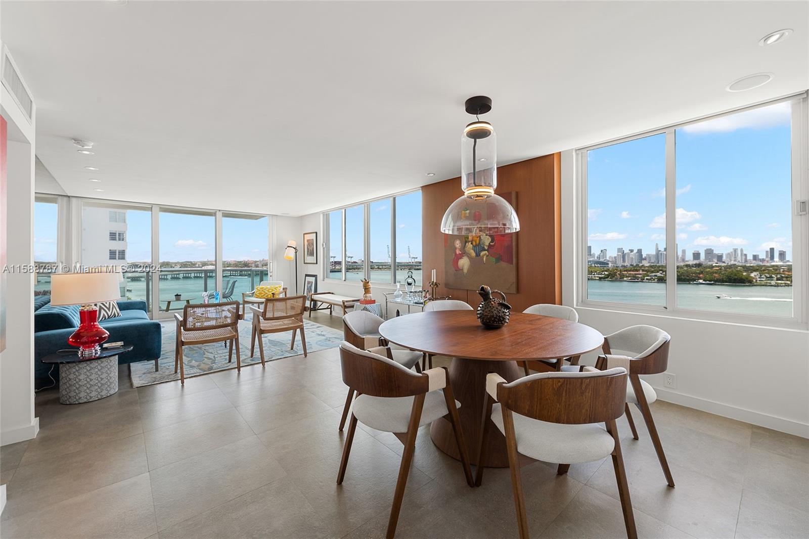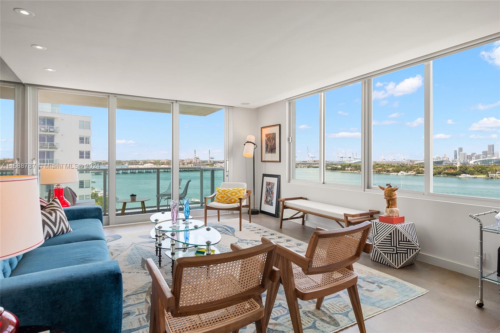 A stunning renovation with Bay and city views that are some of the best in Miami Beach. Tastefully designed and featured in Modern Luxury Interiors magazine, this light filled corner residence boasts timeless dark terrazzo tile floors, custom kitchen and baths, custom millwork and doors throughout. Impact windows/doors, custom blinds and integrated sound system complete this turn key unit. The Mirador is a full service building offering newly remodeled bay front pool and jacuzzi, lobby with front desk, valet and fitness center. The unit includes one deeded covered parking space. Special assessment has been fully paid by the seller and the association has reserves.
