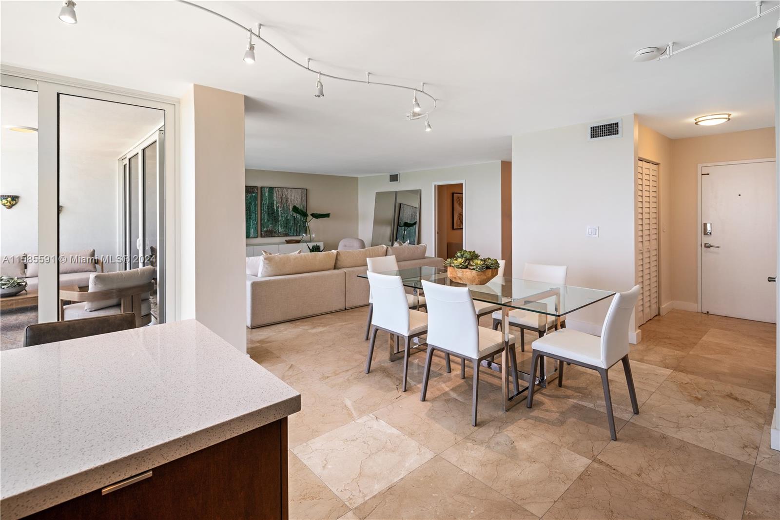 Want to feel like you are on a never-ending vacation? Look no further than the 18th floor of Casa Del Mar on Key Biscayne. Endless ocean views will captivate you from this stellar unit. Sit on your balcony to soak in the sea breeze & turquoise waters. Inside, the remodeled kitchen is open & spacious with a movable island to handle prep, buffet-style dinner, or breakfast du jour. With impact doors/windows & newly polished marble floors, this 2 bedrm unit also has an additional bonus room/office. Semiprivate elevator entrance & a private storage room add to the appeal. Casa del Mar has gated entry, ample parking, tennis & basketball courts, pool, private beach access, & gym, so you can live in island paradise, where safety, privacy, & tropical living is the way of life. A Very Special Home