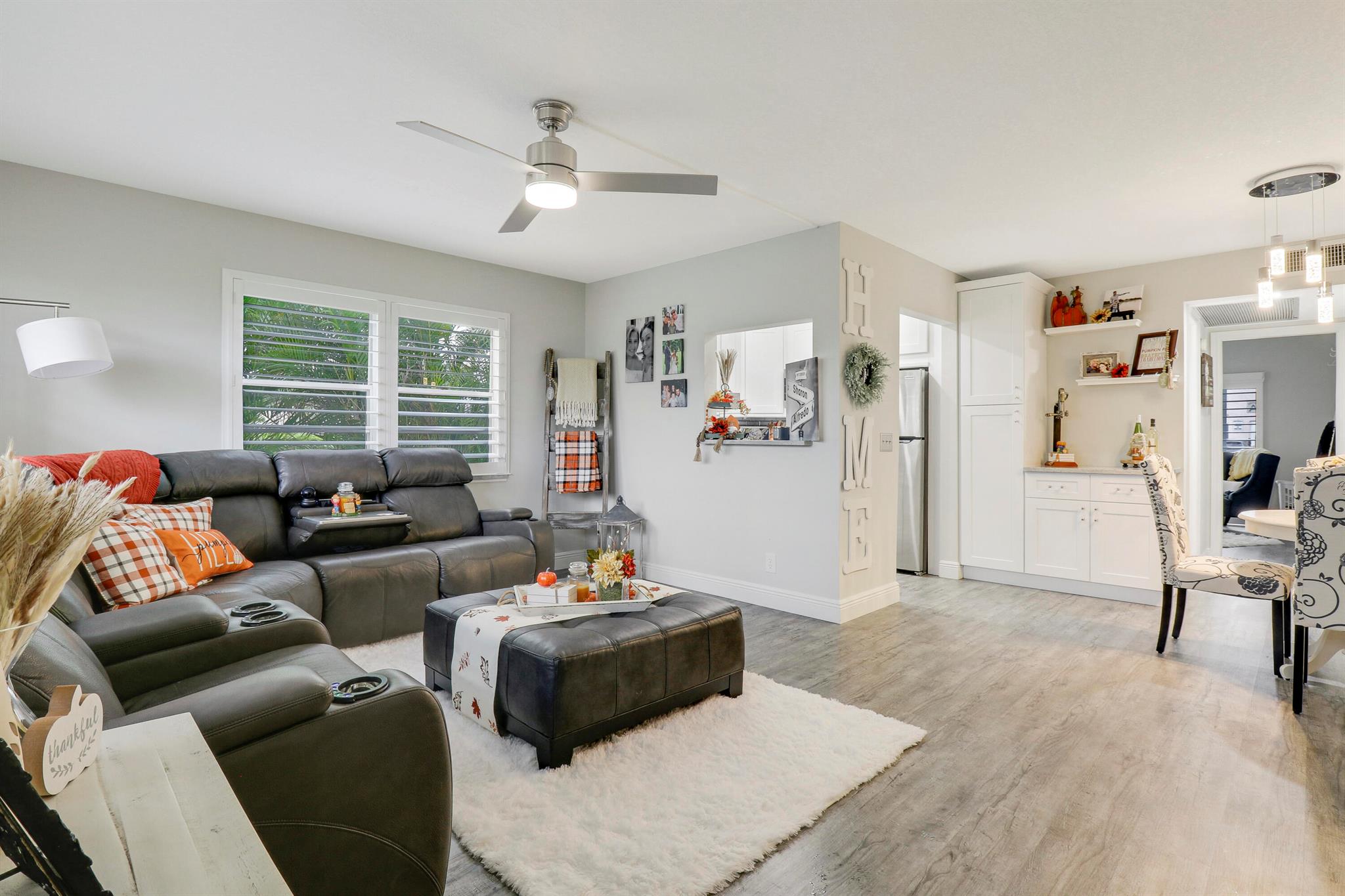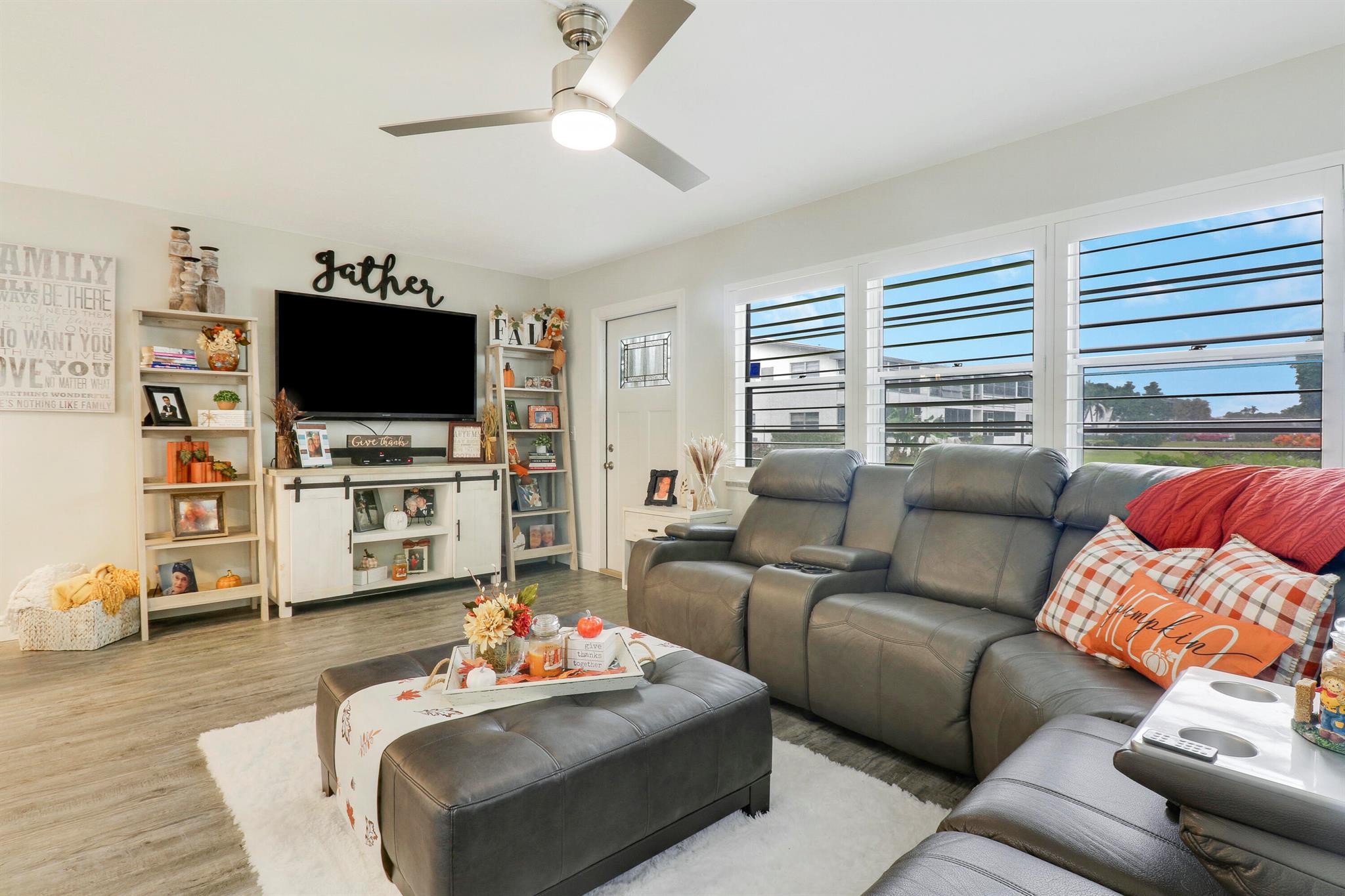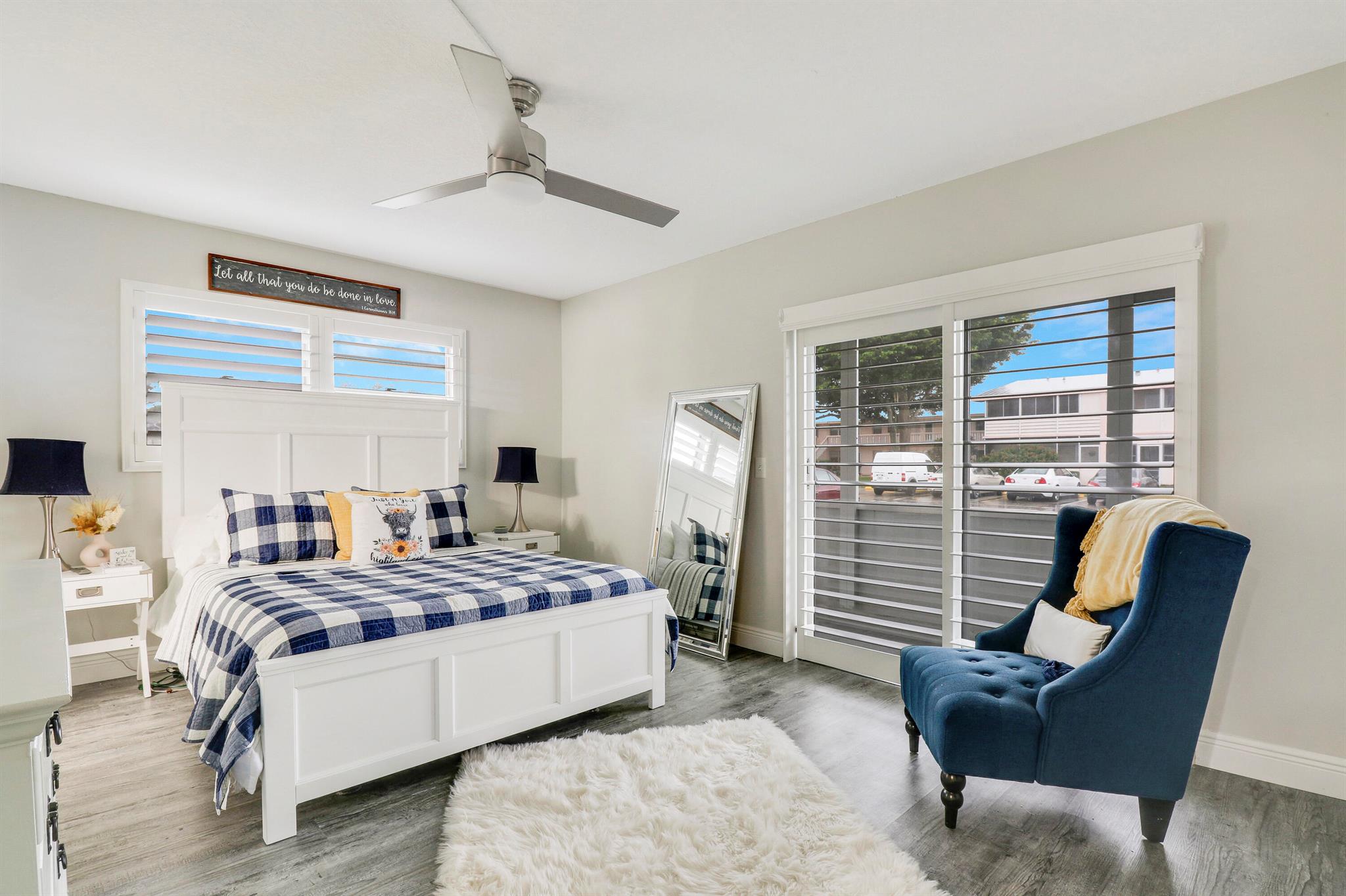 Fully updated! 1 bed, 1.5 bath ground floor corner unit. All new stainless steel kitchen appliances, luxury vinyl plank flooring throughout, updated baths with designer accents, brand new A/C and handler, elegant kitchen cabinets with soft close hardware, beautiful marble countertops and backsplash. Lovely plantation shutters throughout and luxurious California closets. Building has new metal roof and aluminum handrails. Highly desirable 55 plus community with tons of amenities and activities. Close to downtown West Palm Beach, Palm Beach International airport, fine dining and shopping and beautiful beaches. Seller is relocating! ALL offers considered!!