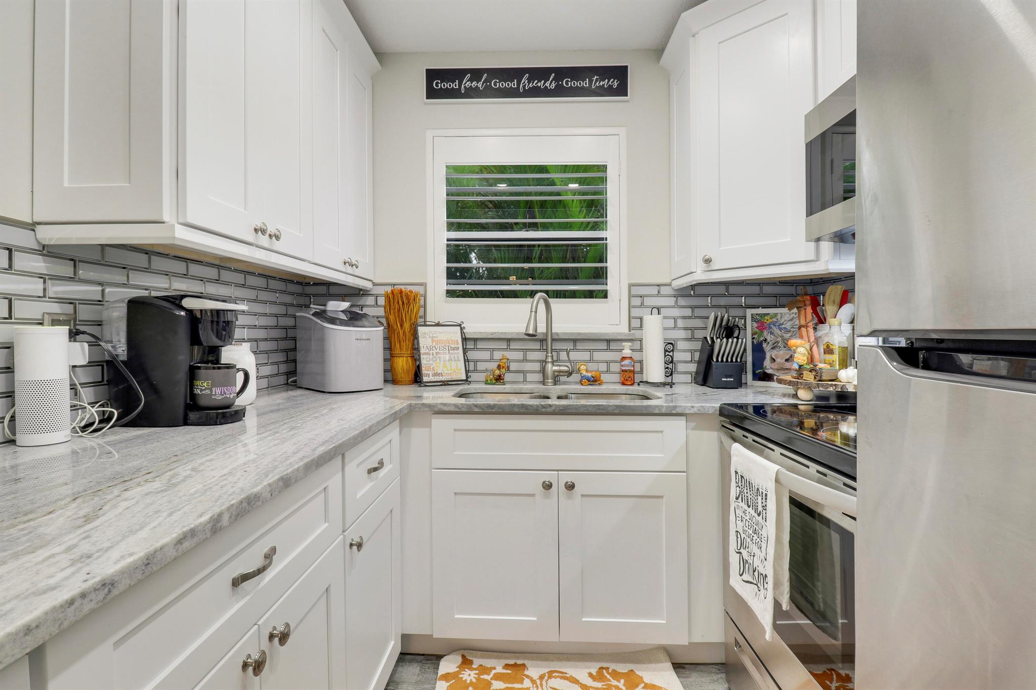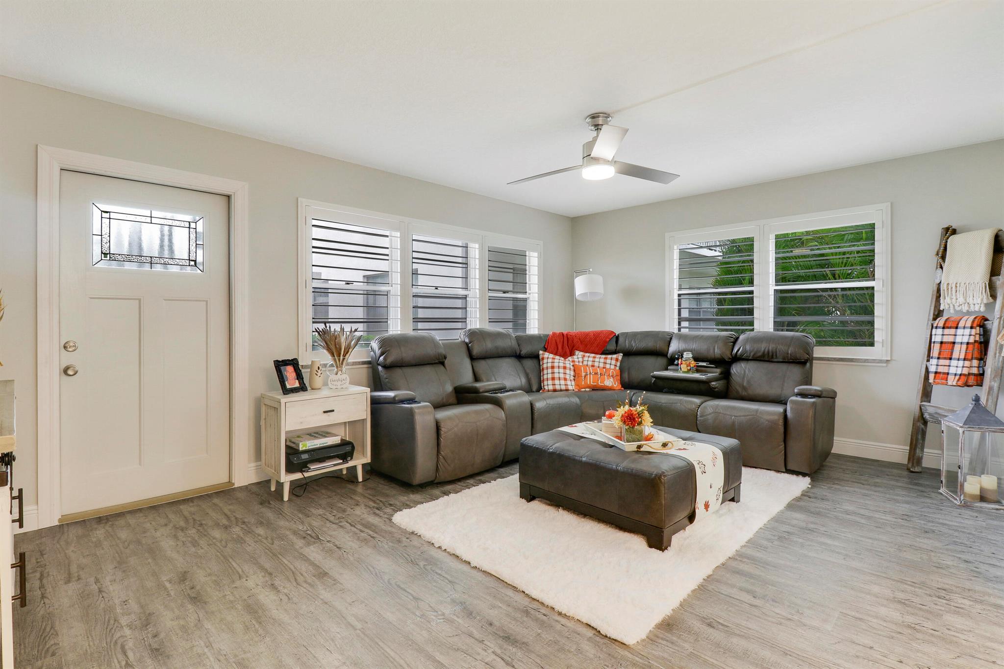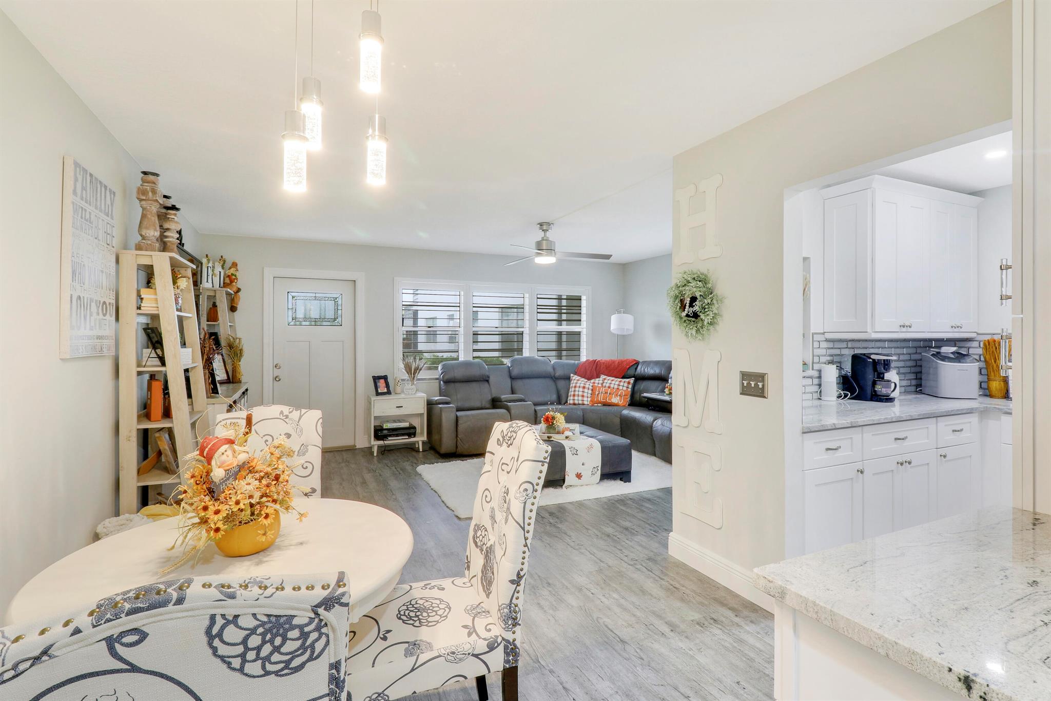 Fully updated! 1 bed, 1.5 bath ground floor corner unit. All new stainless steel kitchen appliances, luxury vinyl plank flooring throughout, updated baths with designer accents, brand new A/C and handler, elegant kitchen cabinets with soft close hardware, beautiful marble countertops and backsplash. Lovely plantation shutters throughout and luxurious California closets. Building has new metal roof and aluminum handrails. Highly desirable 55 plus community with tons of amenities and activities. Close to downtown West Palm Beach, Palm Beach International airport, fine dining and shopping and beautiful beaches. Seller is relocating! ALL offers considered!!