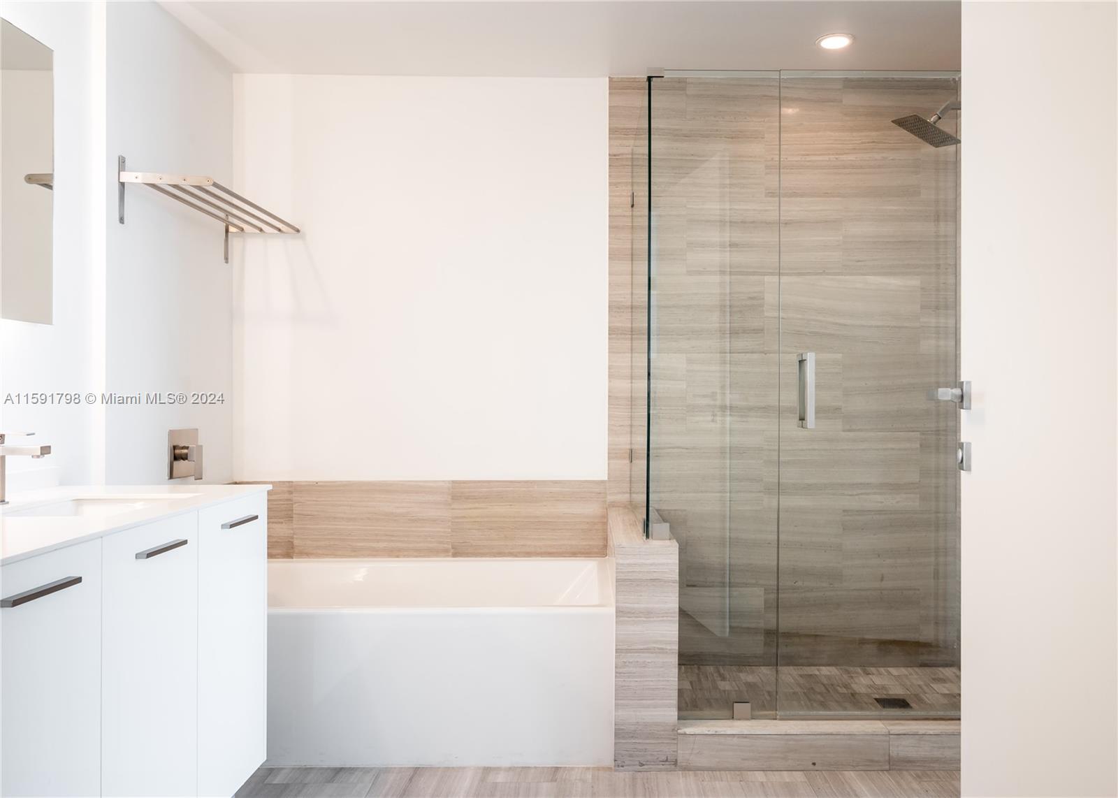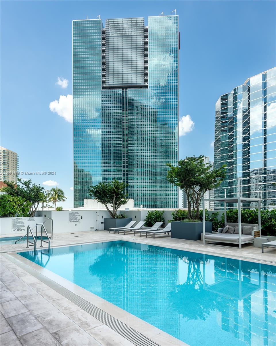 Direct water views from desired 1/1 unit, facing directly east, in pristine condition. Porcelain floors throughout, modern window coverings, built-in closets, marble bath with shower & tub, stainless steel appliances, washer & dryer in unit. 1 parking space included. Full service building with gorgeous amenities that include rooftop pool, jacuzzi, state of the art gym, sauna, steam, BBQ, theater room, owners lounge and management on site. Walking distance to restaurants, cafes, movies, metro mover, shopping center.