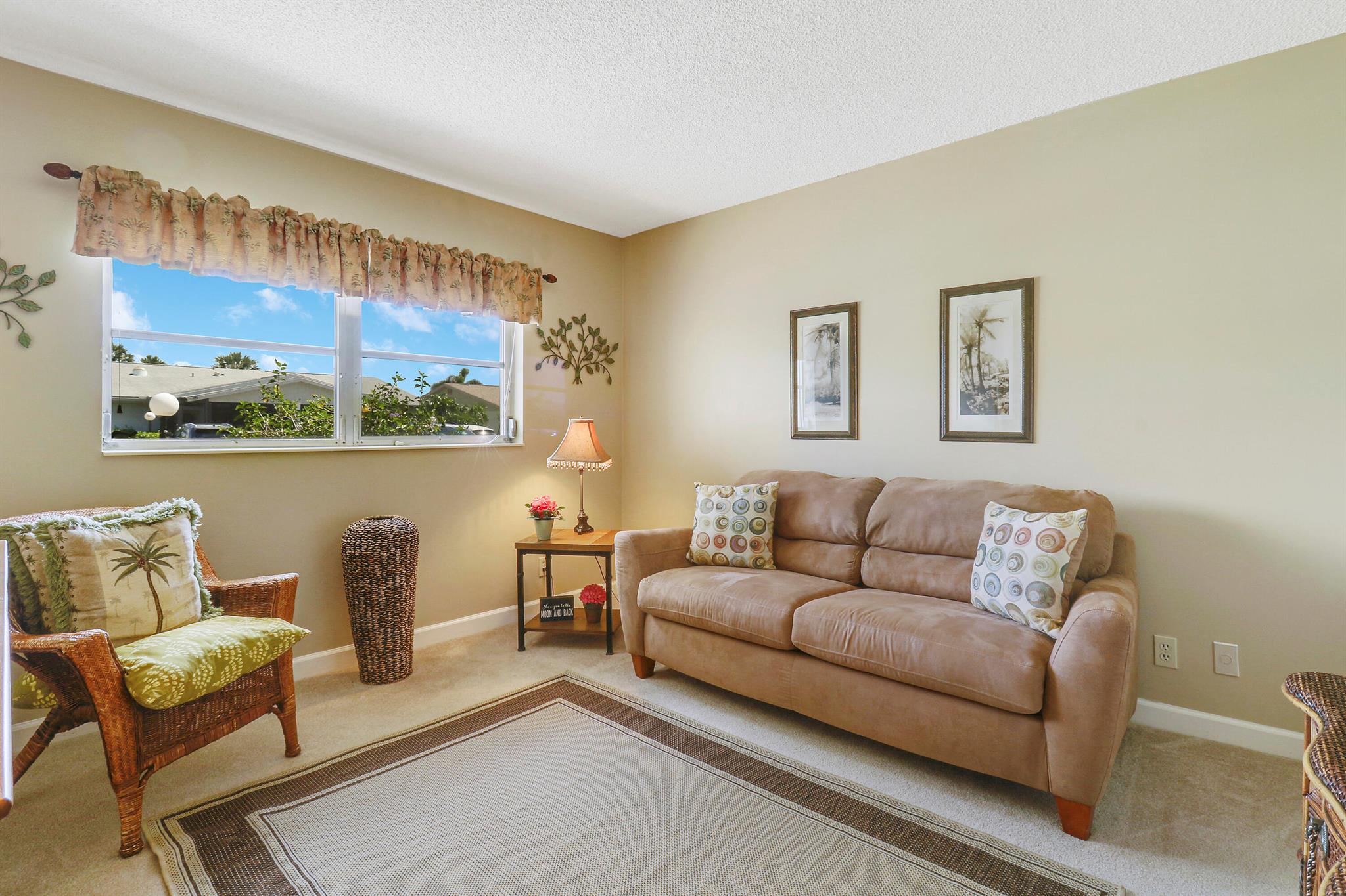 Cypress Lakes is a Vibrant Community offering resort style living for 55+. This charming corner unit is meticulously maintained bathed in natural light offering an open floor plan with sliders opening to a inviting screened patio. Stepping into this unit feels like entering a cozy home with newer appliances, stunning tile floors and split bedroom plan. Cypress Lakes is an active gated community complimented by an 18 hole golf course (free), pickle ball court, tennis courts, mini golf, gym, refreshing pool and much more.. Brand new roof scheduled to be installed at owners expense. Close to shopping, I95 and PBI Airport. See yourself living in this outstanding community. Furniture negotiable.