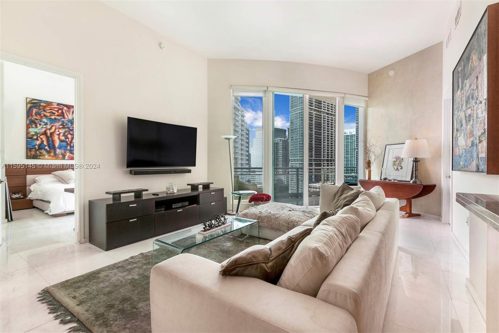 Asia is Brickell Key's premier building with only 123 units. Spectacular water and city views from this private island setting in the center of Miami. Unit has soaring 12 ft ceiling, private elevator, top-of-the-line kitchen and baths, with private storage on same floor as unit. Great floor plan with marble floors, open concept kitchen and 2 parking spaces (TANDEM). Amenities includeTennis and racquetball courts, fitness center, resistance pool, sauna, jacuzzi, valet for guest and pool. Easy to show.