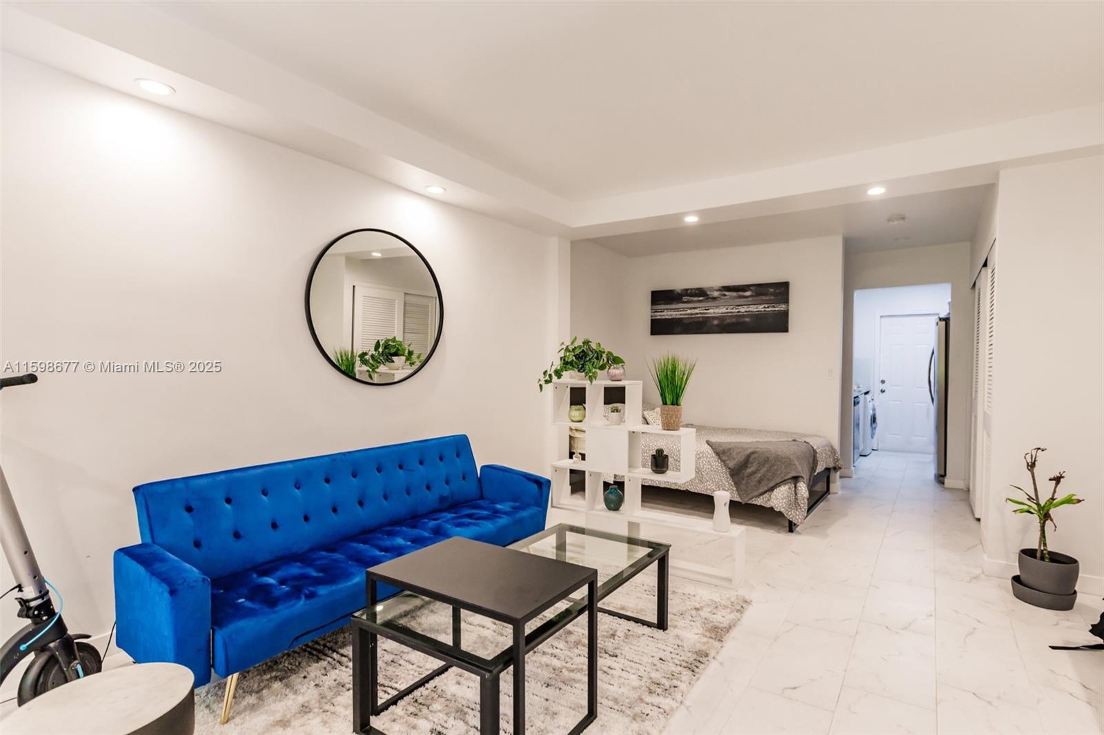 This charming 2-story Miami Modern building located in the Flamingo Park Historic District was designed by renowned architect T. Hunter Henderson. This Studio condominium has been meticulously renovated and has a light, open feel with new porcelain tile throughout. The lighting is composed of EPA certified LED lighting throughout the condominium. The built-in storage closets give plenty of options to be able to store all of your belongings. The living area gets a lot of natural light since the front of the condo faces north. It is great to wake up to the sun rise and be able to walk a few blocks to the beach, get in some yoga and start your day. Or take a stroll through 36 acre Flamingo Park that is located a street over. Building has 40yr cert, New roof, New paint