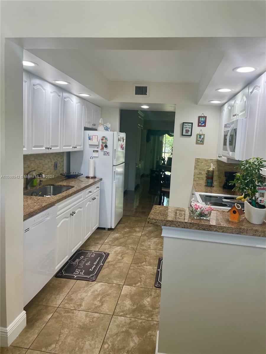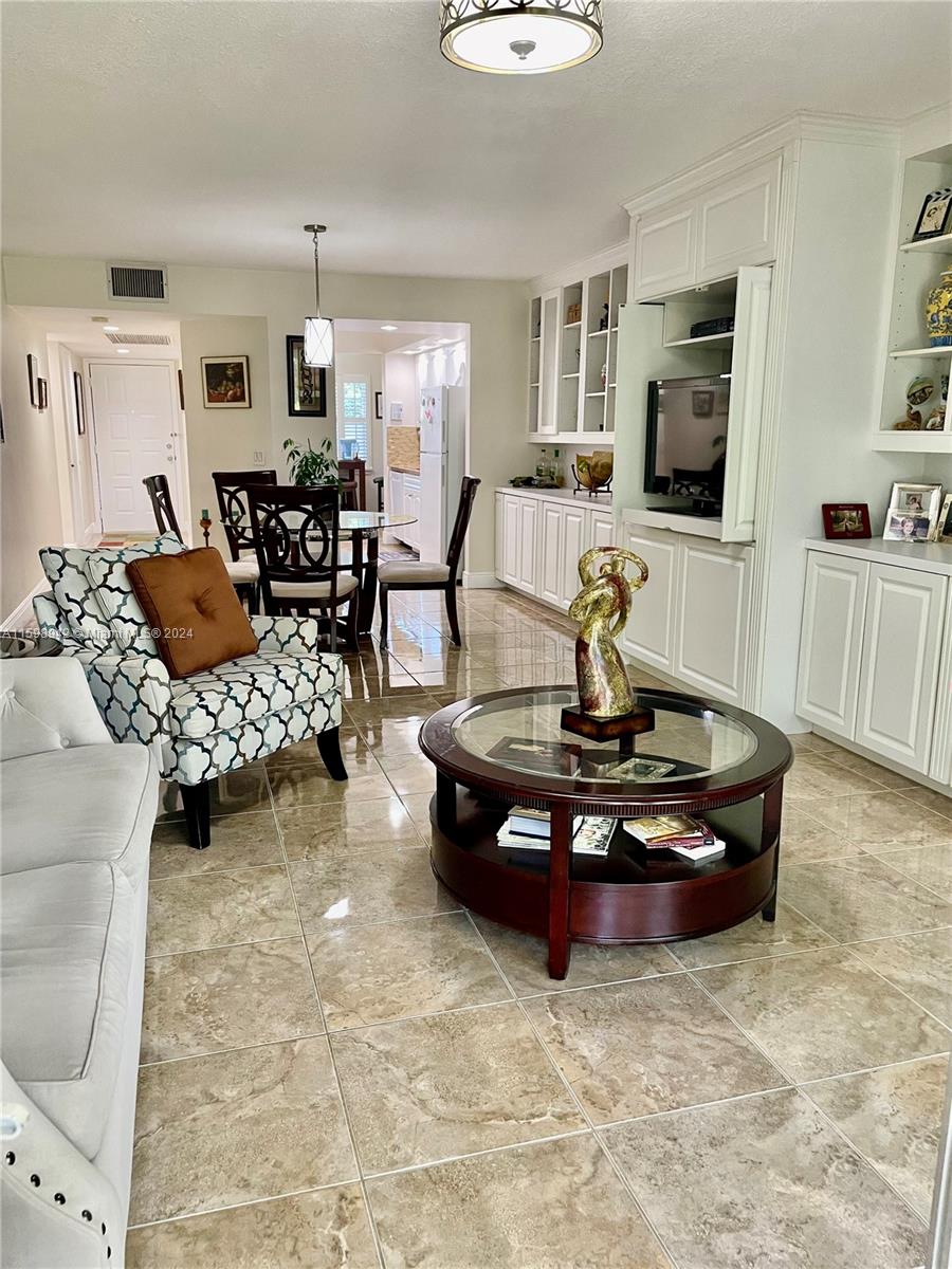 IMPECABLE & UPDATED 2/2 WITH BALCONY OVERLOOKING GOLF COURSE. One of the largest models in much desired Century Village. Bahama shutters in the interior; 2 very spacious bedrooms with ample walk in closets, 2 bathrooms with showers (no tubs).Custom wall cabinetry in dining and living areas provide storage and elegance. Rheem tankless water heater, new washer and dryer in the unit, tiled floors thoughout. White cabinetry with granite counters in kitchen. Balcony faces Flamingo Lakes Golf Course with all its beauty. Accordion storm shutters throughout. An oasis of tranquility and beauty. Century Village Pembroke Pines, amenities are too many to list, multiple pools, pickleball & tennis courts, activities, gyms, theater, dances, etc. Living Room lamp not included in sale. 55+ and 650+ credit