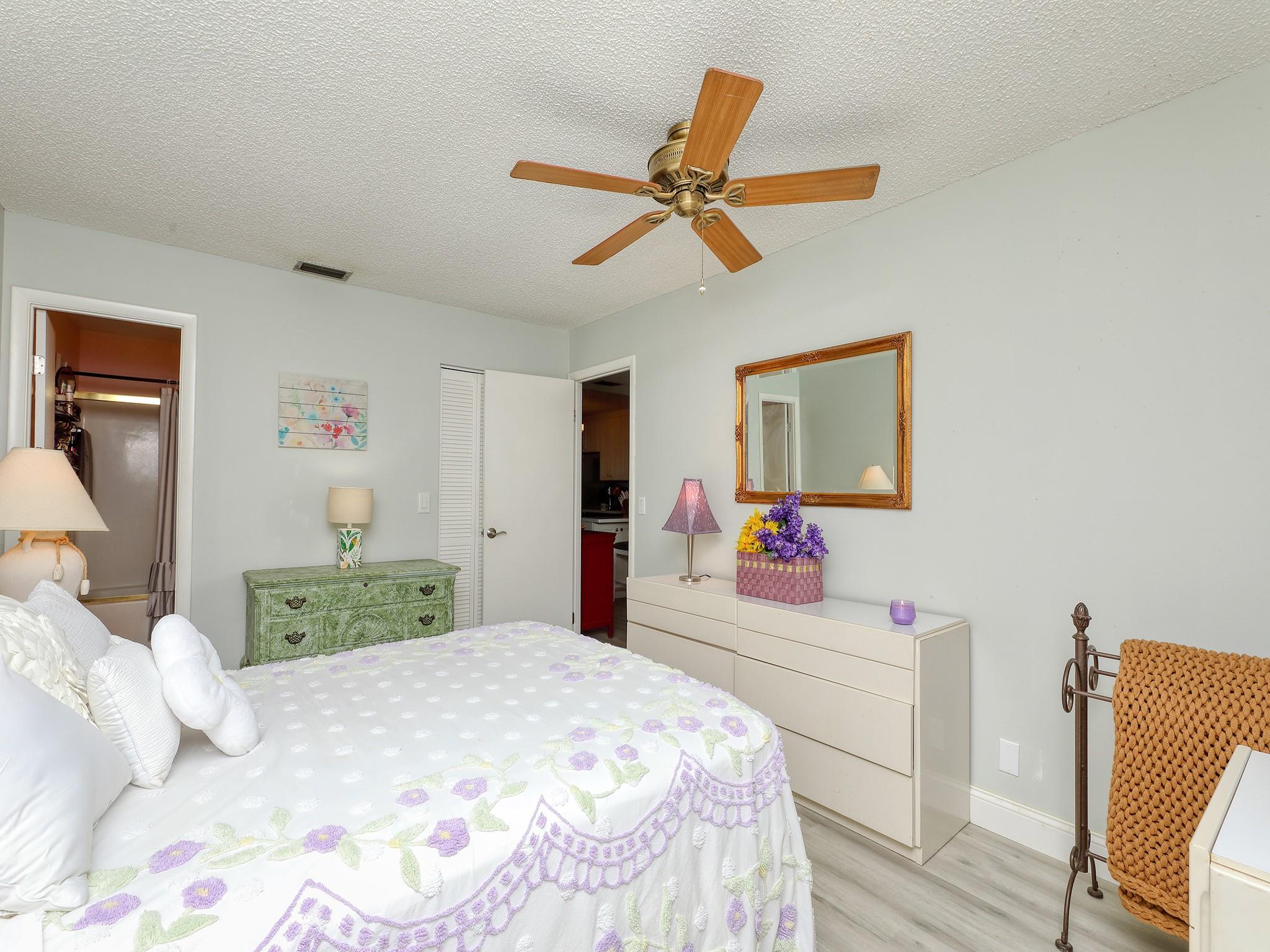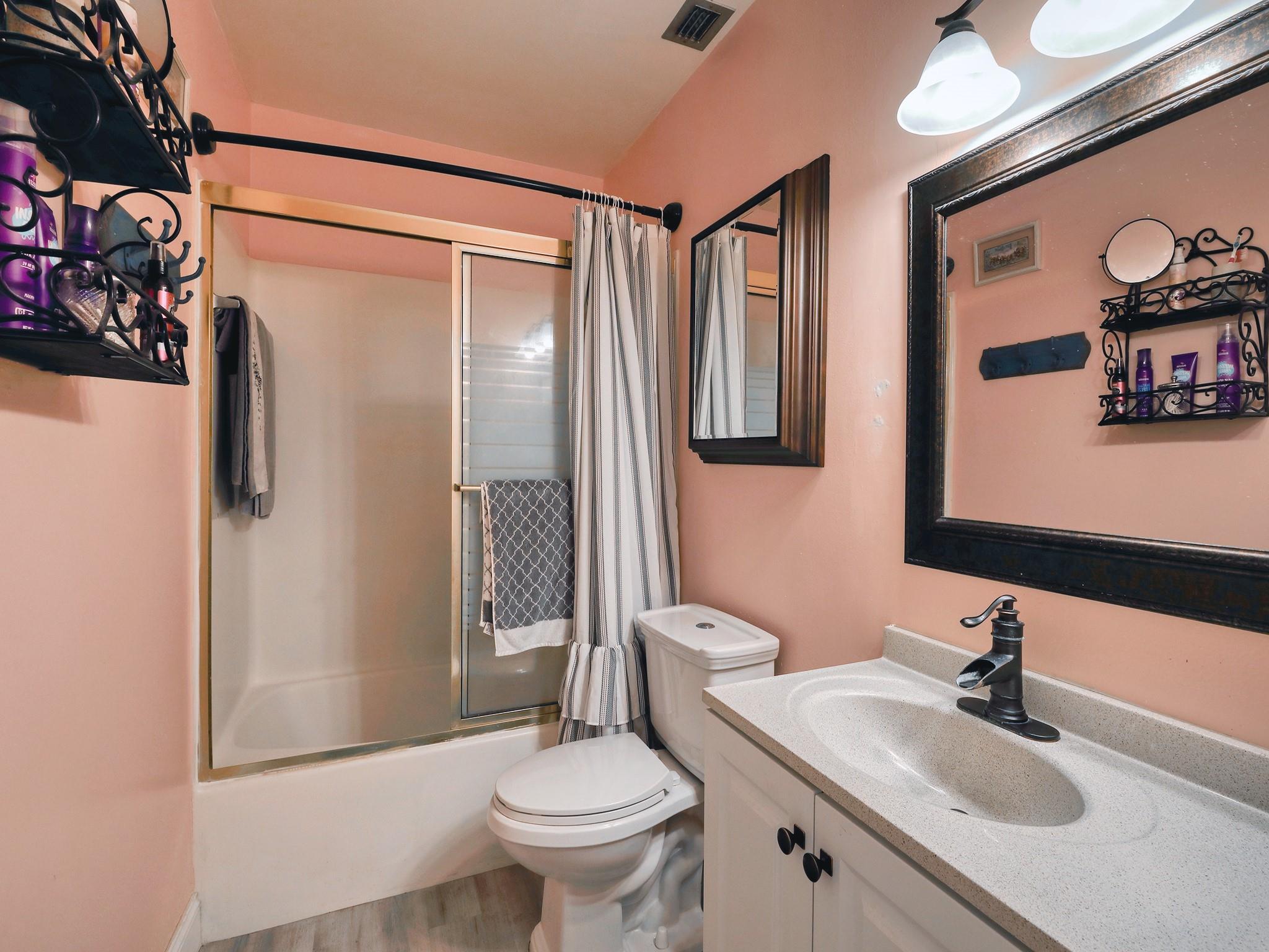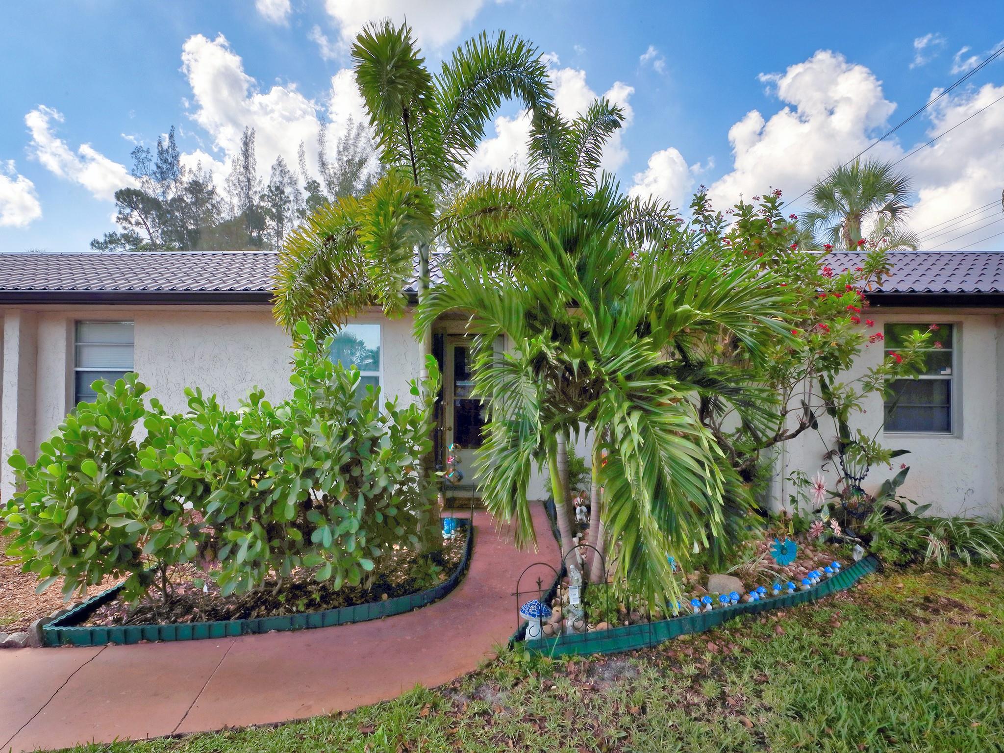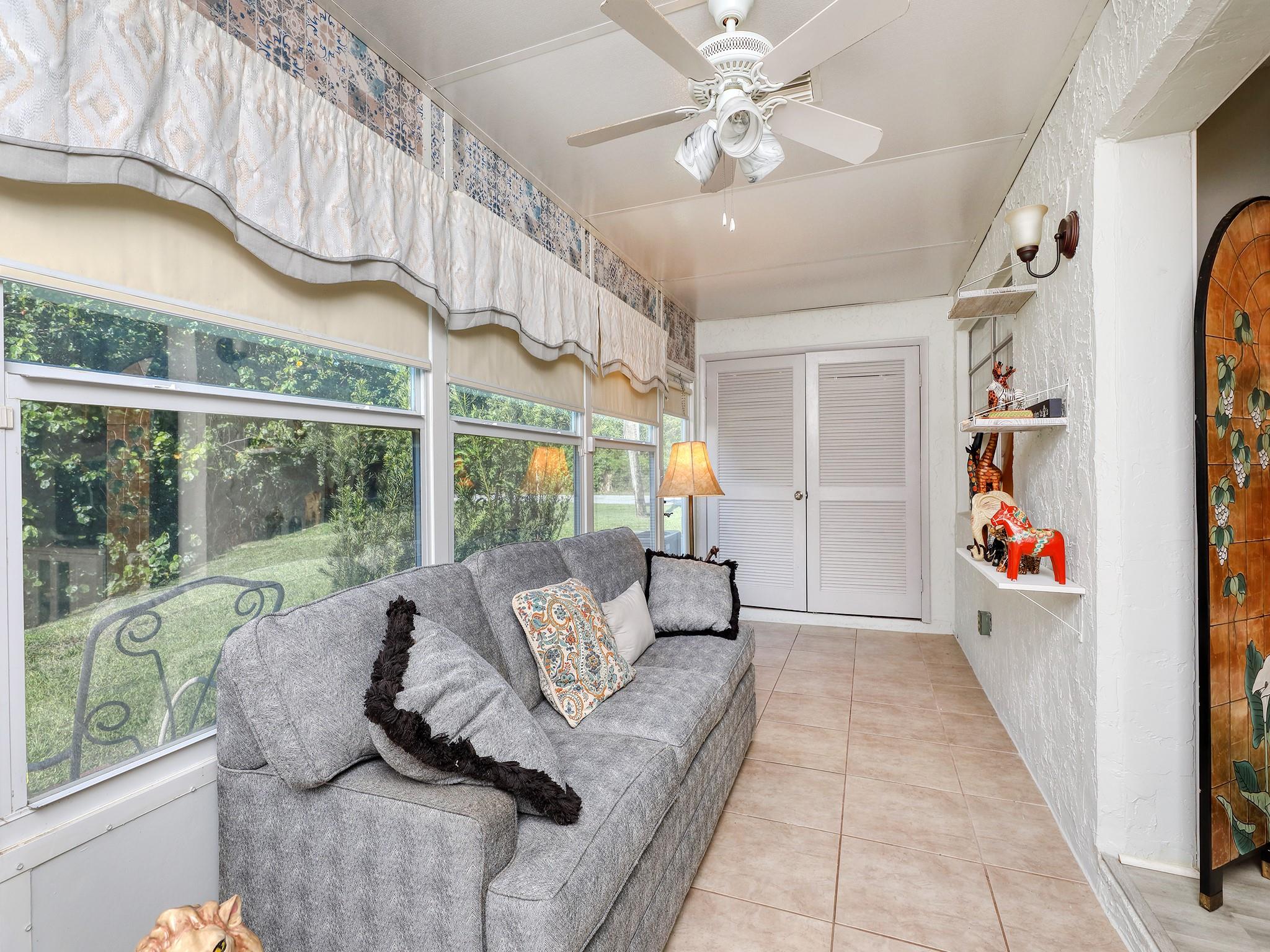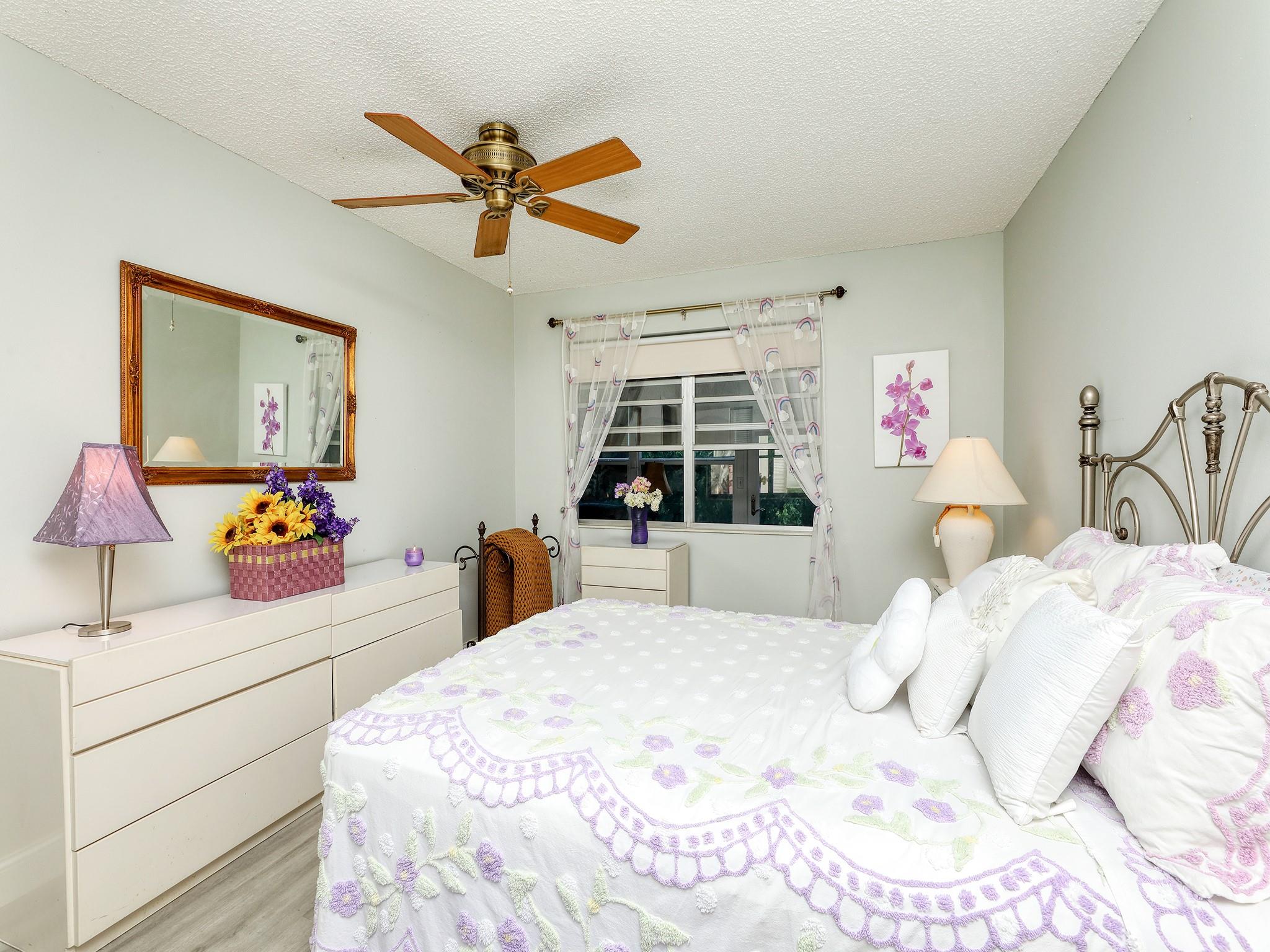 Every once in a while, a property comes on the market that checks ALL the boxes. Meticulously maintained one story villa, completely updated from floors to ceilings. BRAND NEW ROOF (2024), remodeled kitchen with custom wood cabinets, granite counter tops & stainless steel appliances. Kitchen wall opened to dining & living area with extra cabinets. Both bathrooms remodeled & primary bathroom is in suite to the extra large bedroom with walk in closet. Florida room with hurricane impact glass (throughout villa) opens to VERY private back yard with garden & water views. Washer & dryer in unit. This elegant over 55 community accepts pets (up to 30 pounds) & offers the most amazing amenities. Your shaded parking spot is directly in front of your villa. See all the rest then come see the best!
