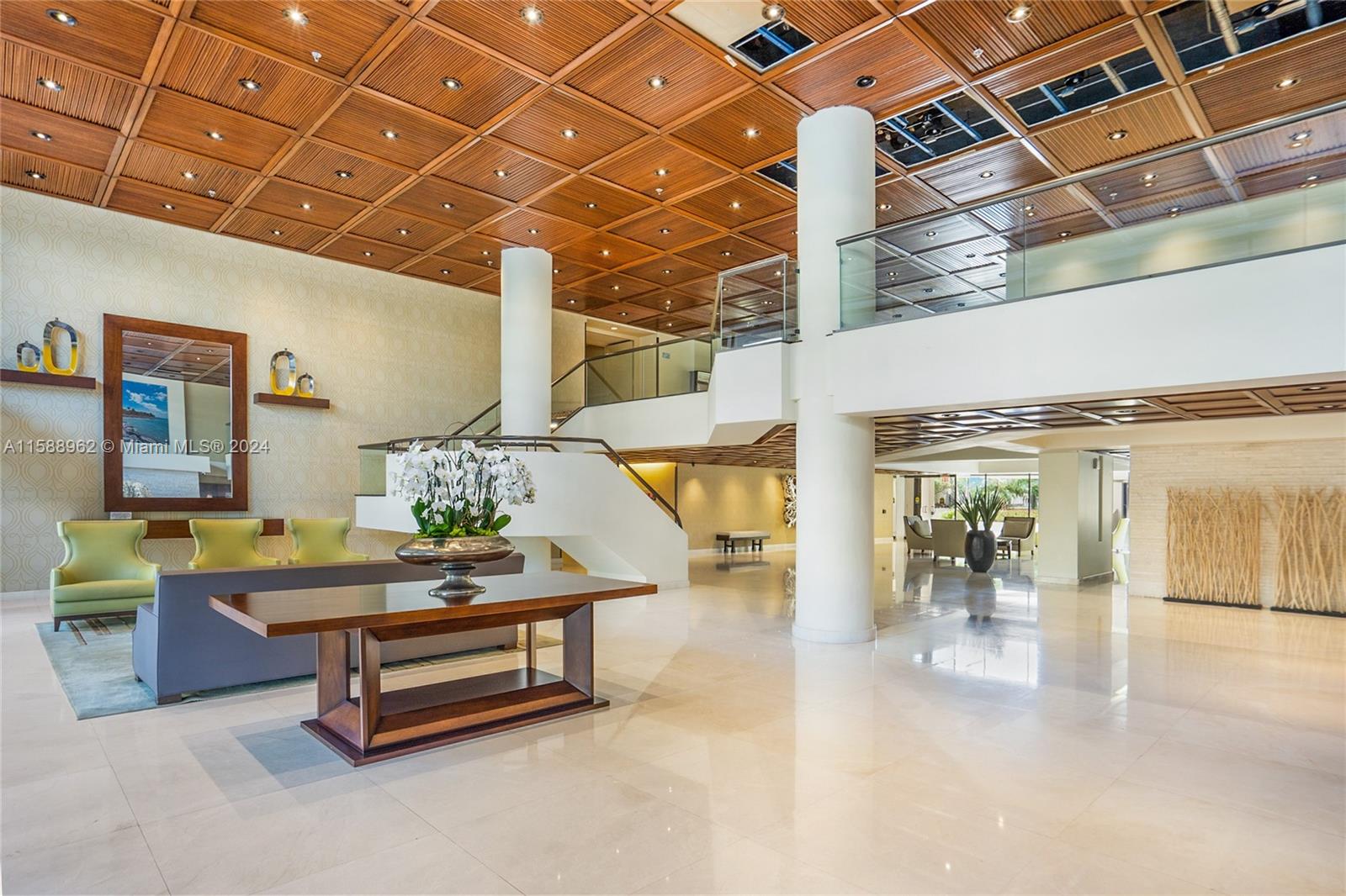 Immaculate 2/2 unit with ocean and pool views! Interior features, Bosch appliances, wood cabinets, pull-out drawers, large pantry, granite countertop, open eat-in kitchen, built-in bar, marble floors, renovated bathrooms, huge master bath with storage room attached, plenty of closets throughout, extra-long balcony, 2 covered parking spaces!!