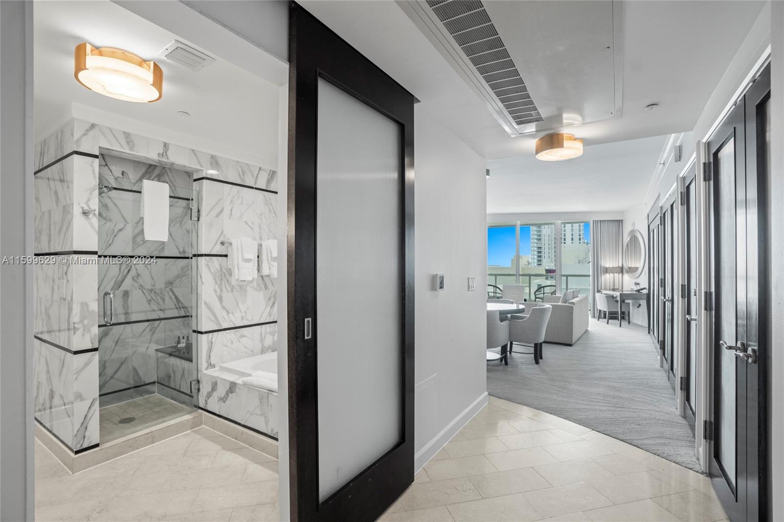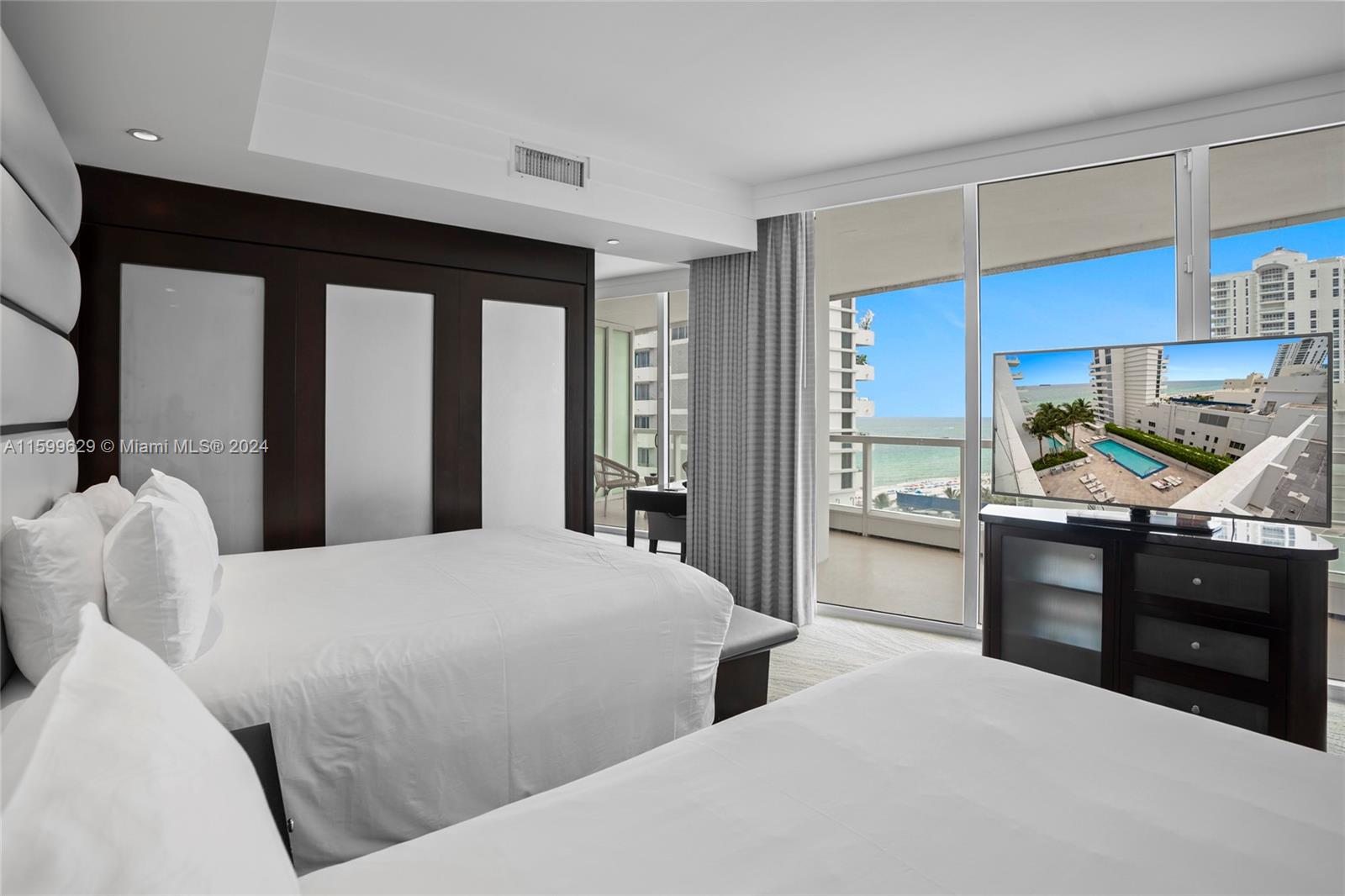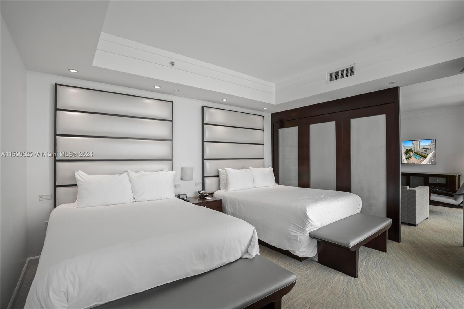 Experience luxury in a refurbished Jr Suite at the Fontainebleau III with beautiful South facing views of ocean and city. Enjoy full service, vacation-style living in this rarely available fully furnished turnkey unit with 2 queen size beds, sleeper sofa, ample closet space, spacious kitchenette area, marble bathroom, large balcony & more. Option to enroll in hotel rental program & receive income while away! The Fontainebleau resort offers award-winning restaurants, LIV night club, Lapis spa & state-of-the-art fitness center, bakery, shops, full-service salon and more. Maintenance fees include all utilities: AC, internet, cable, local calls, electricity, valet + daily free breakfast in owner's lounge.
