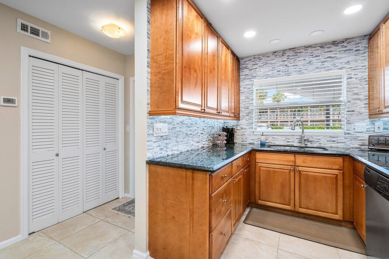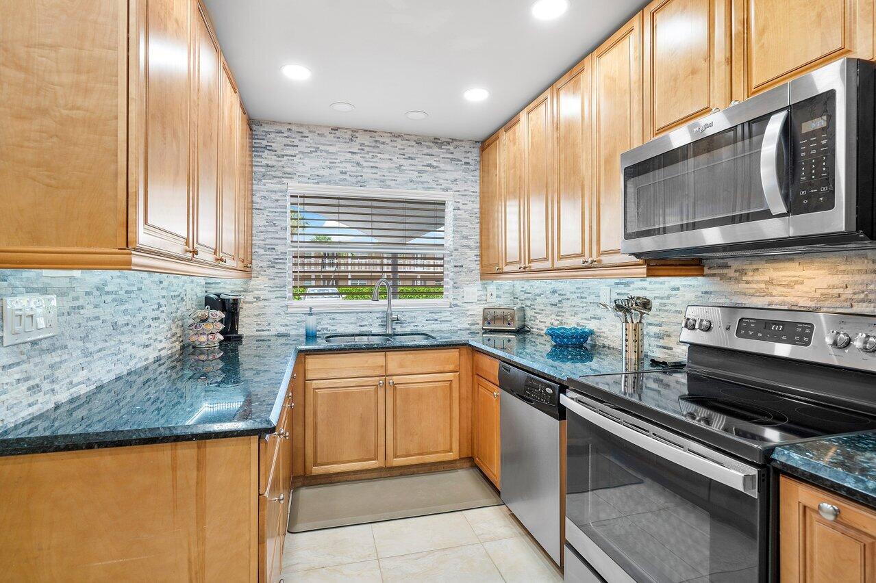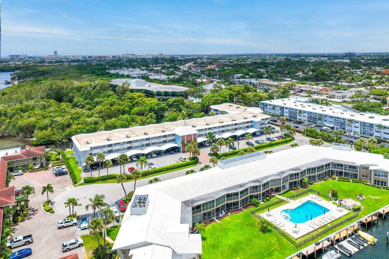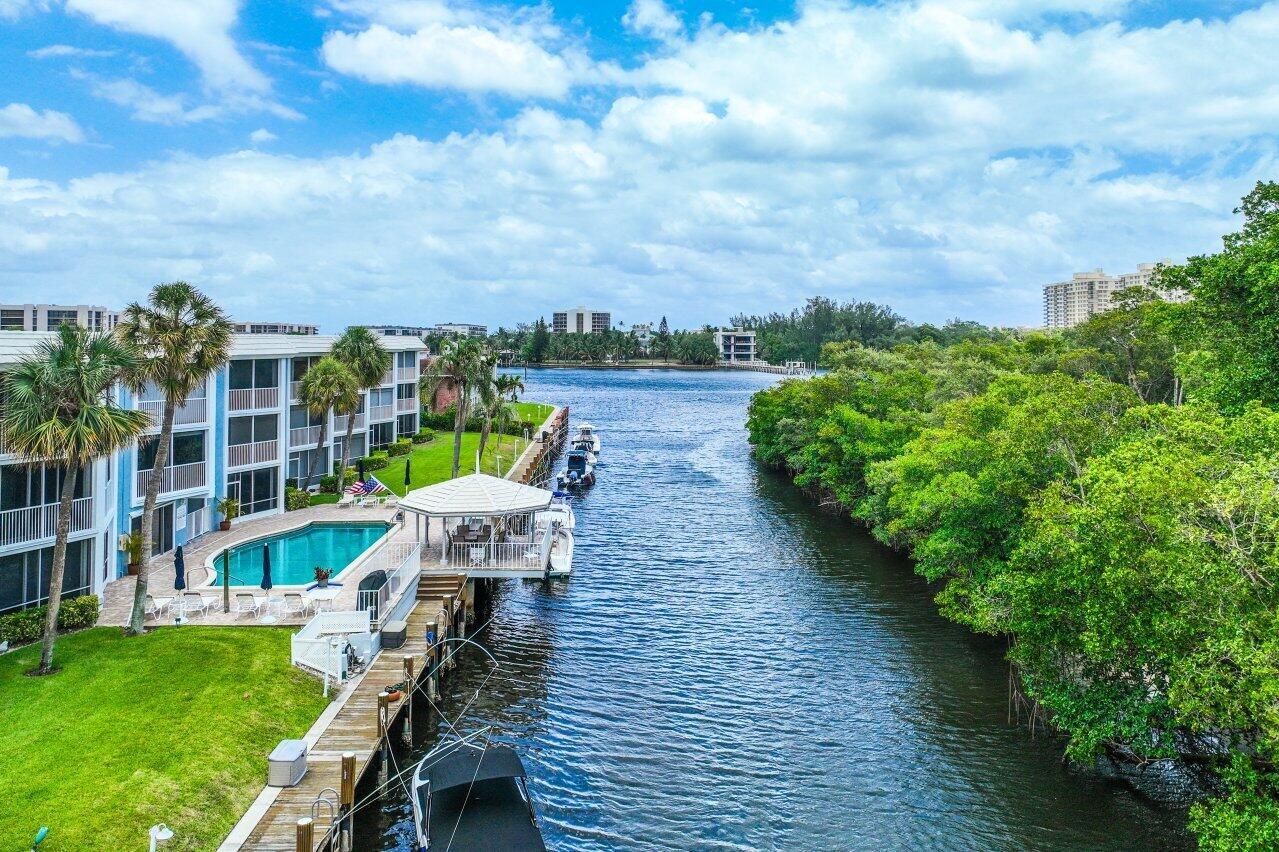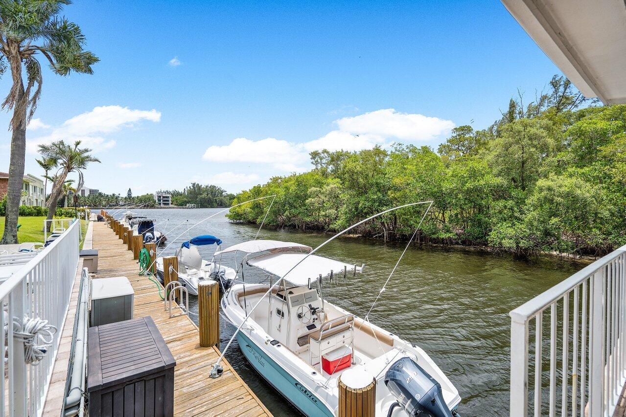 2 Bedroom 2 Bath condo with a rare deeded deep water boat dock (up to 26 ft boat) - 1st floor with covered parking right in front of your condo. Waterfront, Pool, Preserve views. NEW A/C, H2O, Screened Enclosure! Enjoy renovated kitchen with gleaming granite counters, stacked stone backsplash, bar area with wine reserve. The primary bedroom is spacious with access out to enclosed patio and offers ample closet space and dressing area. Complete Impact windows & Sliders, Custom remote control window treatments on patio. 2nd bedroom has built in Murphy bed and separate entrance from screened foyer entry. Hidden yet well located, Lake Boca and Boca Inlet, Mizner Park with its vibrant shopping & restaurants just minutes away as is Delray Beach's Atlantic Ave. Peaceful Waterfront Living